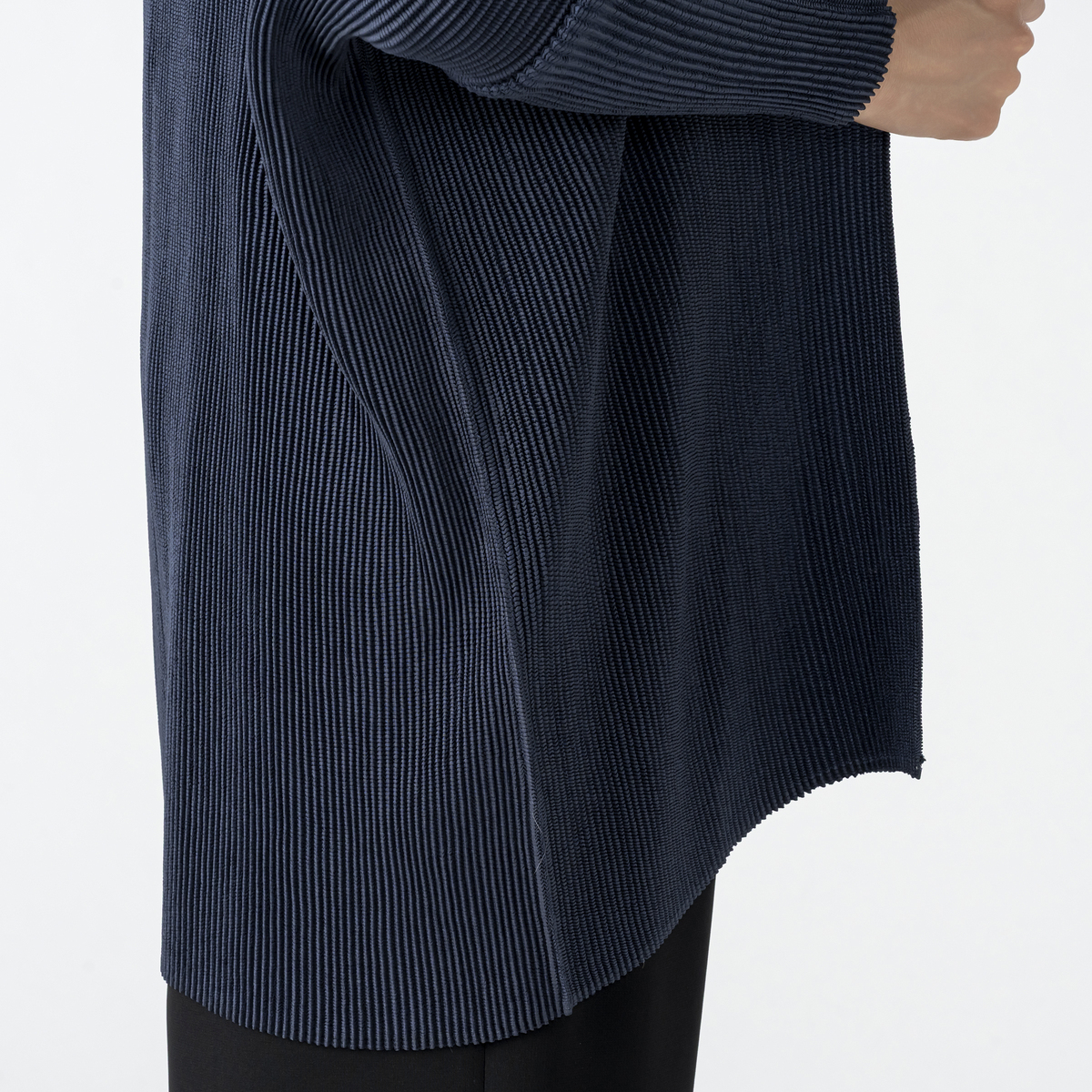プリーツの凹凸が風通しを良くし、暑い時期も快適に着用できます。寒い季節にはインナーとの組合せで温かく、きちんと感のあるシーンやカジュアルまで幅広い場面で着こなしを楽しめます