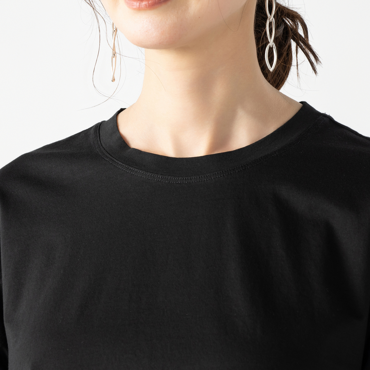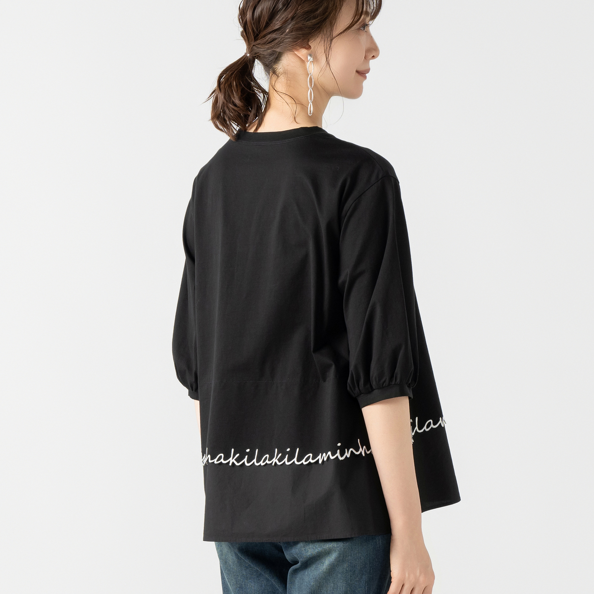 ブランドで定番のカットソー生地を使用。裾の切り替えは、同色の布帛生地を使用しました