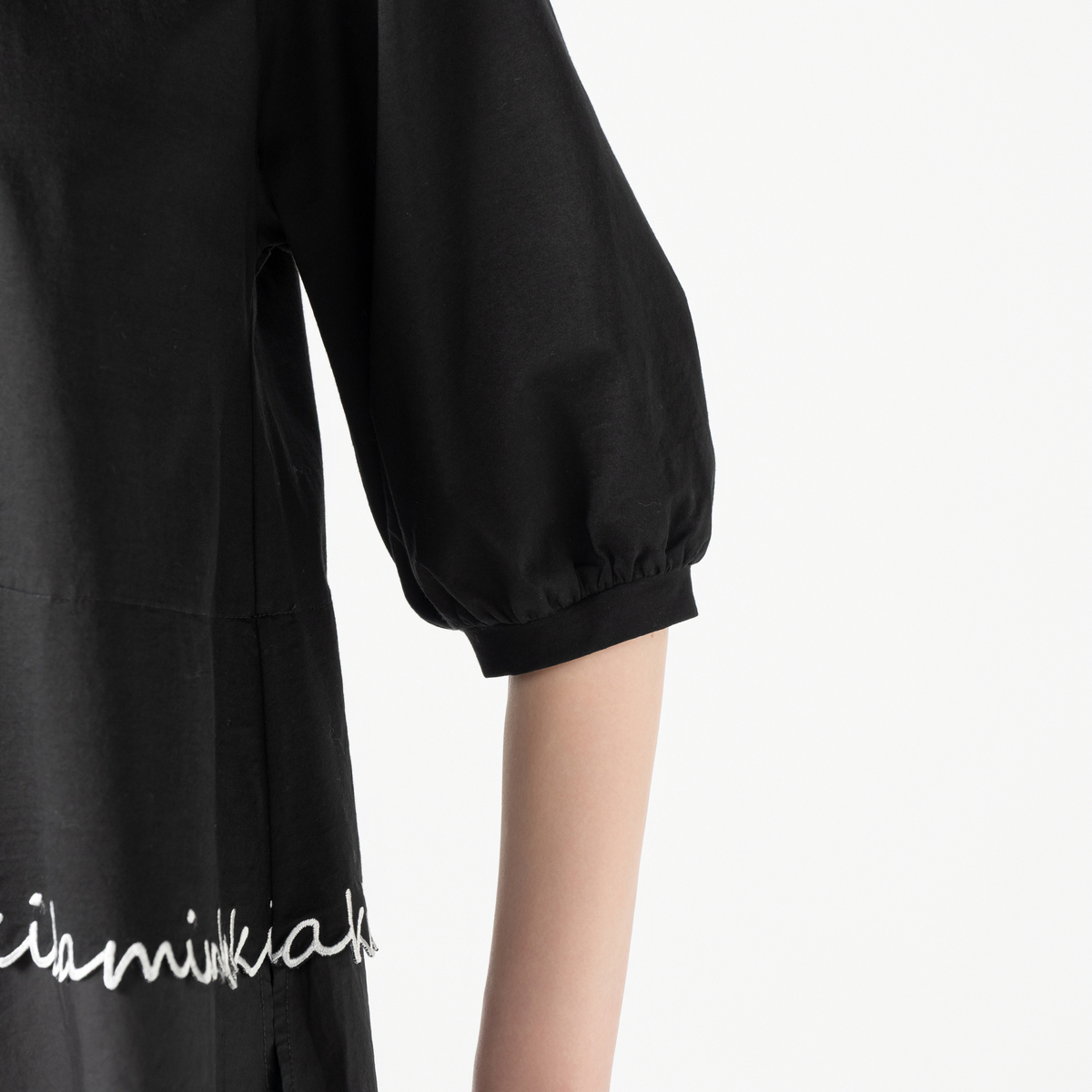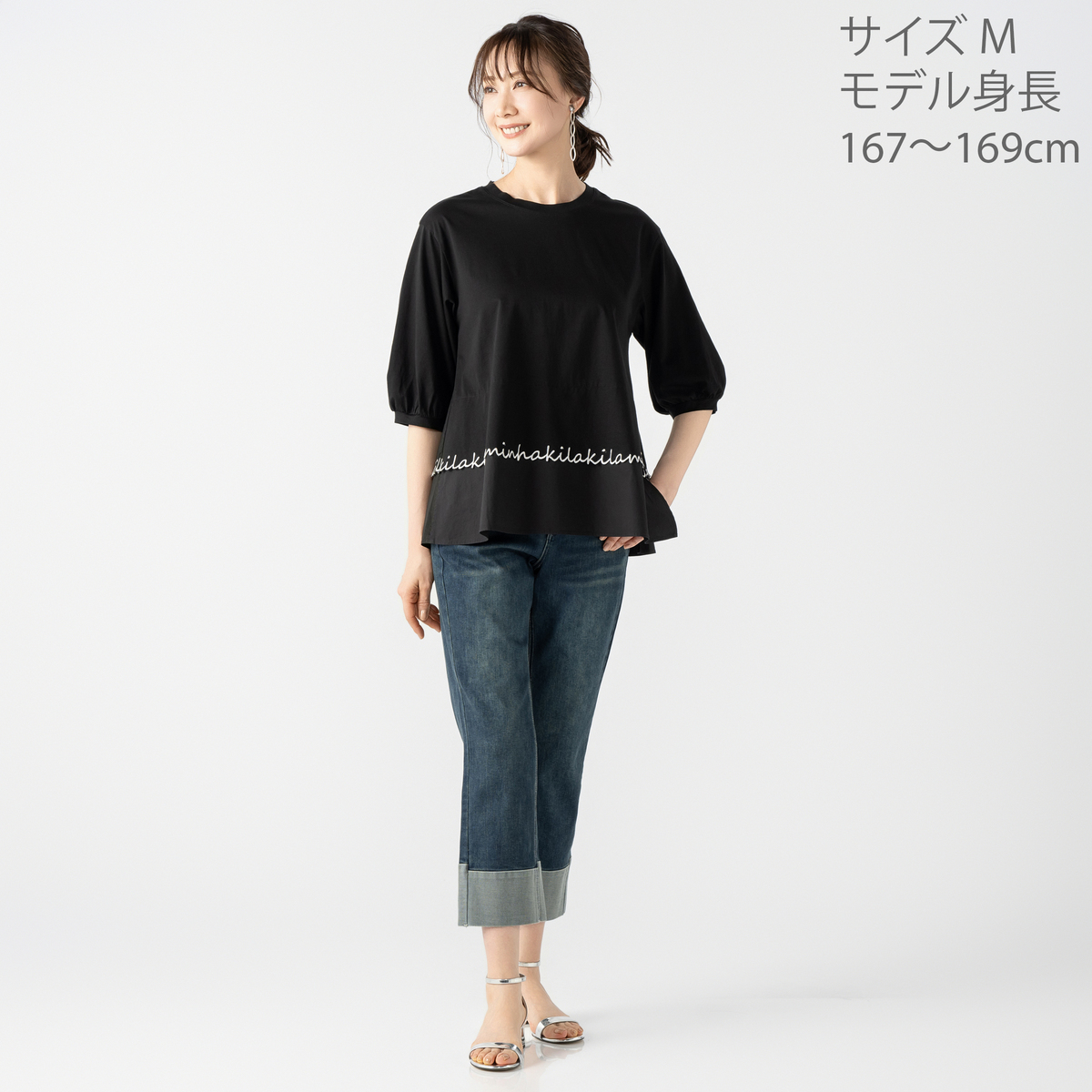 裾にあしらったブランドロゴ刺繍が目を惹くプルオーバー。袖は肘が隠れる長め丈で上品に着こなせます