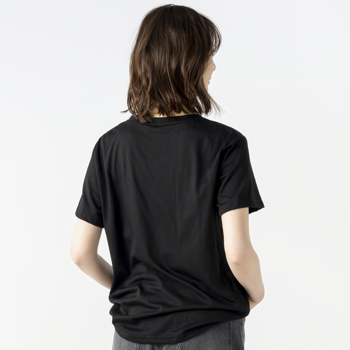 天竺ジャージー素材を使用。薄すぎず適度な肉感で、体のラインを拾いにくいのが特徴です