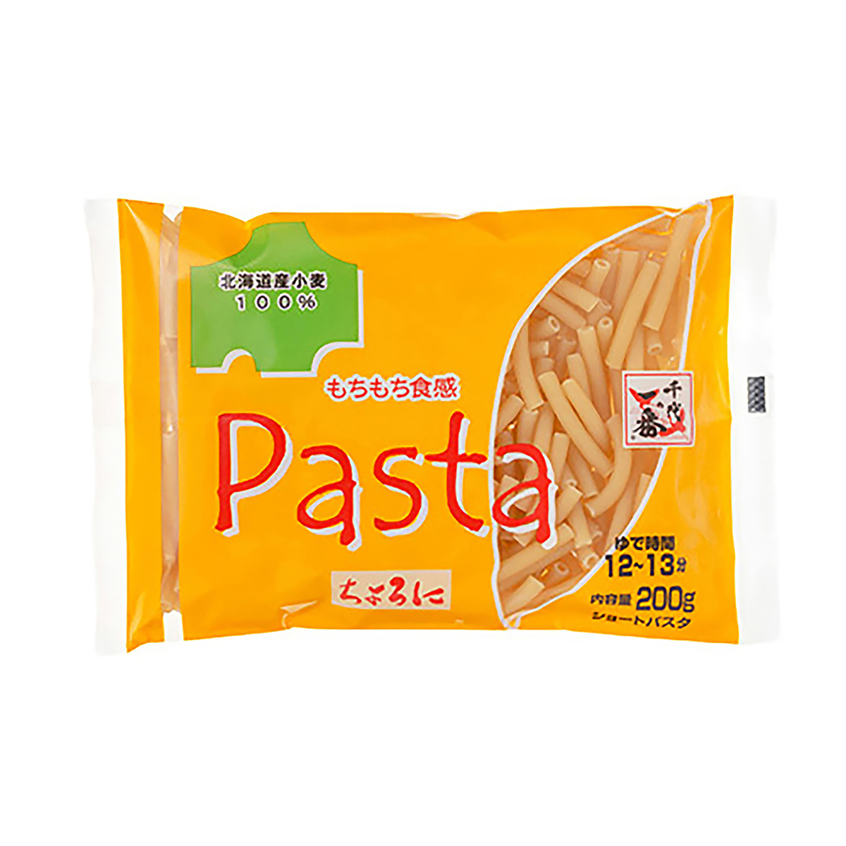 もちもち食感に仕上げたマカロニ。原料の小麦は北海道産100%です