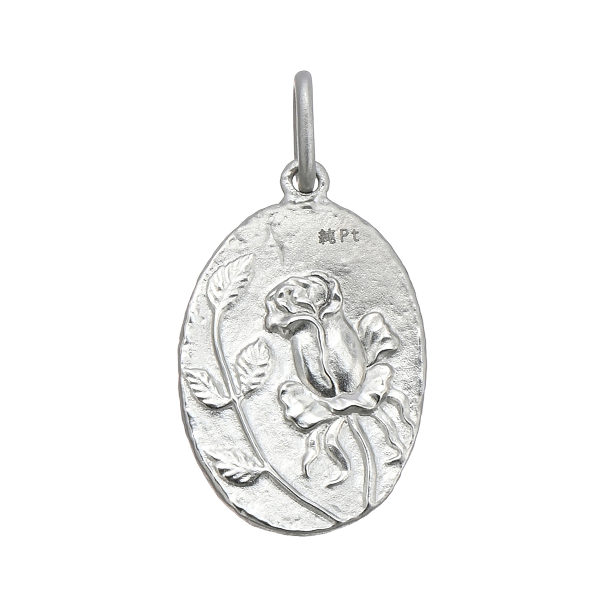 純プラチナでお仕立てした、クラシカルなフラワーデザインのペンダントヘッドです。表にはクレマチスの花、裏面にはバラの花が立体的に表現されています