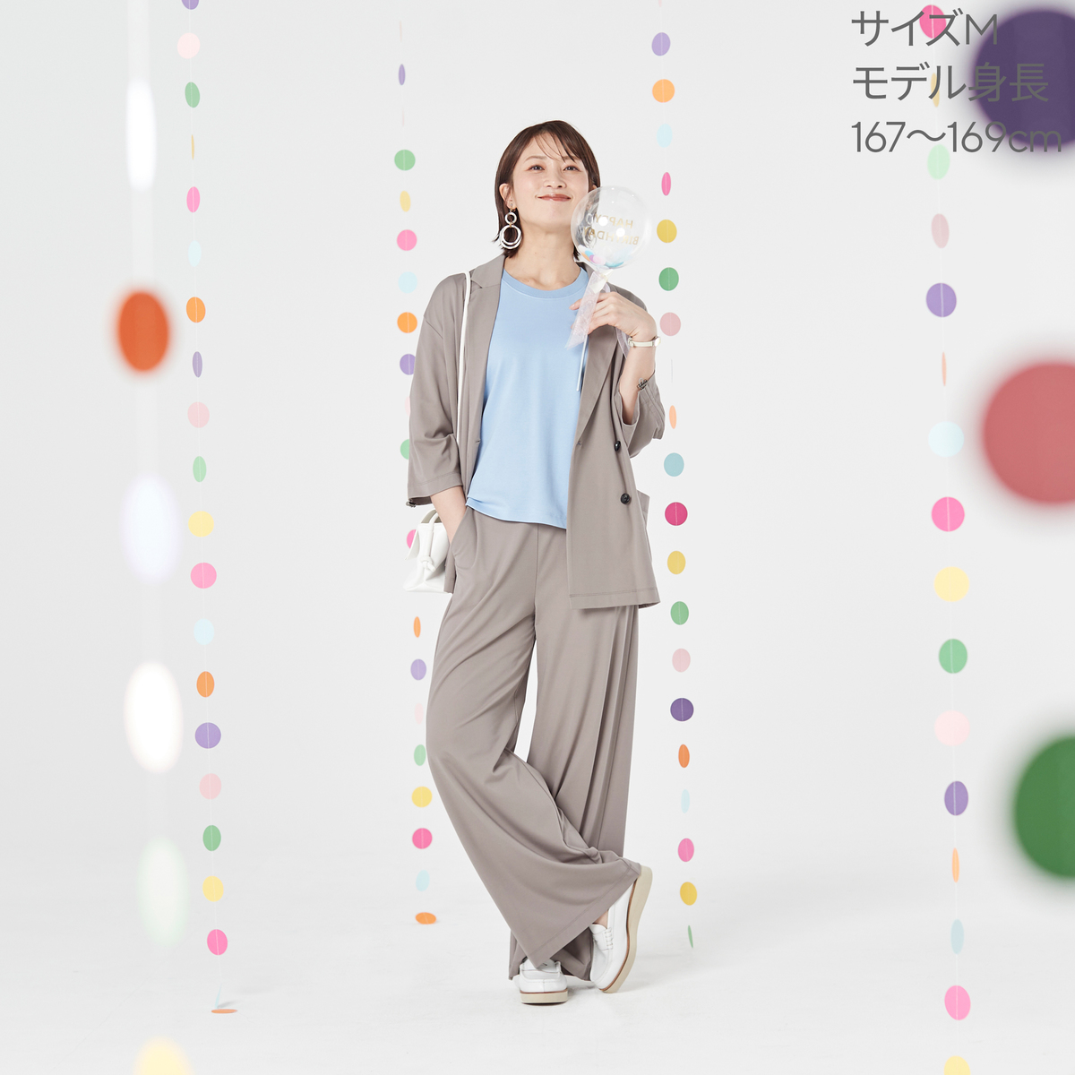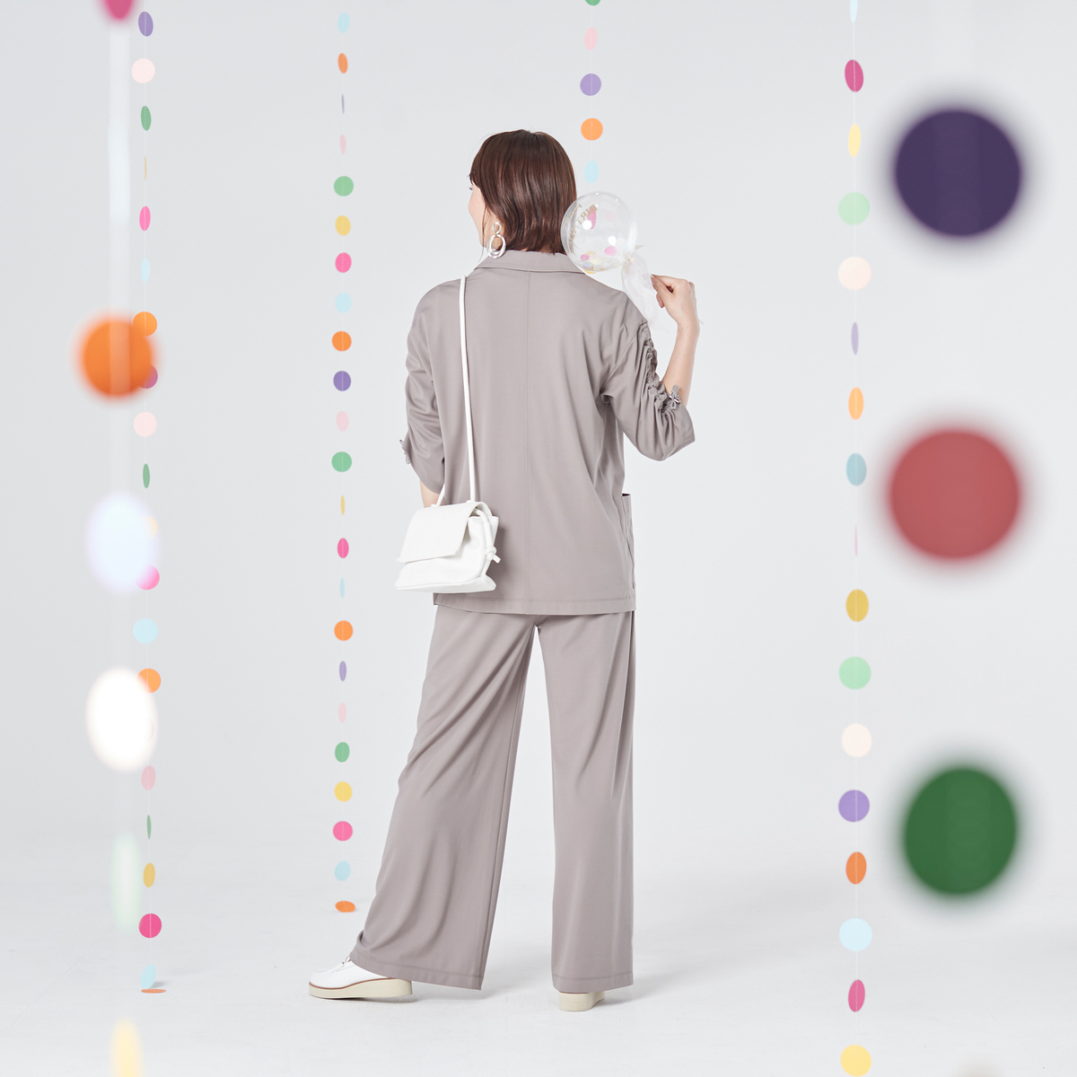袖はシャーリング仕様で、お好みのボリューム感に調整可能。きれいめな印象で、オンオフ問わず活躍します