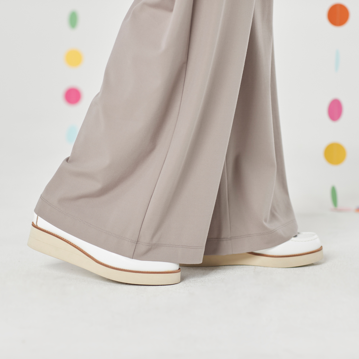 着回しに活躍してくれるシンプルなパンツ。脚のラインを拾いにくいゆとりのあるストレートシルエットです