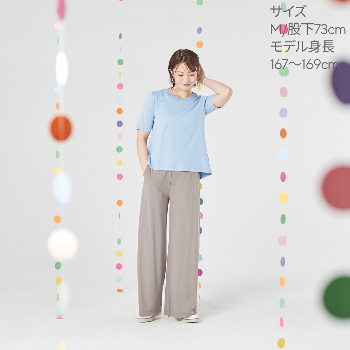 股下は2つの長さをご用意。身長160cm以下の方は68cm、160cm以上の方は73cmがおすすめです