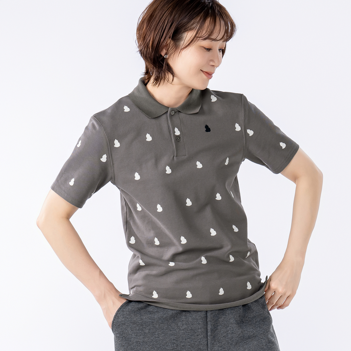 No. 753409 GRC ホット君総柄プリントポロシャツ