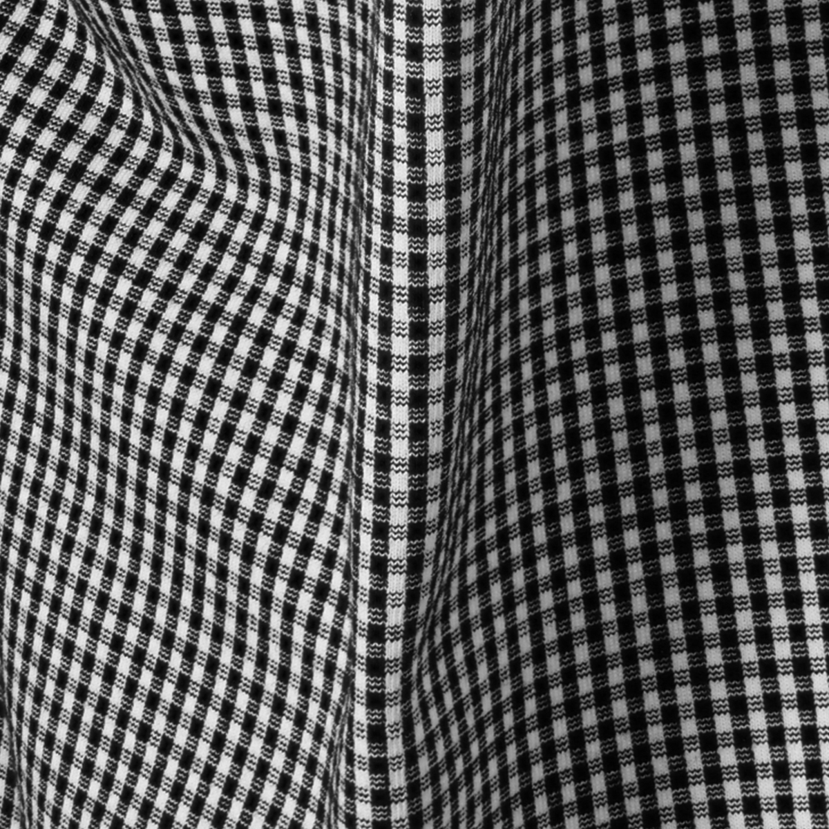 細かいギンガムチェック柄のパンツ。カットソー素材のワイドストレートで、両脇に添えたカットソーテープが縦のラインを引き立て、すっきりとした印象を添えます。ゆったりだぶっと穿けるサイズ感で、ポケット付きの便利さも備えています