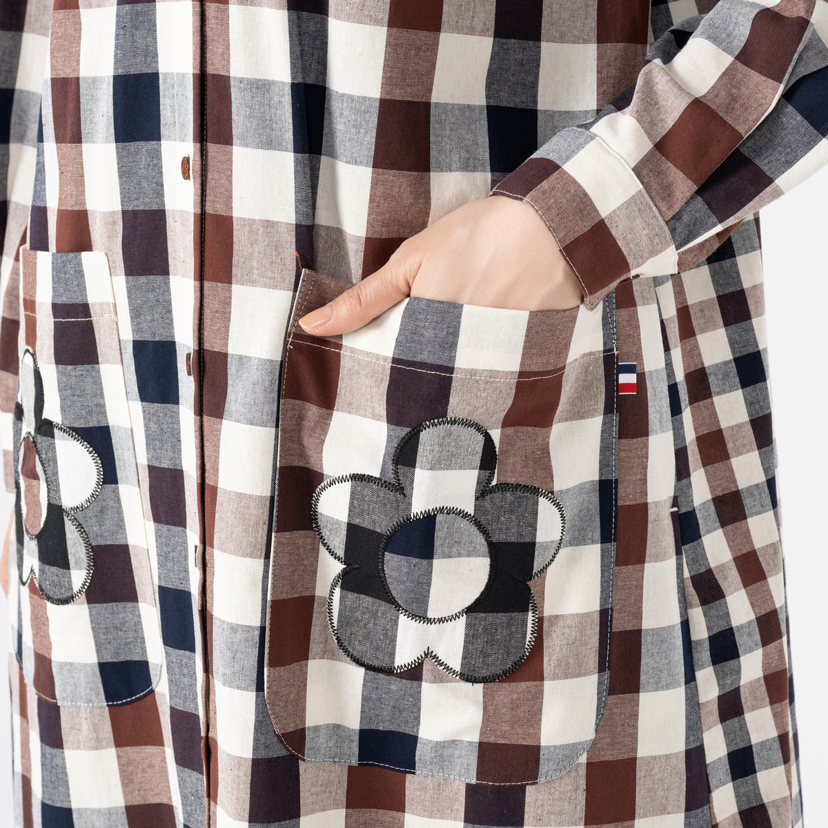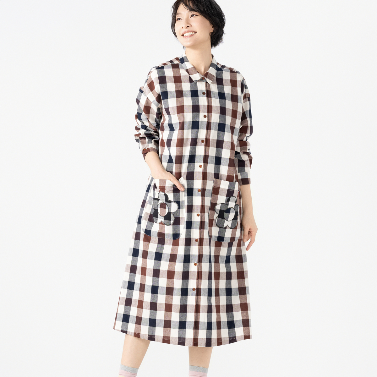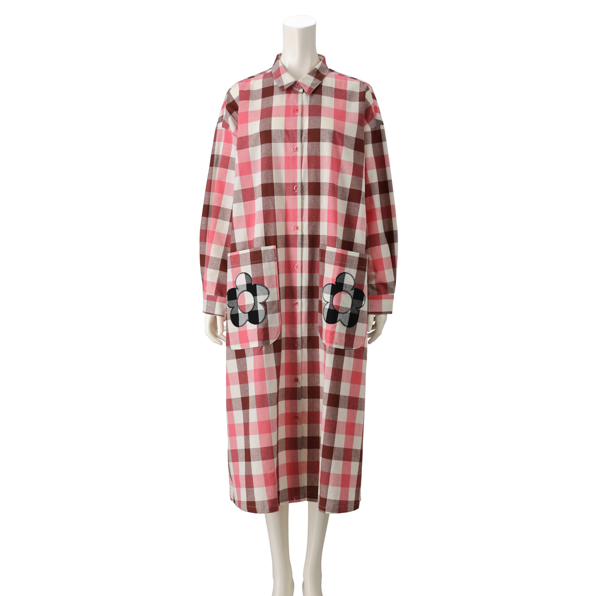 大小のギンガムチェック素材をバランス良く切り替えたパッチワークワンピース。着るだけで気分が明るくなり、まわりと差をつけるスタイルを楽しめます