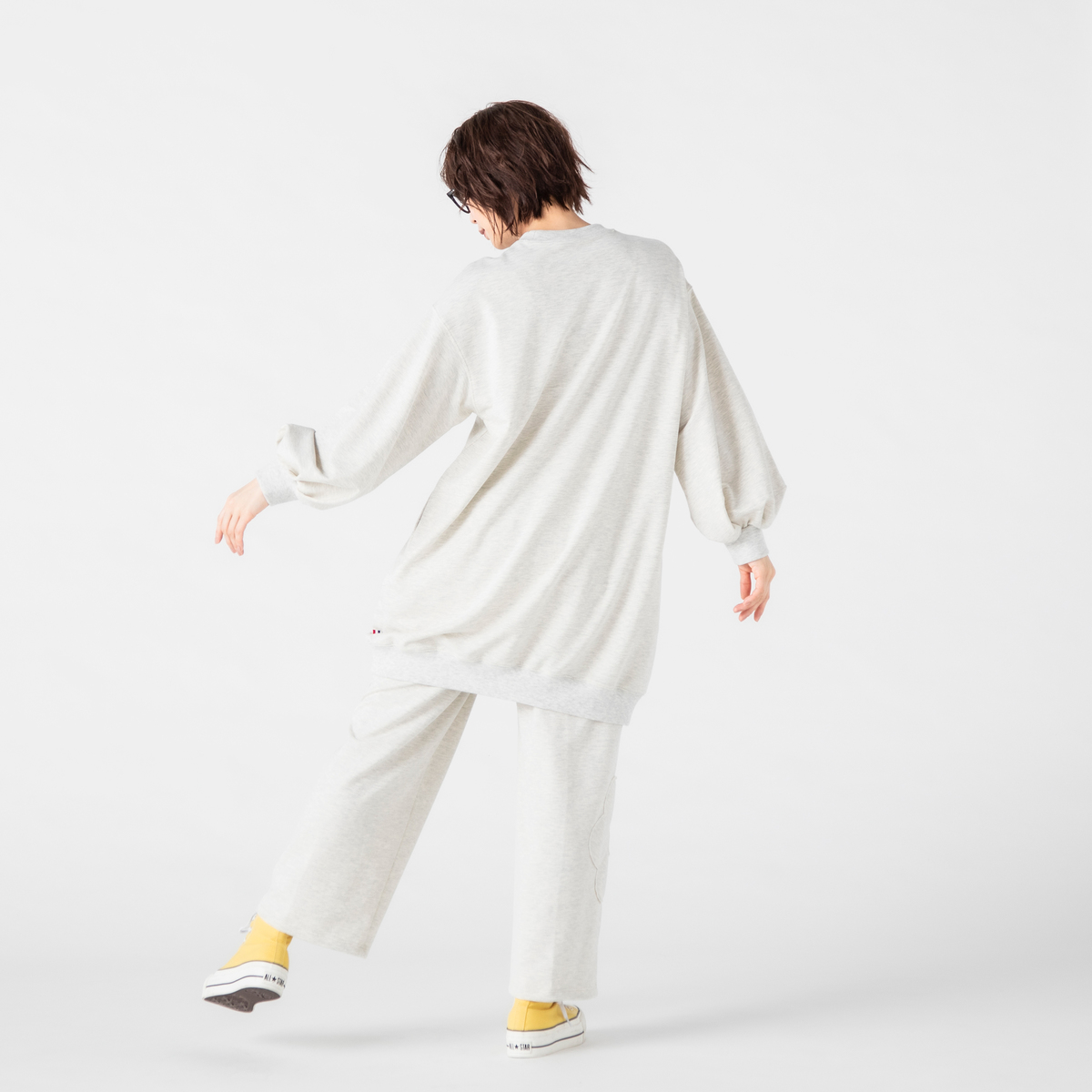 程よい厚みでストレッチ性のある裏毛素材を使用したチュニック丈のトレーナー。ボリュームのあるバルーンスリーブで可愛く着こなせます