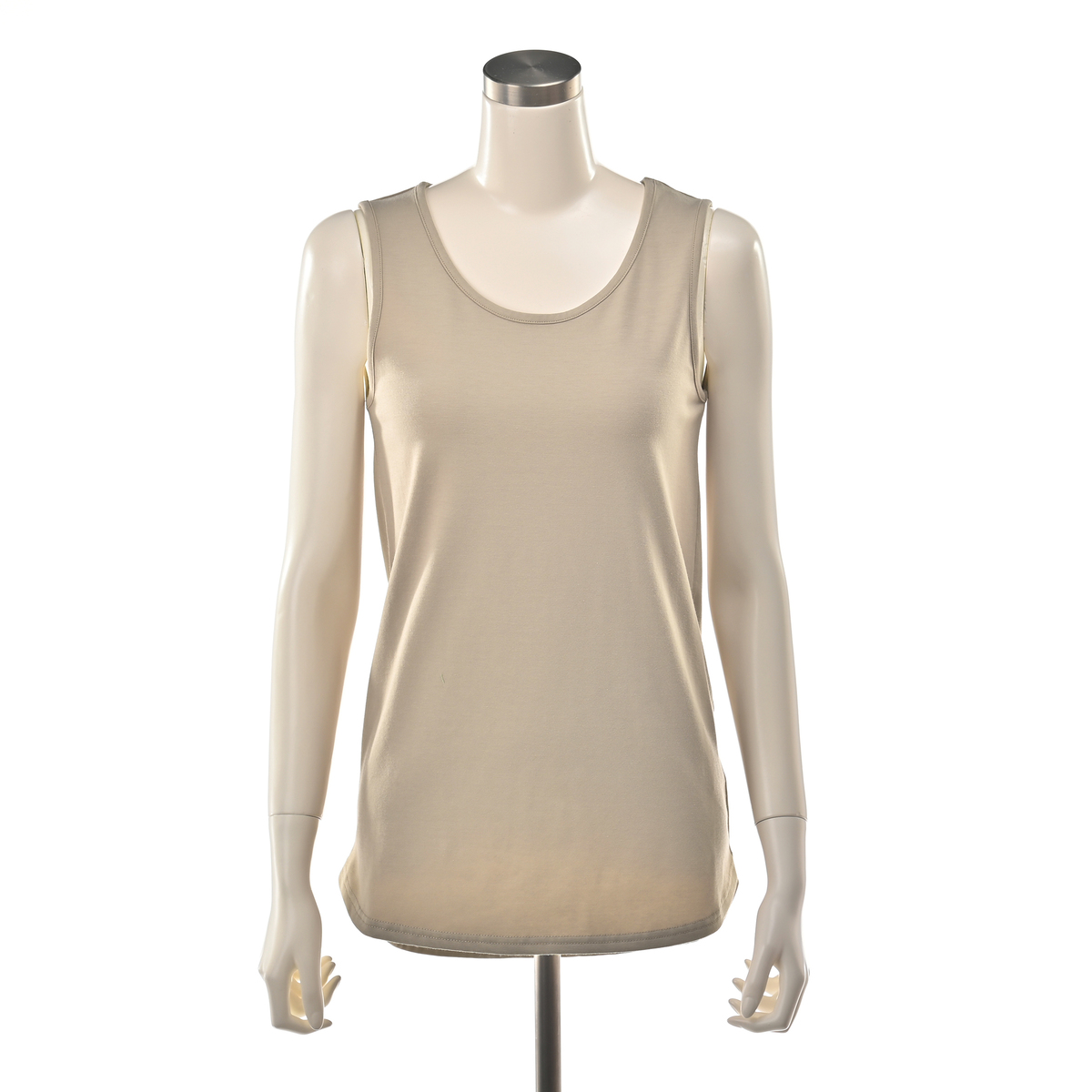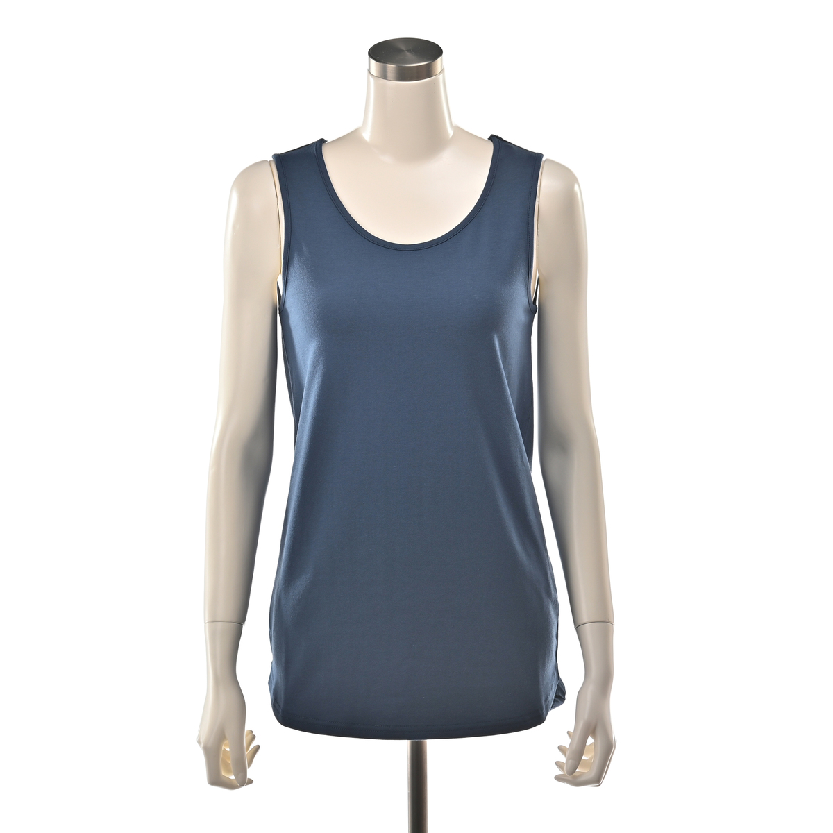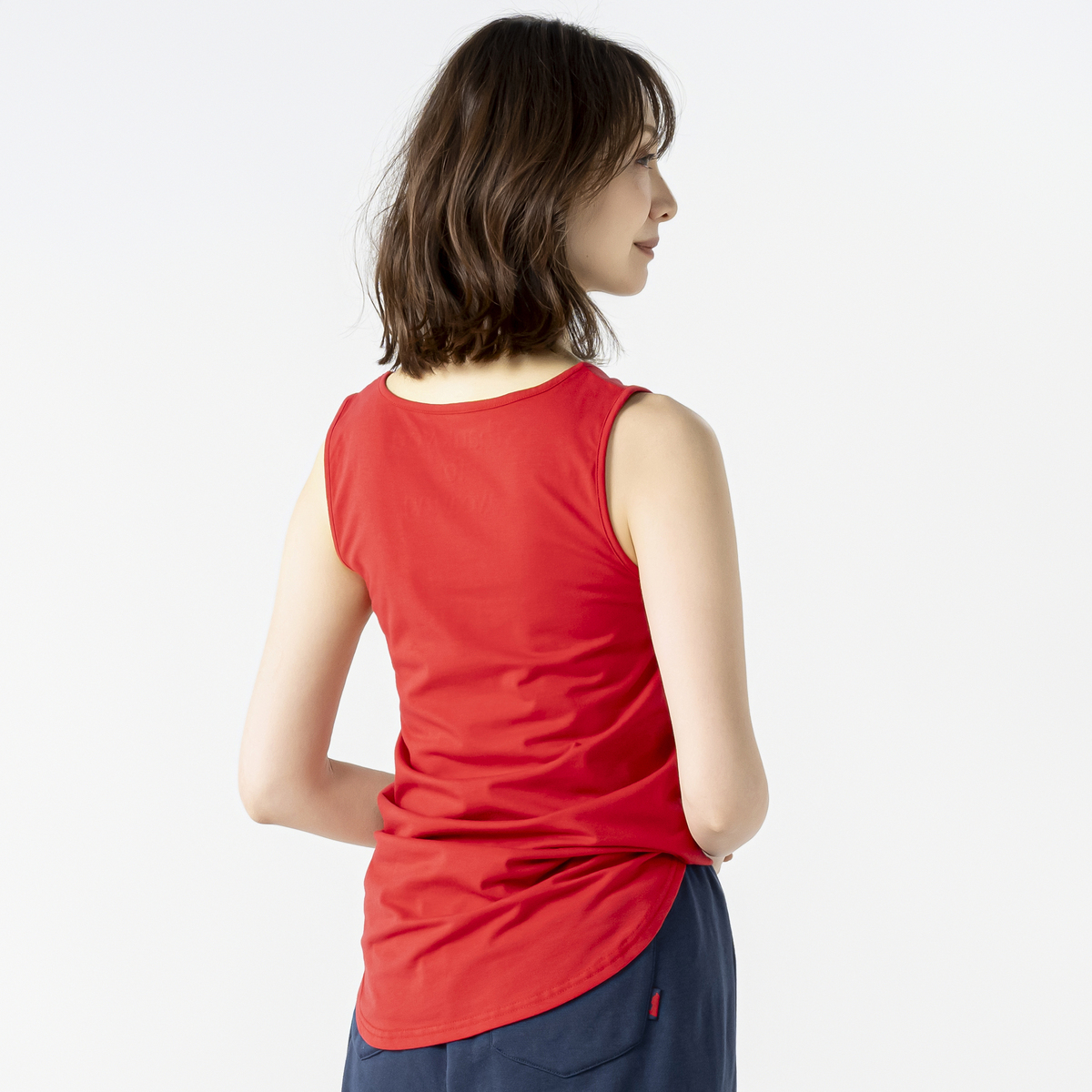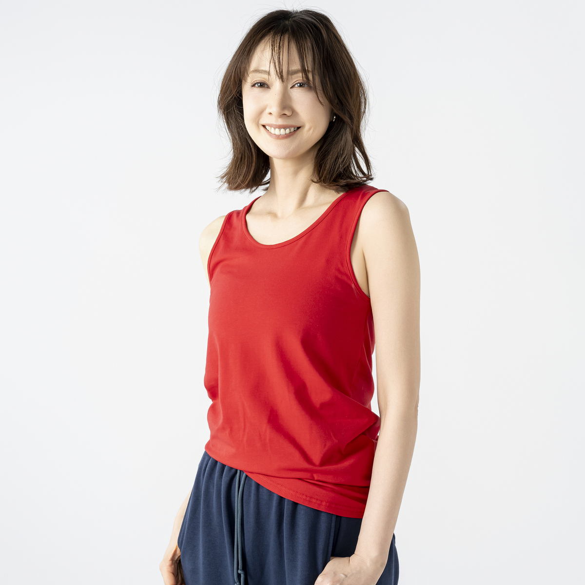 なめらかな肌触りと伸縮性もよいベア天竺素材を使用したタンクトップ。体のラインを美しく見せるフィット感を持たせました。胸元の開き具合が程よく、デコルテをきれいに演出。ラウンドヘムが重ね着にも活躍し、通年で着回せる一枚です