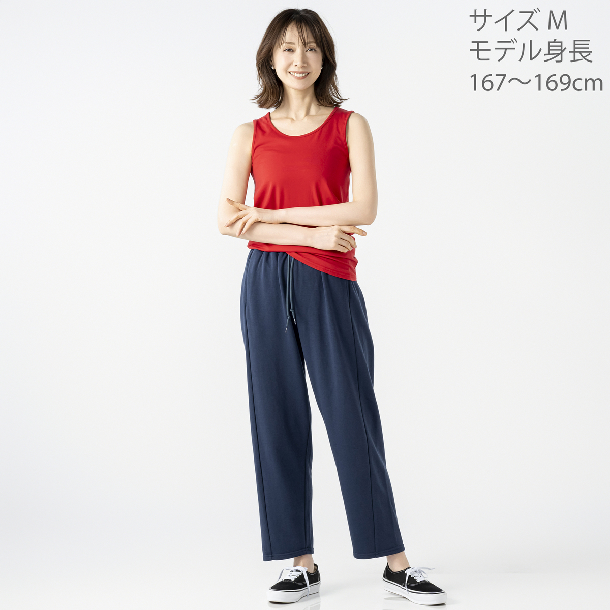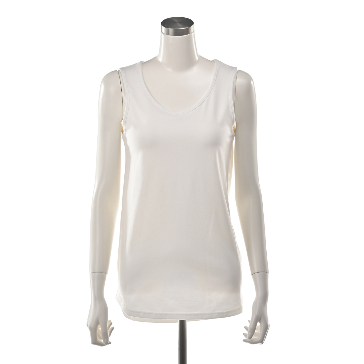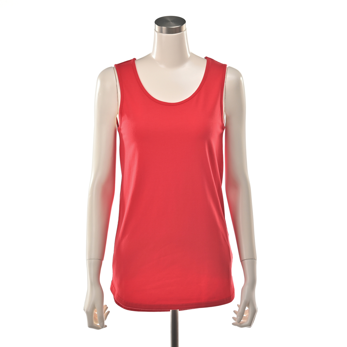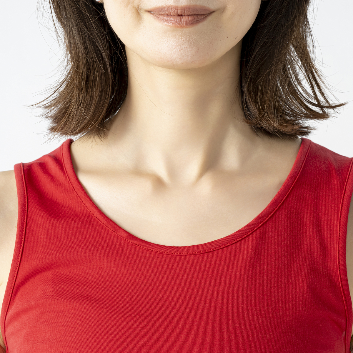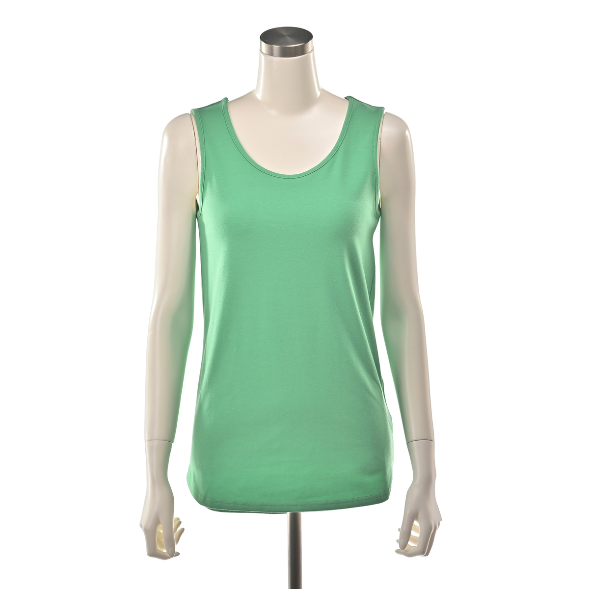 なめらかな肌触りと伸縮性もよいベア天竺素材を使用したタンクトップ。体のラインを美しく見せるフィット感を持たせました。胸元の開き具合が程よく、デコルテをきれいに演出。ラウンドヘムが重ね着にも活躍し、通年で着回せる一枚です