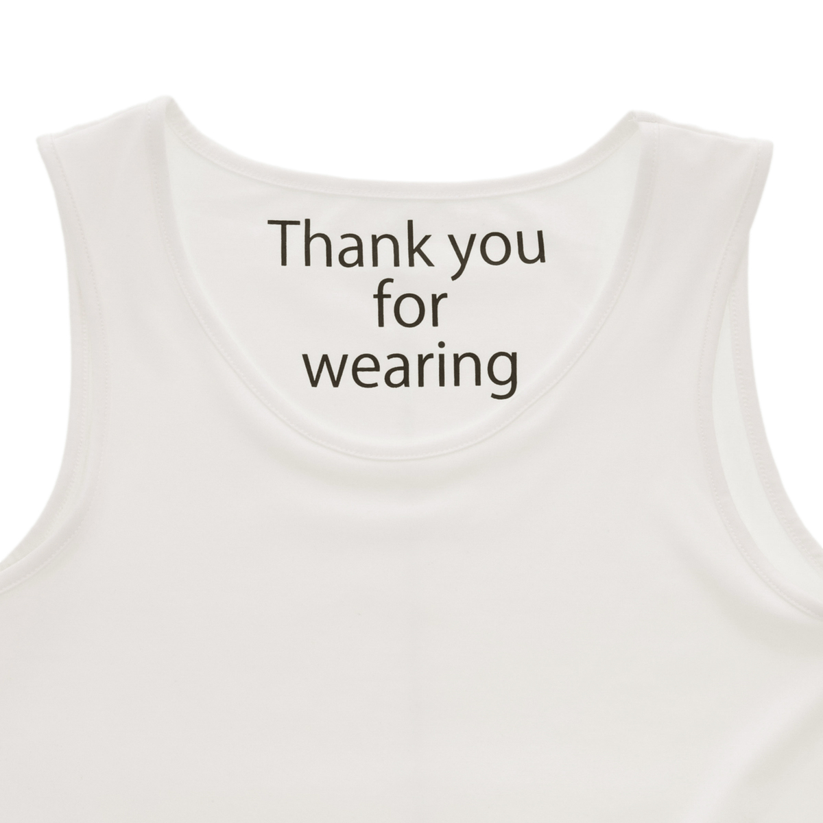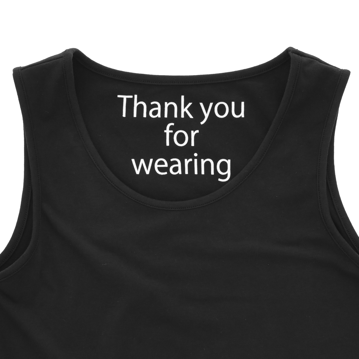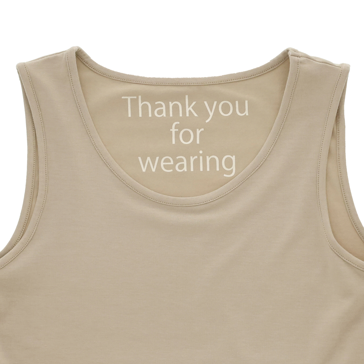 ネック裏の「Thank you for wearing」のメッセージが、毎日の装いにあたたかみを添えるデザイン。ショート丈トップスやカーディガンともマッチし、様々なコーディネートを楽しめます