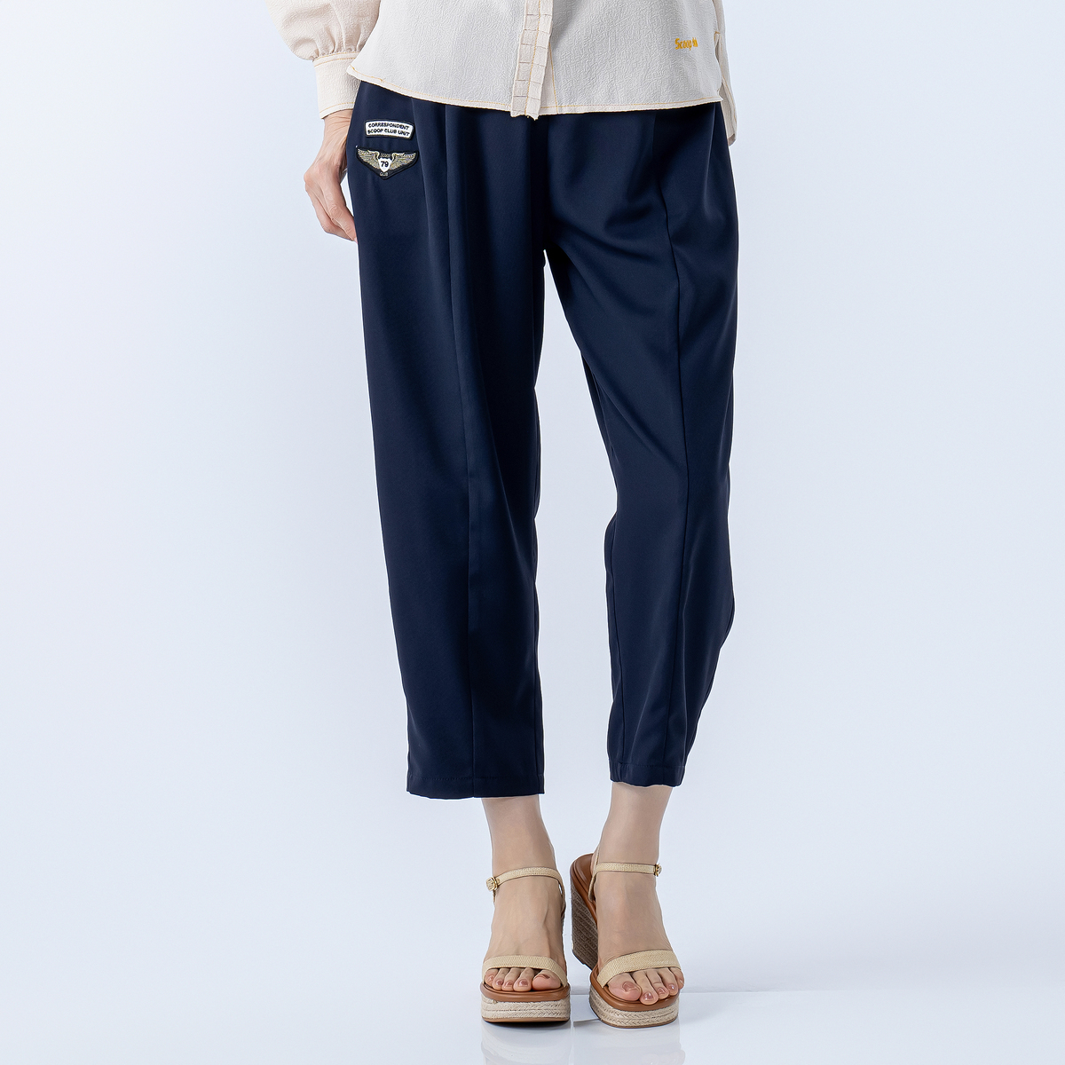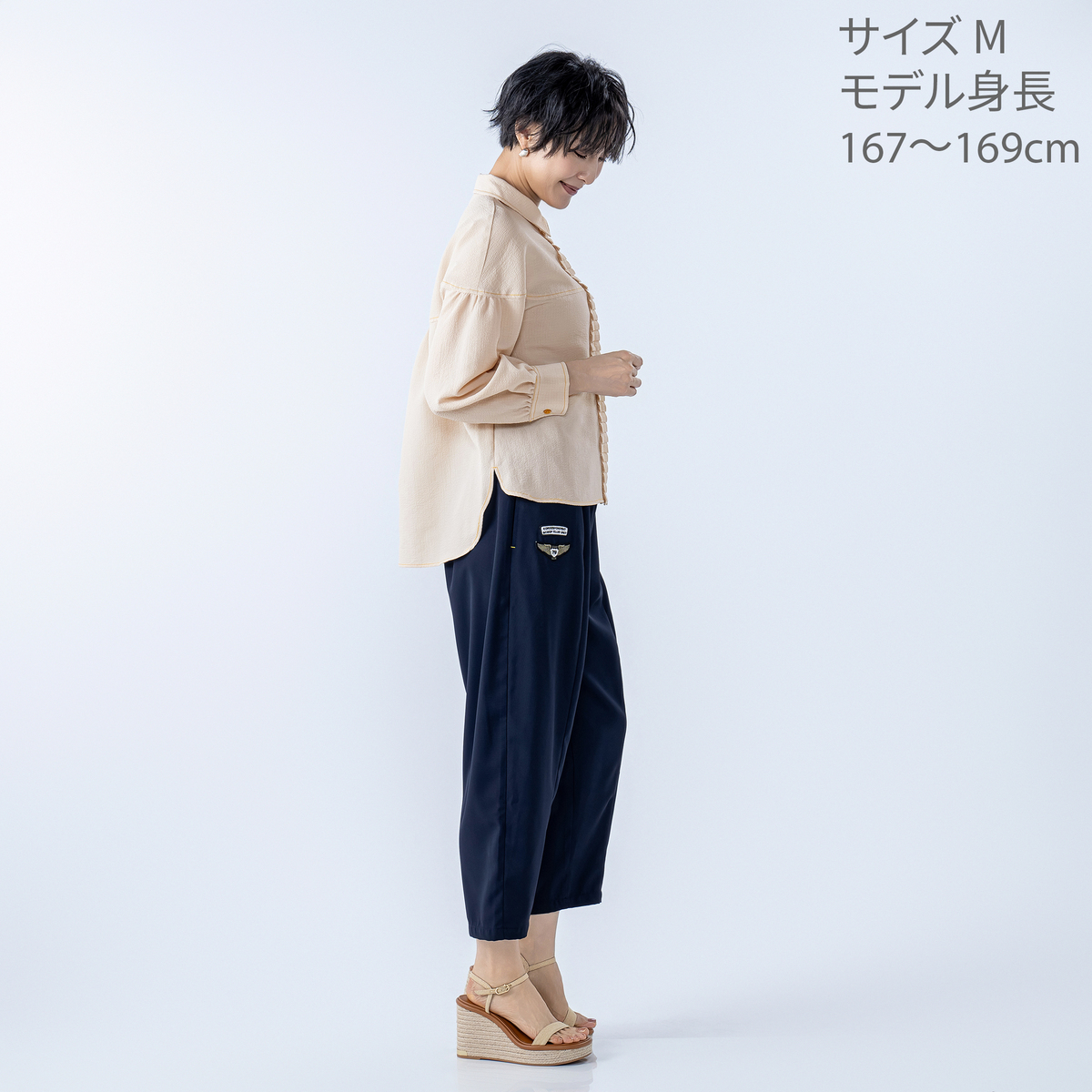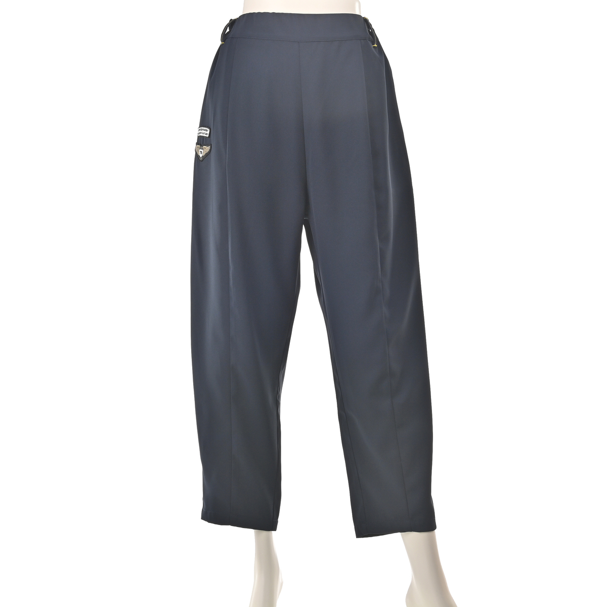 透けにくく落ち感のあるなめらかな素材を使用。エンブレムのアクセントがさりげないアクセントをプラスします