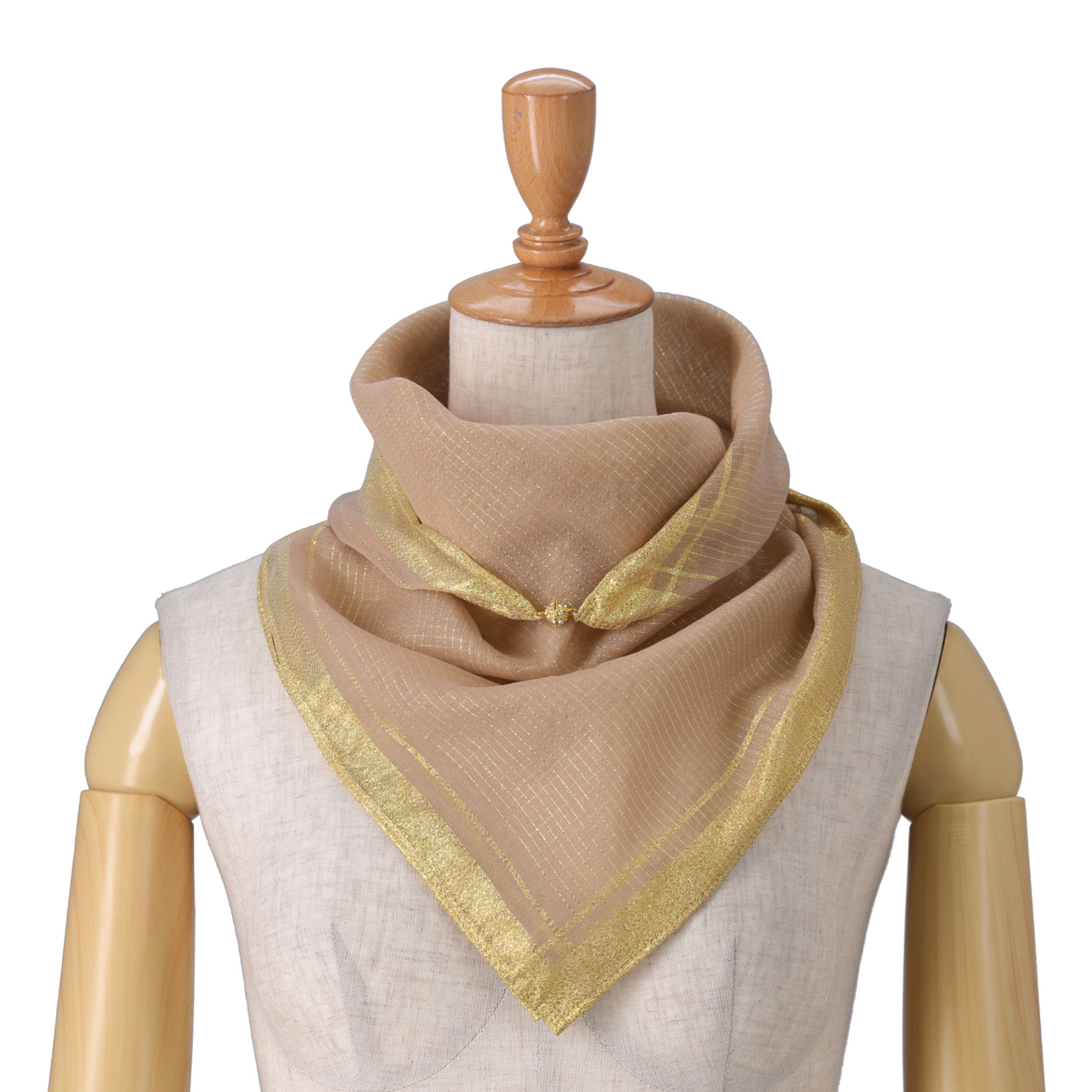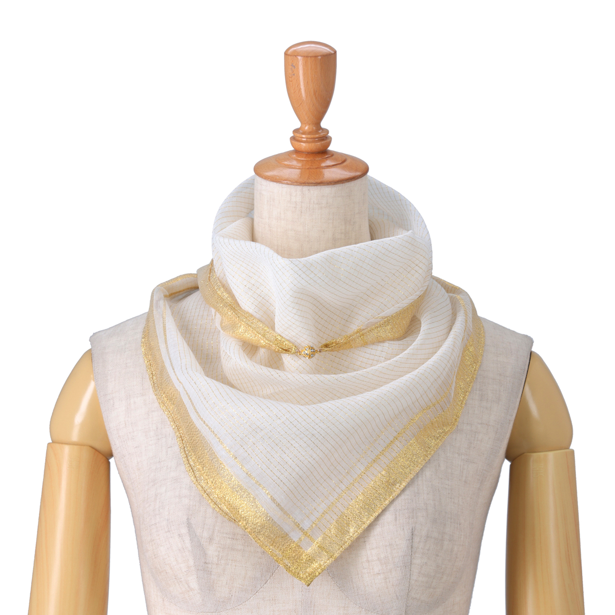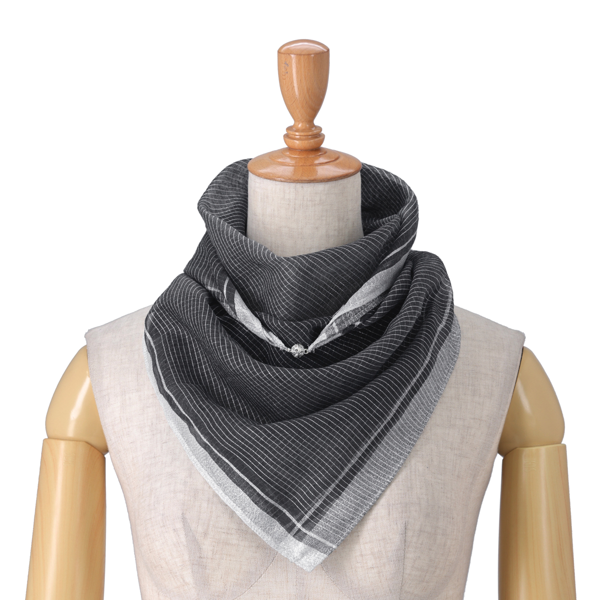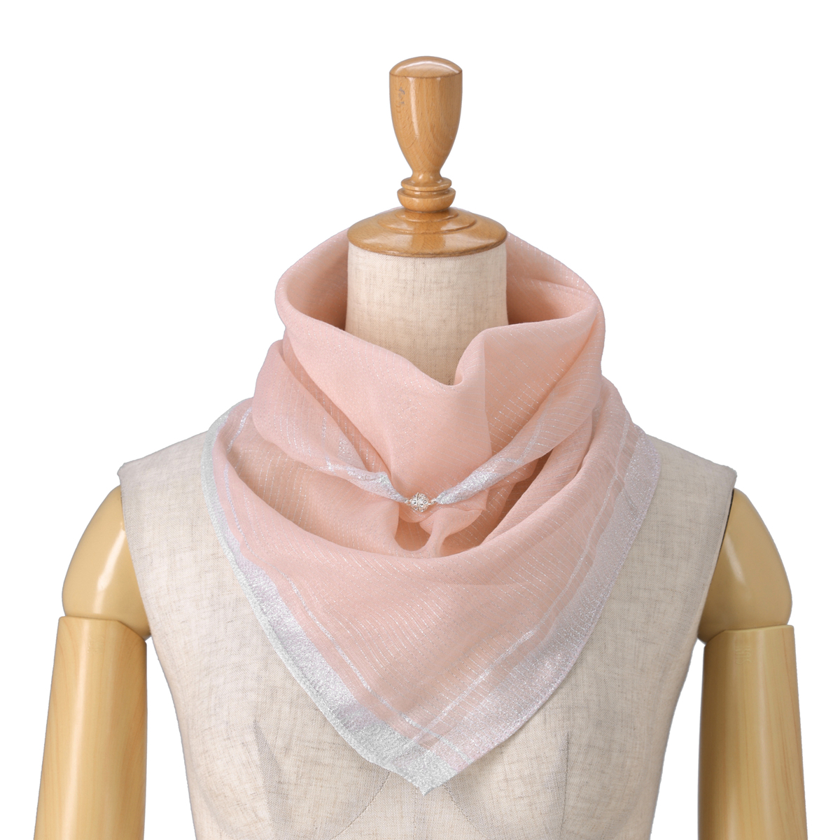 美しいマグネットパーツ付きで、アレンジが簡単なスカーフ。三角折やバイアス折、アフガン巻き、2重巻きなど様々なスタイルを楽しめます