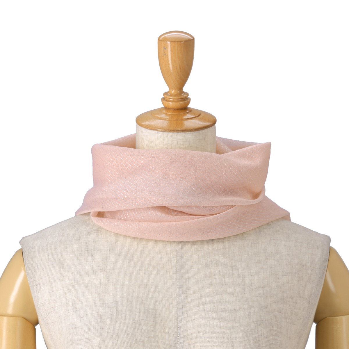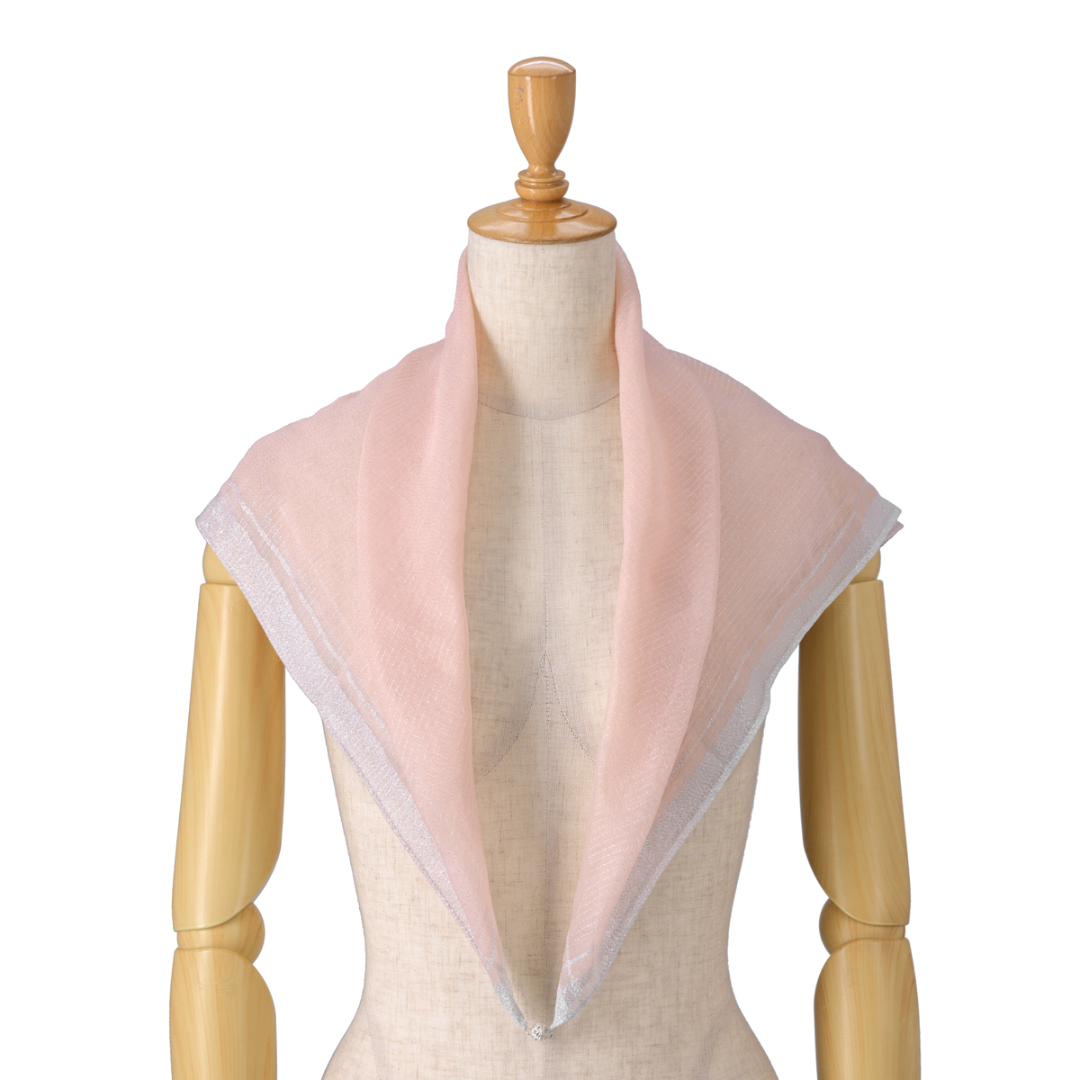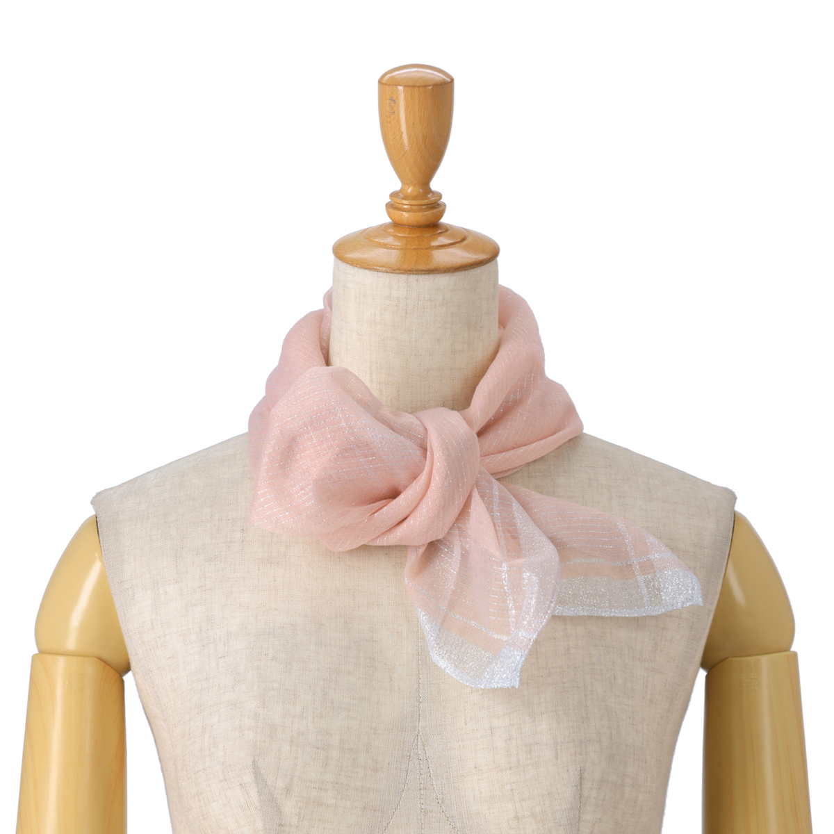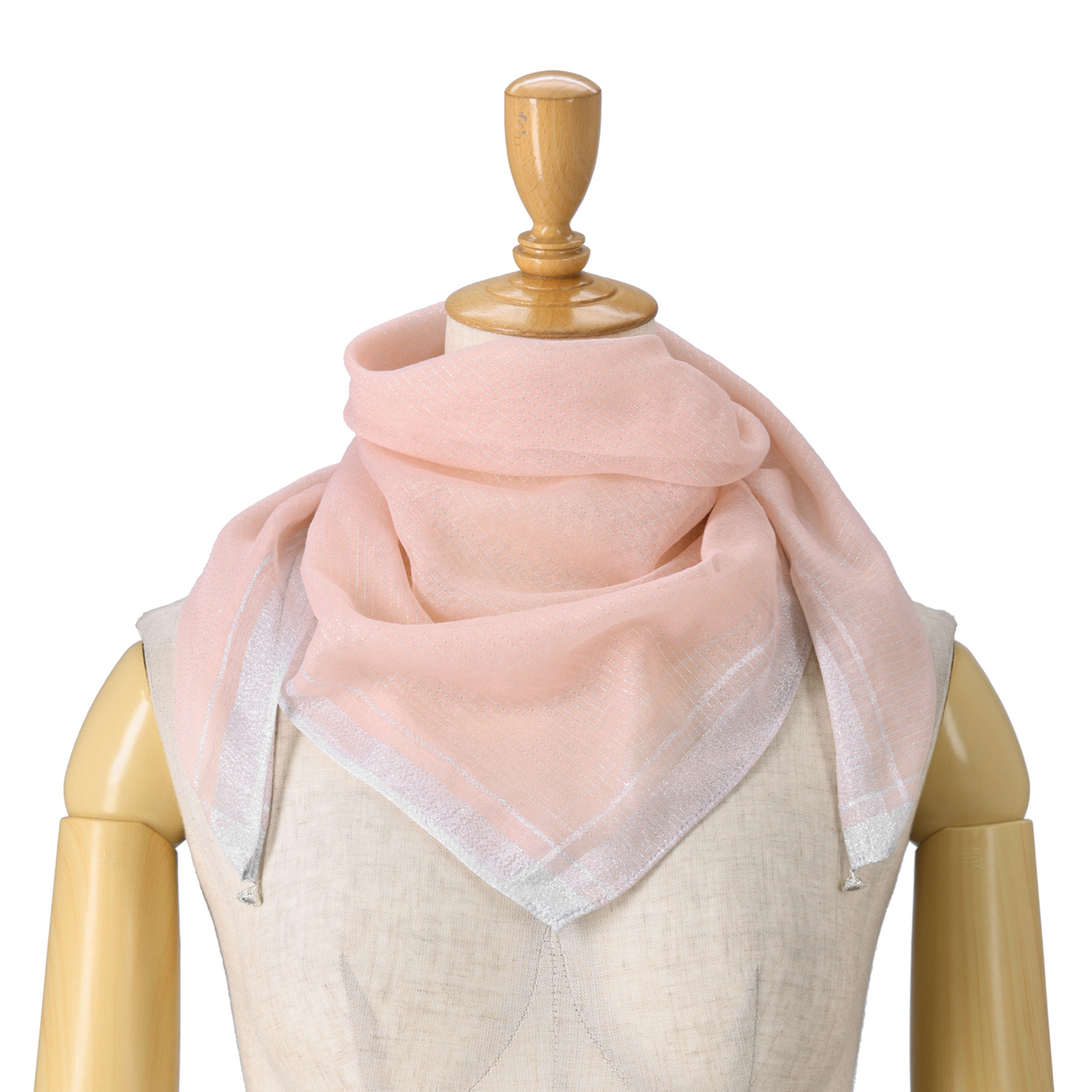 軽やかなオーガンジー素材にゴールドとシルバーのラメ糸を織り込み、ラグジュアリー感も。シア感があり、いつものファッションに華やかさと上品さをプラスします