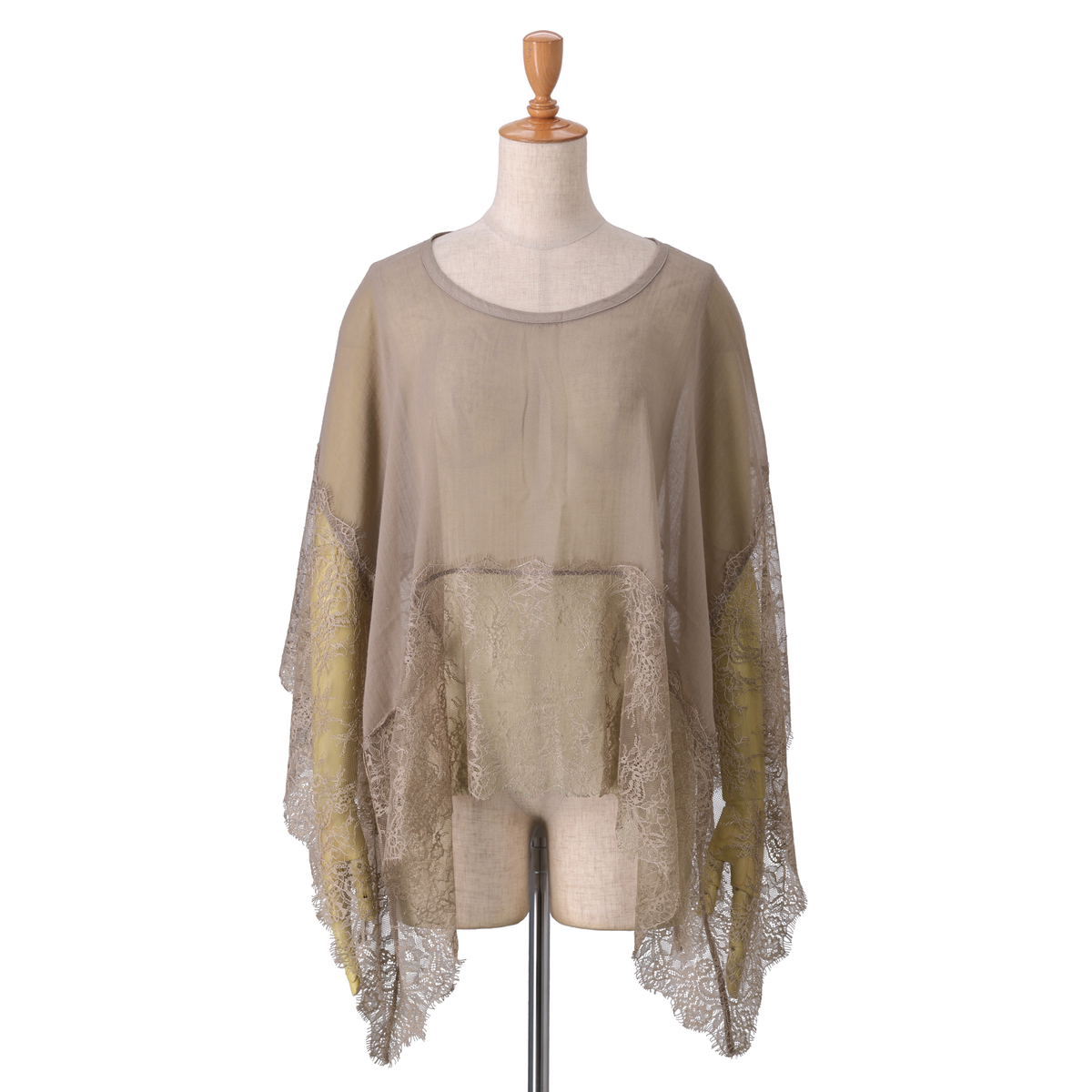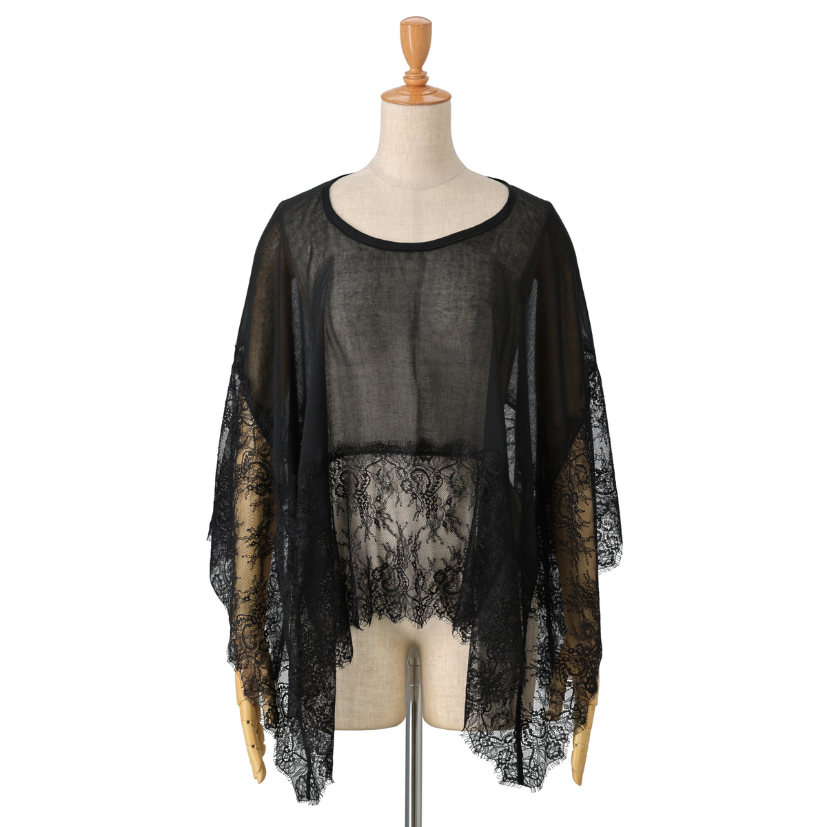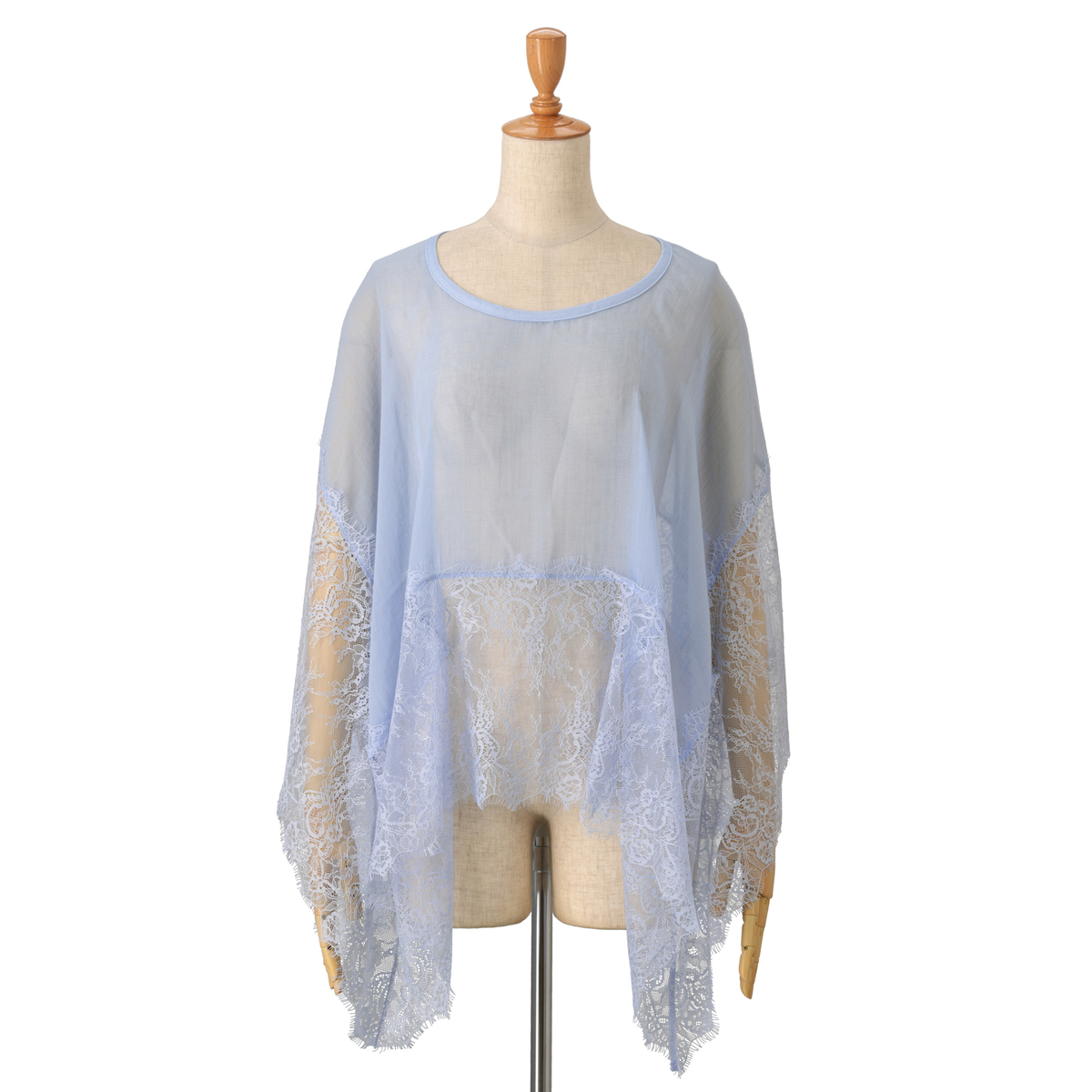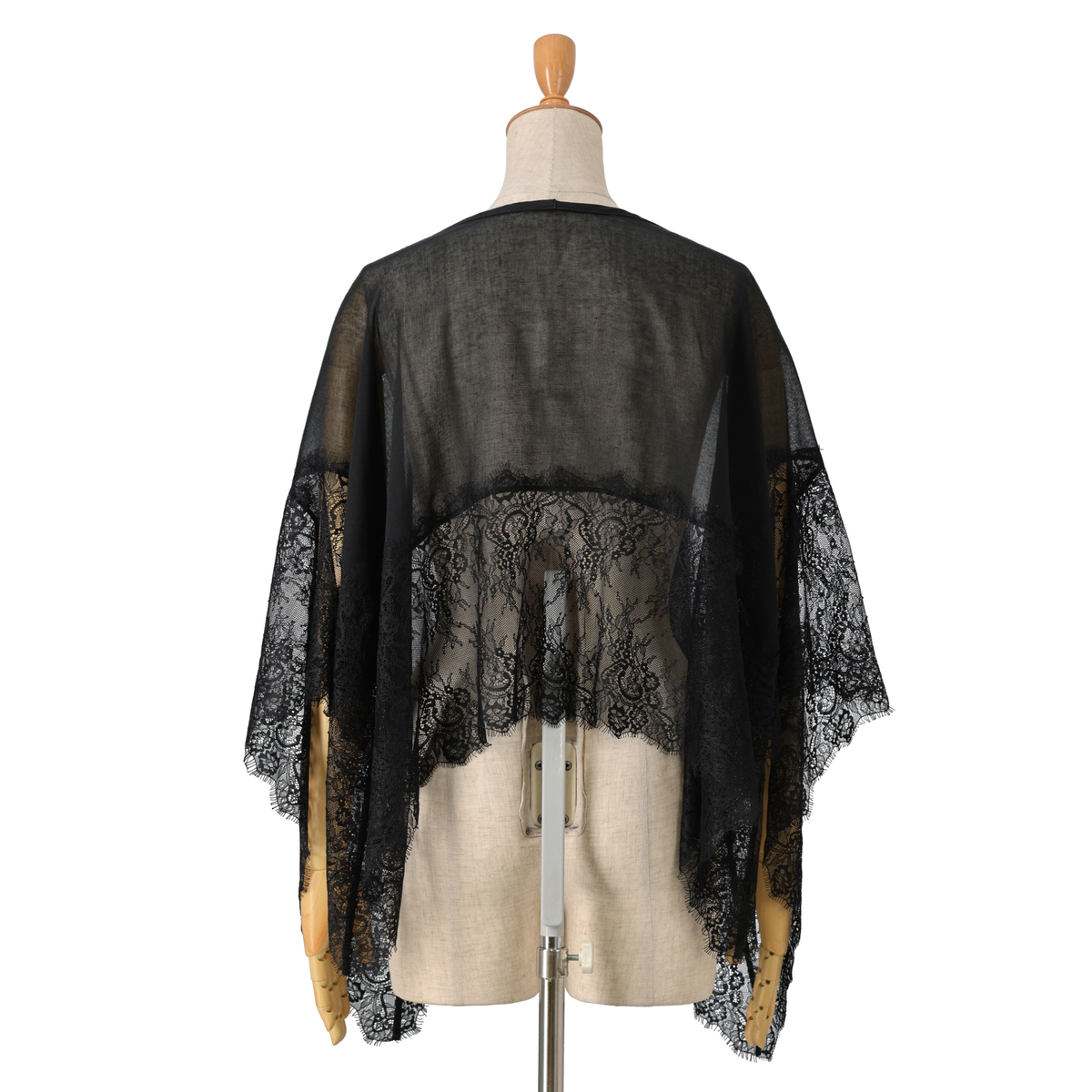 着るアレンジが楽しめるホール付きのスカーフ。肌ざわりの良い正方形のスカーフの中心にホールがあり、頭からすぽんと被れば素敵なトップスに。向きを変えればケープ風にもポンチョ風にもなり、様々な着こなしが広がります。イギリスの宮殿のフラワーガーデンから着想を得た、幅広でラグジュアリーなレース使いも魅力です