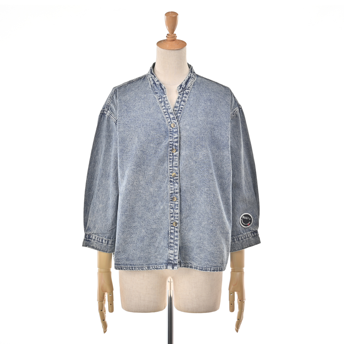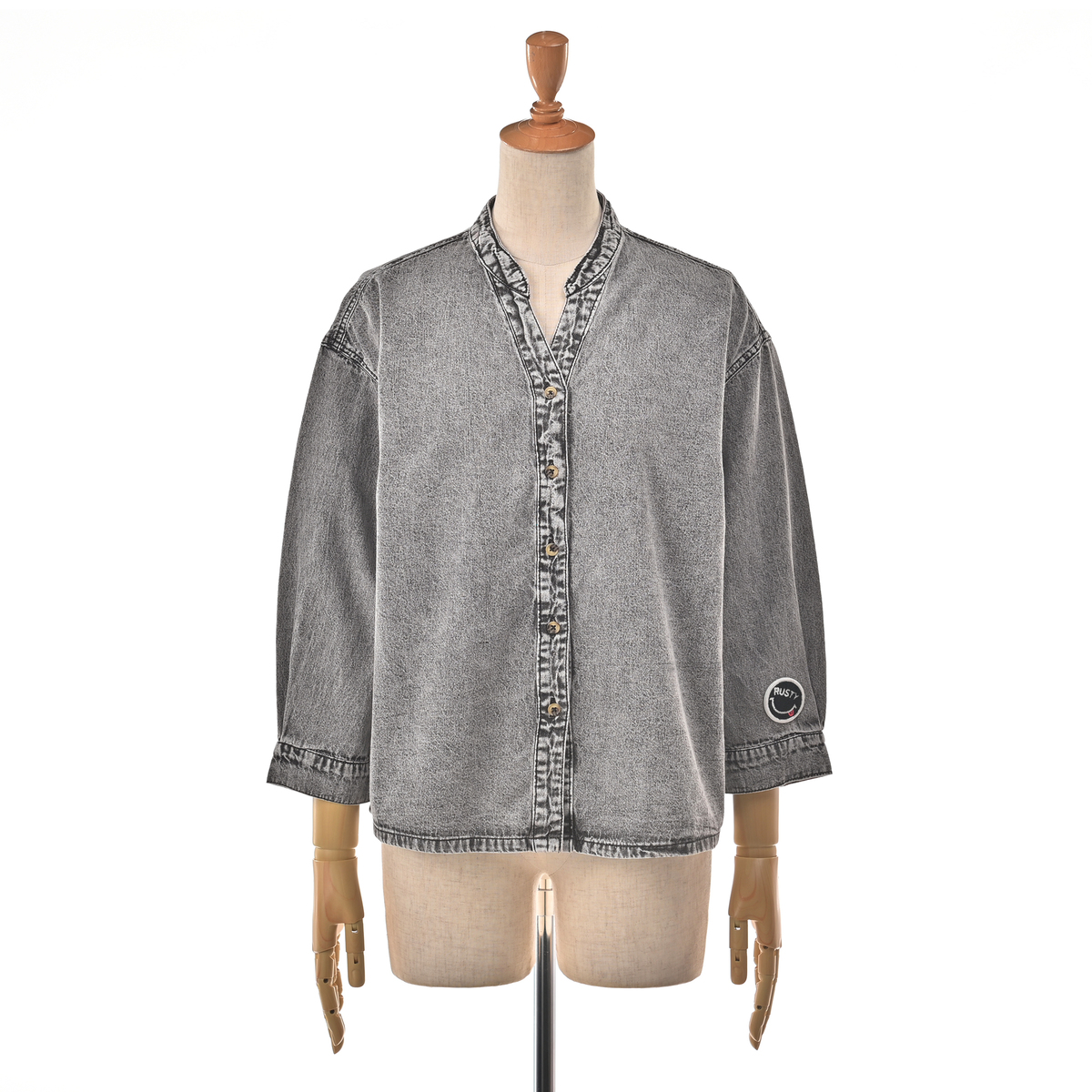 No. 753471 RUSTY ケミカル加工ライトオンスデニムVネックシャツ