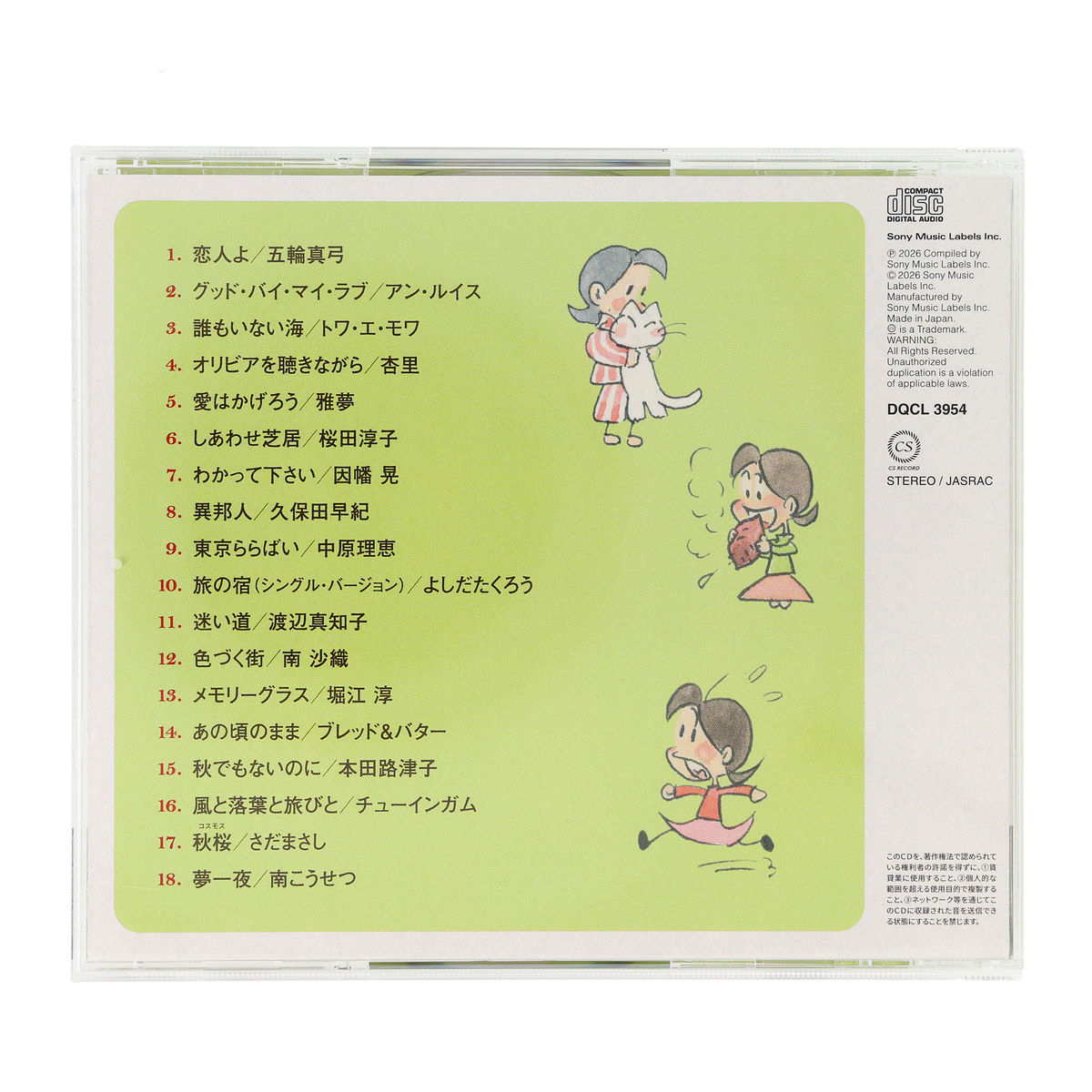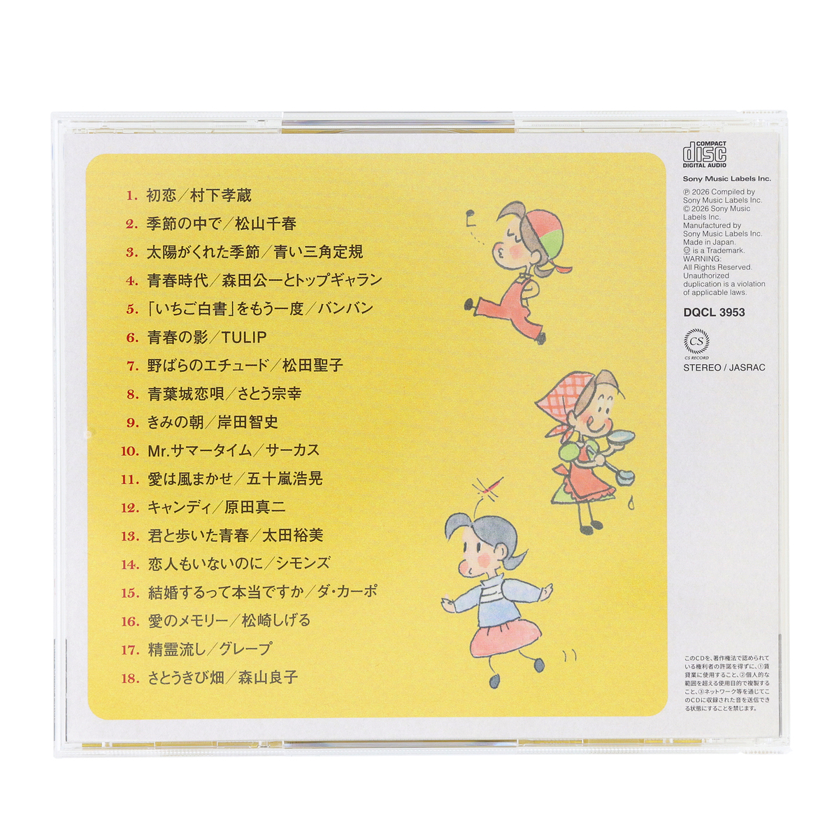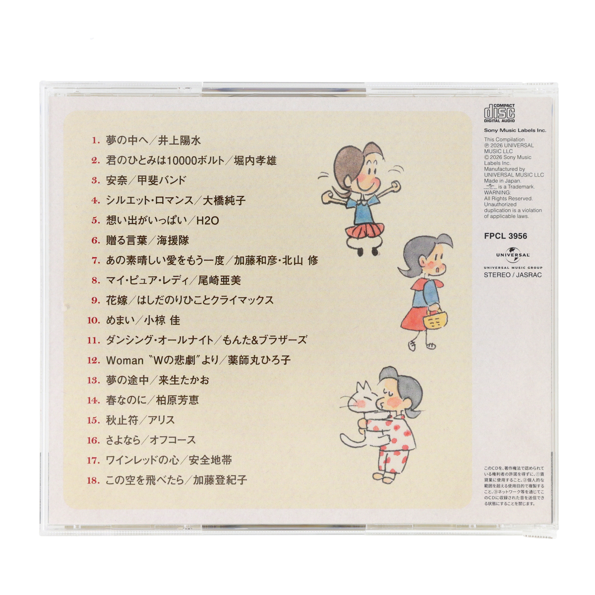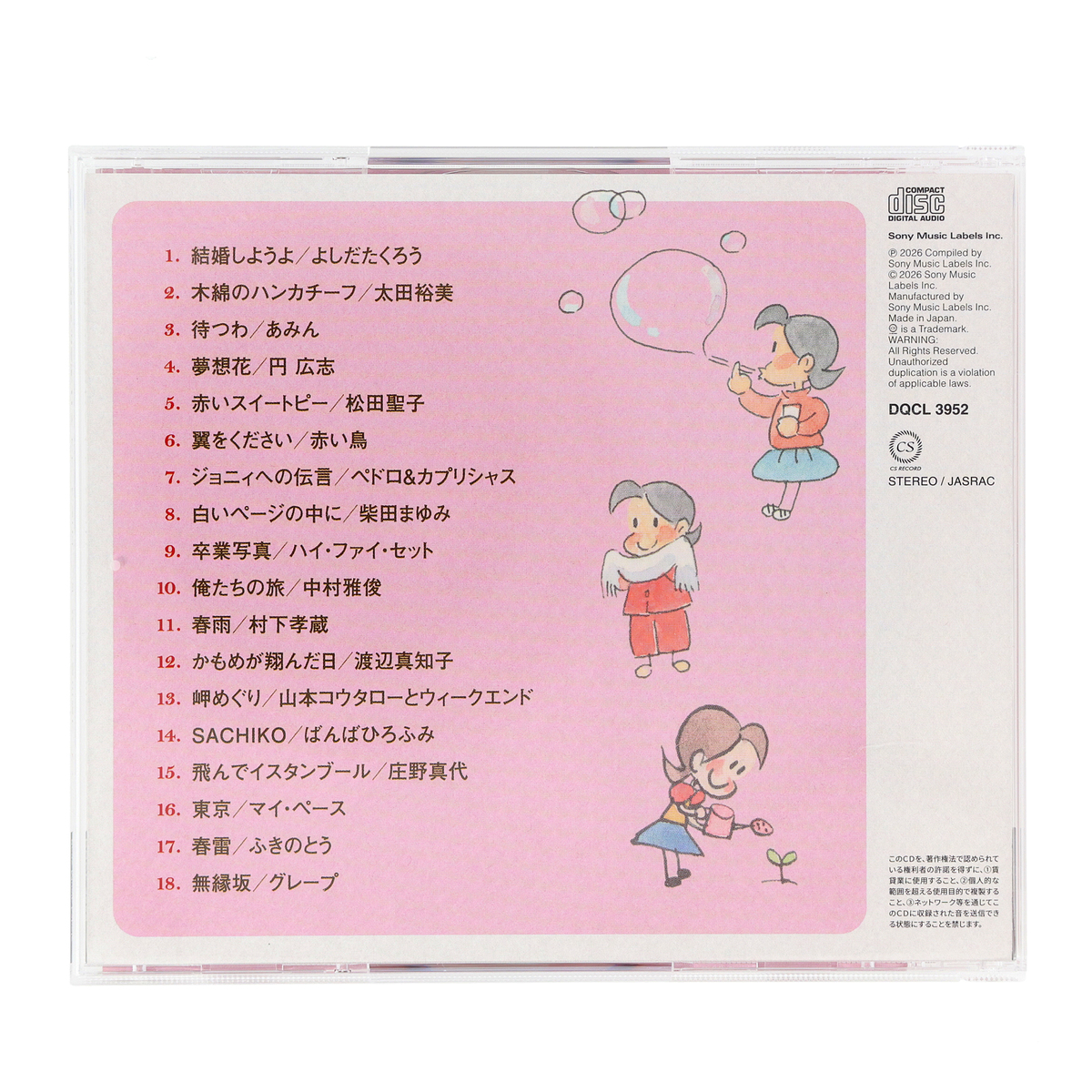 [商品内容] ・CD5枚組(全90曲収録)/総収録時間 約351分 ・各ディスク 各曲:歌詞/解説付き(音楽ライター・長井英治氏)「小さな恋のものがたり」の「チッチとサリー」イラストブックレット付き ・「小さな恋のものがたり」イラスト収納BOX入り ・「みつはしちかこ・コメントカード」封入 ・スマホサイズステッカー5種類セット [注意事項] ※開封後の返品不可 【日本製】 <DISC1> 1.結婚しようよ / よしだたくろう 2.木綿のハンカチーフ / 太田裕美 3.待つわ / あみん 4.夢想花 / 円広志 5.赤いスイートピー / 松田聖子 6.翼をください / 赤い鳥 7.ジョニィへの伝言 / ペドロ&カプリシャス 8.白いページの中に / 柴田まゆみ 9.卒業写真 / ハイ・ファイ・セット 10.俺たちの旅 / 中村雅俊 11.春雨 / 村下孝蔵 12.かもめが翔んだ日 / 渡辺真知子 13.岬めぐり / 山本コウタローとウィークエンド 14.SACHIKO / ばんばひろふみ 15.飛んでイスタンブール / 庄野真代 16.東京 / マイ・ペース 17.春雷 / ふきのとう 18.無縁坂 / グレープ <DISC2> 1. 初恋 / 村下孝蔵 2. 季節の中で / 松山千春 3. 太陽がくれた季節 / 青い三角定規 4. 青春時代 / 森田公一とトップギャラン 5. 「いちご白書」をもう一度 / バンバン 6. 青春の影 / TULIP 7. 野ばらのエチュード / 松田聖子 8. 青葉城恋唄 / さとう宗幸 9. きみの朝 / 岸田智史 10. Mr.サマータイム / サーカス 11. 愛は風まかせ / 五十嵐浩晃 12. キャンディ / 原田真二 13. 君と歩いた青春 / 太田裕美 14. 恋人もいないのに / シモンズ 15. 結婚するって本当ですか / ダ・カーポ 16. 愛のメモリー / 松崎しげる 17. 精霊流し / グレープ 18. さとうきび畑 / 森山良子 <DISC3> 1. 恋人よ / 五輪真弓 2. グッド・バイ・マイ・ラブ / アン・ルイス 3. 誰もいない海 / トワ・エ・モワ 4. オリビアを聴きながら / 杏里 5. 愛はかげろう / 雅夢 6. しあわせ芝居 / 桜田淳子 7. わかって下さい / 因幡晃 8. 異邦人 / 久保田早紀 9. 東京ららばい / 中原理恵 10. 旅の宿(シングル・バージョン) / よしだたくろう 11. 迷い道 / 渡辺真知子 12. 色づく街 / 南沙織 13. メモリーグラス / 堀江淳 14. あの頃のまま / ブレッド&バター 15. 秋でもないのに / 本田路津子 16. 風と落葉と旅びと / チューインガム 17. 秋桜 / さだまさし 18. 夢一夜 / 南こうせつ <DISC4> 1. いい日 旅立ち / 山口百恵 2. なごり雪 / イルカ 3. 白い冬 / ふきのとう 4. 学生街の喫茶店 / GARO 5. 想い出まくら / 小坂恭子 6. あなた / 小坂明子 7. あの場所から / 朝倉理恵 8. 雪 / 猫 9. 神田川 / かぐや姫 10. 冬が来る前に / 紙ふうせん 11. 虹と雪のバラード ('98 Version) / トワ・エ・モワ 12. 池上線 / 西島三重子 13. 想い出のセレナーデ / 天地真理 14. 夢で逢えたら / 吉田美奈子 15. 今日の日はさようなら / 森山良子 16. 少女 / 五輪真弓 17. かもめはかもめ / 研ナオコ 18. 恋 / 松山千春 <DISC5> 1. 夢の中へ / 井上陽水 2. 君のひとみは10000ボルト / 堀内孝雄 3. 安奈 / 甲斐バンド 4. シルエット・ロマンス / 大橋純子 5. 想い出がいっぱい / H2O 6. 贈る言葉 / 海援隊 7. あの素晴しい愛をもう一度 / 加藤和彦・北山修 8. マイ・ピュア・レディ / 尾崎亜美 9. 花嫁 / はしだのりひことクライマックス 10. めまい / 小椋佳 11. ダンシング・オールナイト / もんた&ブラザーズ 12. Woman “Wの悲劇”より / 薬師丸ひろ子 13. 夢の途中 / 来生たかお 14. 春なのに / 柏原芳恵 15. 秋止符 / アリス 16. さよなら / オフコース 17. ワインレッドの心 / 安全地帯 18. この空を飛べたら / 加藤登紀子