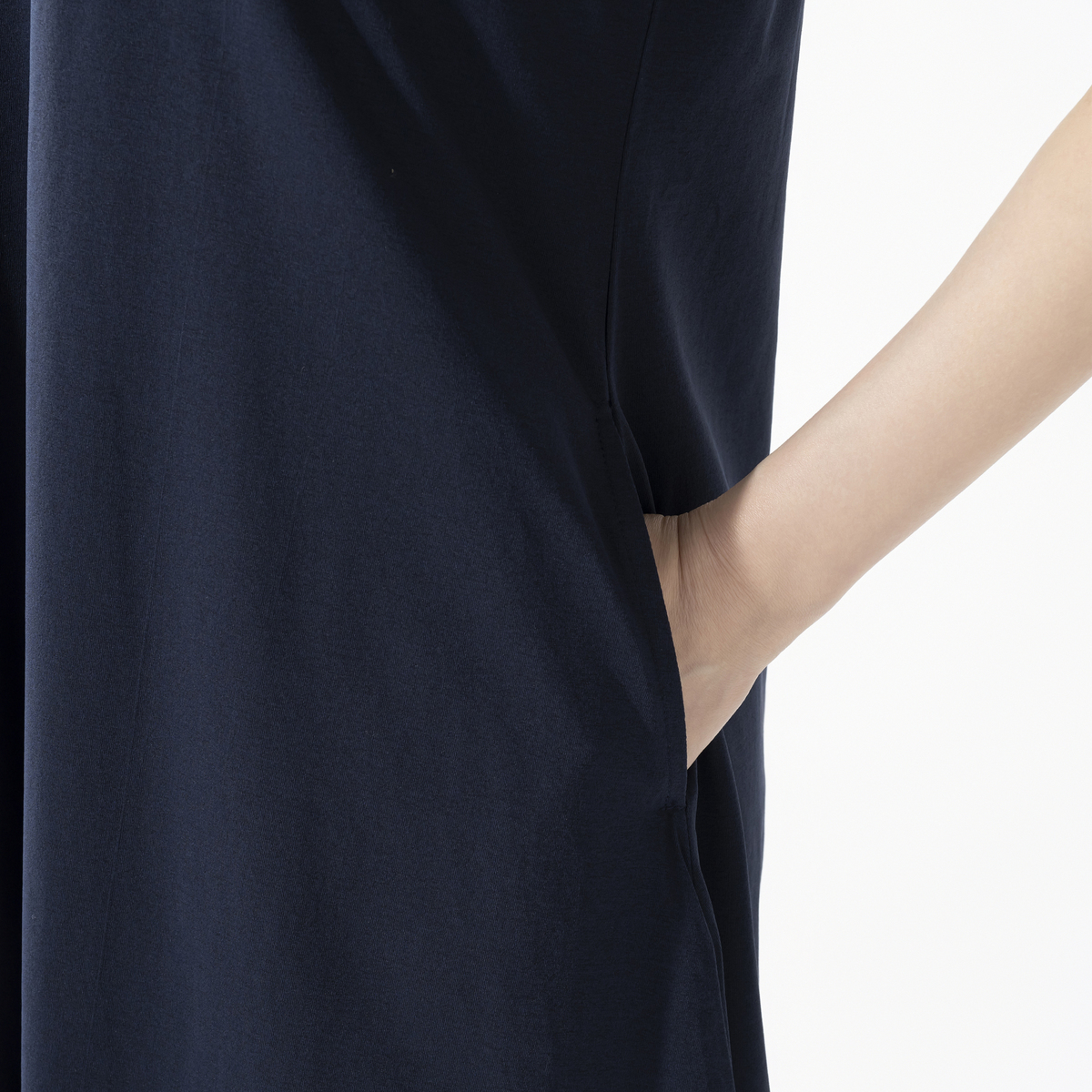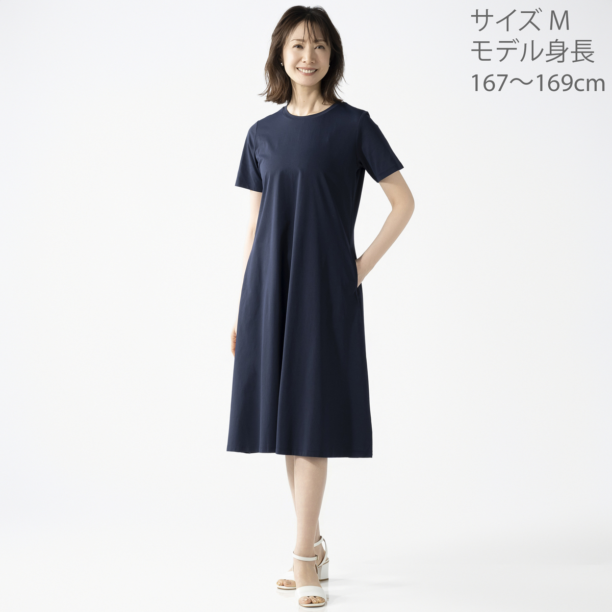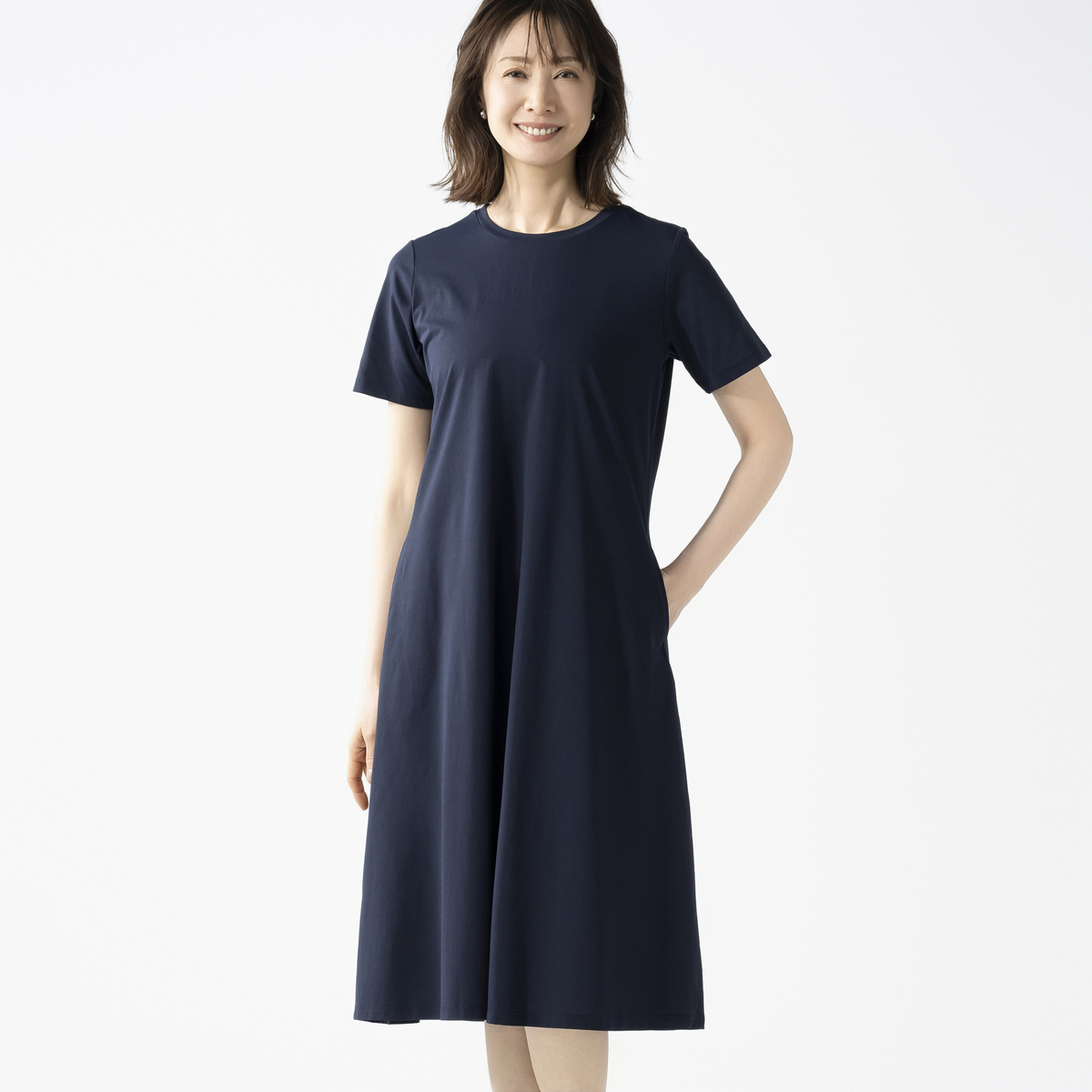 軽やかでお手入れがしやすいポリエステル素材で、忙しい毎日をサポート。袖丈は二の腕を隠す丈感で、両サイドには便利なポケットが付いています