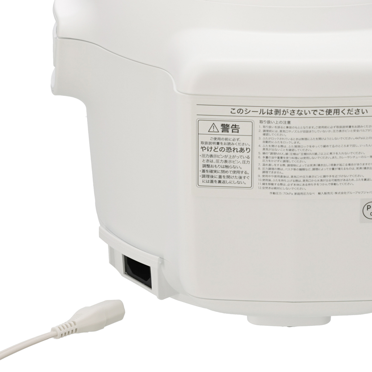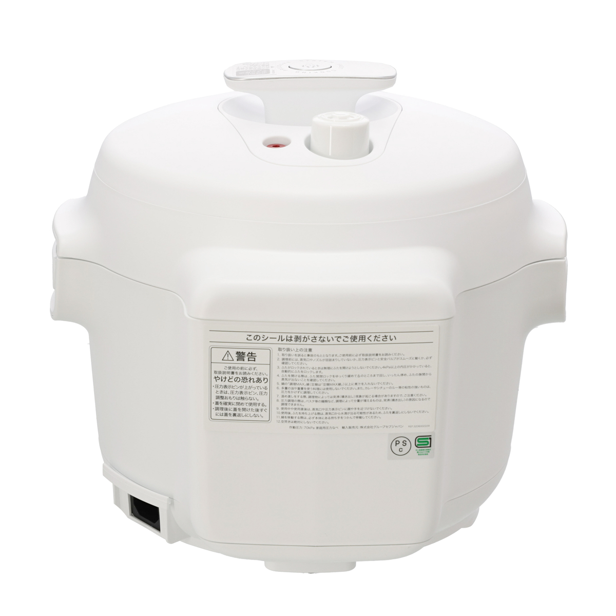 [商品内容] ・本体 ・炊飯用カップ ・かき混ぜパドル ・蒸し台 ・電源コード ・簡単使い方ガイド ・レシピブック [サイズ] 約幅31×奥行32.6×高27.4cm [重量] 約5300g [容量] 呼び容量:3L 調理容量:2L [コード長さ] 約1.5m [消費電力] 800W [材質] 本体:ポリプロピレン、ふた:ポロプロピレン、パネル:ポリカーボネート、電源コード:クロロスホン化ポリエチレンゴム、内ふた:ステンレス 内なべ:アルミニウム合金+セラミックコーティング、蒸し台:ポリプロピレン、計量カップ:ポリプロピレン かき混ぜパドル:ステンレス ■取り扱い説明を十分にご確認の上、ご使用下さい 【中国製】 [注意事項] ※使用可:食器洗い機 ※使用不可:取っ手取外し、漂白剤、電子レンジ、オーブンレンジ ※定格15A、交流100Vのコンセントを単独で使用する ※電源プラグのほこりなどは定期的に取り除く ※電源プラグは根元までしっかりと差し込む ※ぬれた手で電源プラグの抜き差しはしない ※専用コード以外は使用しない。また、他の機器に転用しない ※使用中、電源プラグ、電源コード、本体が異常に熱くなったり、通電したりしなかったときは、ただちに使用を中止する ※電源コード、電源プラグを破損するようなことはしない ※電源コードが傷んでいたり、コンセントの差込がゆるいときは使用しない ※修理技術者以外の人は絶対に分解したり修理、改造しない ※本製品で子供が遊ばないよう十分に注意する ※ふたがロックされているときは無理にふたを開けようとしない ※調理後にふたを開けるときは必ずふた取っ手を持ちながら開け、蒸気や熱湯が手や顔にかからないように注意する ※本製品や電源コードおよび電源プラグを水につけたり水に濡らしたりしない ※付属品以外の部品を使用しない ※パッキンが損傷しているときは本製品を使用しない ※ふたの内側に異物を入れない。また、安全バルブを他のもので代用しない ※鍋を電子レンジ、オーブンにいれて使用したり、本製品以外の熱源で使用しない ※使用前にノズルが目詰まりしていないか必ず点検する ※身体的、知覚的、精神的に障害がある者や製品の知識や経験のない者(子供を含む)は、以下の場合のみ使用する。監督者がいる場合。製品の安全な使い方を教わり使用にともなう危険性を理解している場合。やけど、感電、けがをするおそれがあります ※本製品を移動するときは、ふた取っ手を持たず、本体取っ手をつかんで移動する。また本体取っ手が熱くなっている場合はミトンを用いて持ち、やけどに注意する ※本製品を外部タイマーやリモートコントロールシステムを使用して操作しない ※本製品を加熱されたオーブンや熱いコンロの上に置いたり直火または可燃物の近くに置かない ※材料がパッキングの上やみぞにのらないようにする ※本製品は、必ず屋内で使用してください ※レシピに記載されている量、または最大調理量・最低調理量を守って使用してください ※必ず本製品用の付属品を使用してください ※空炊きをしないでください ※鍋を他の熱源にかけないでください ※金属製のフライ返し等の調理器具は、コーティング面に傷をつけないよう、角の丸いものをご使用ください。より長くお使いいただくためには、ナイロン樹脂製か木製のものを使用されることをおすすめします ※万が一、はがれたコーティングを飲み込んでしまっても害はありません ※食材は鍋の中で切らないでください ※かたくとがった食品(骨付き肉など)を調理するときは、食品を鍋内面に押し付けたり、強くかき混ぜたりしないでください ※付属の蒸し台をお使いください ※調理以外の目的にはご使用にならないでください ※本製品は消毒器ではありません。瓶を消毒するためには使用しないでください ※鍋を使用せず本体に直接具材を入れないでください ※鍋や熱くなる部品は常に清潔に保ってください。また、加熱プレート中央の温度センサーは可動する状態を保ってください ※使用後は、すぐに鍋を洗ってください ※お手入れするときは、本体を湿らせたふきんで拭いてください。鍋、パッキング、炊飯用カップ、蒸し台、かき混ぜパドルは食器洗浄乾燥機をお使いいただけます。鍋をお手入れするときは、ナイロンたわしで洗ったりこすったりしないでください ※調理後のお手入れの際に本体を水につけないでください。故障の原因となります ※本製品は一般家庭用です。業務用または一般家庭以外での使用や取扱説明書の指示に反する使用について、弊社は一切の製造責任と保証の責任を負いかねます ※製品を廃棄するときは、電源コードをコンセントから抜いた後、電源コードを切断するなどして動作不能な状態にしてください