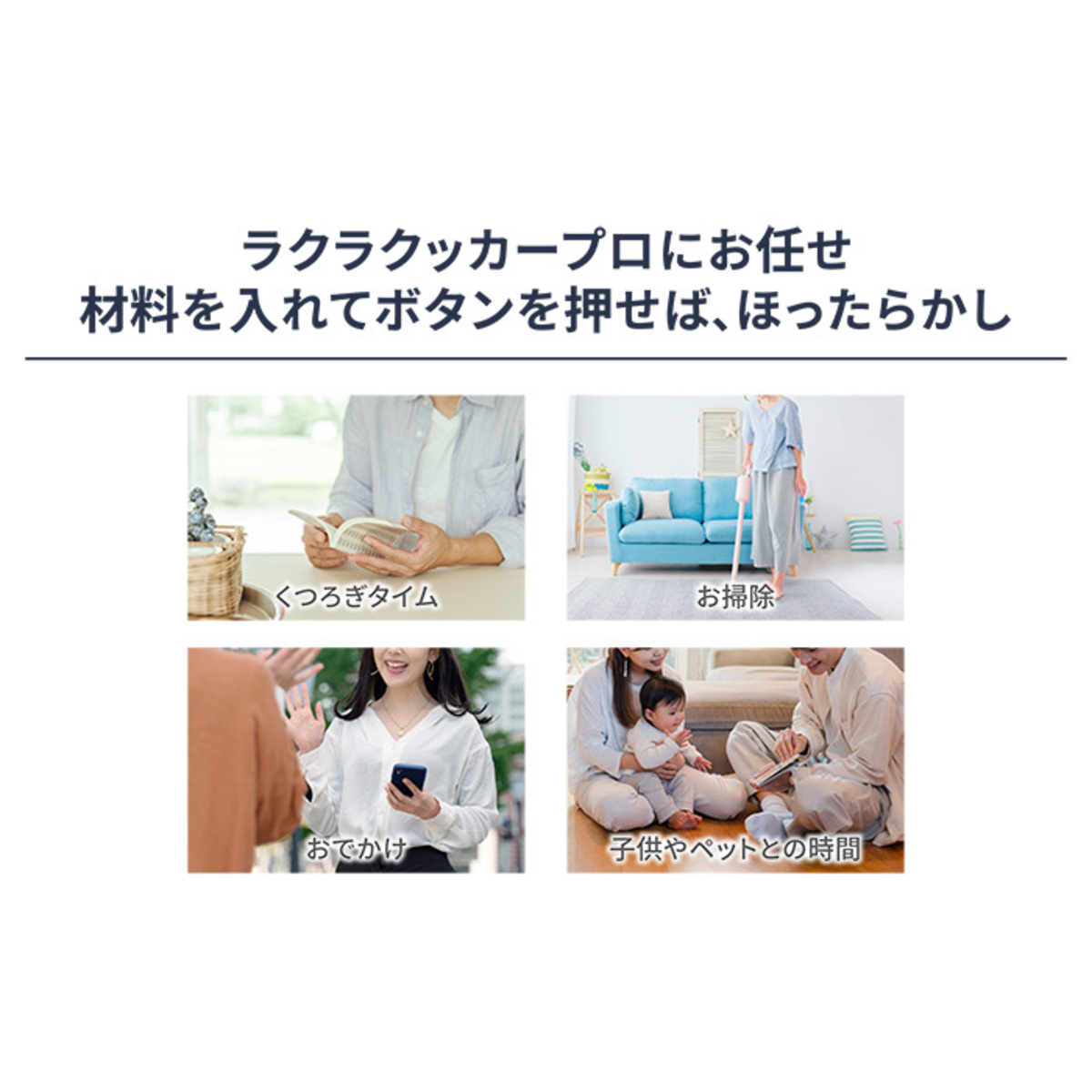 食材を入れて、予約開始後すぐに調理スタート。スマート予約調理***により調理後は食材に最適な温度を保ち、最後の仕上げで再加熱し、予約した時間にできあがり。帰宅時間を見込んでセットしておけば、できたてアツアツの料理を楽しめます