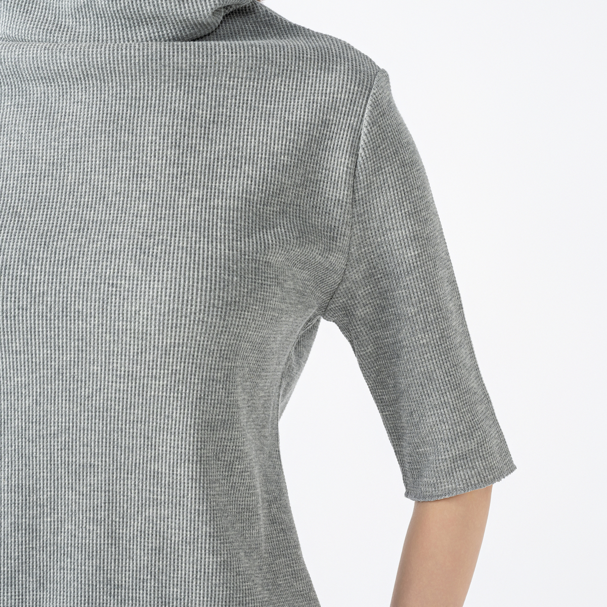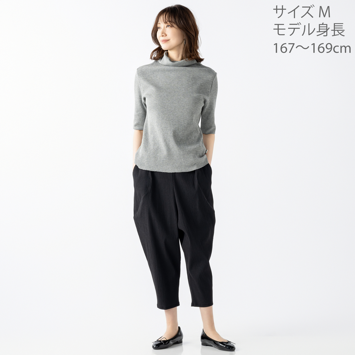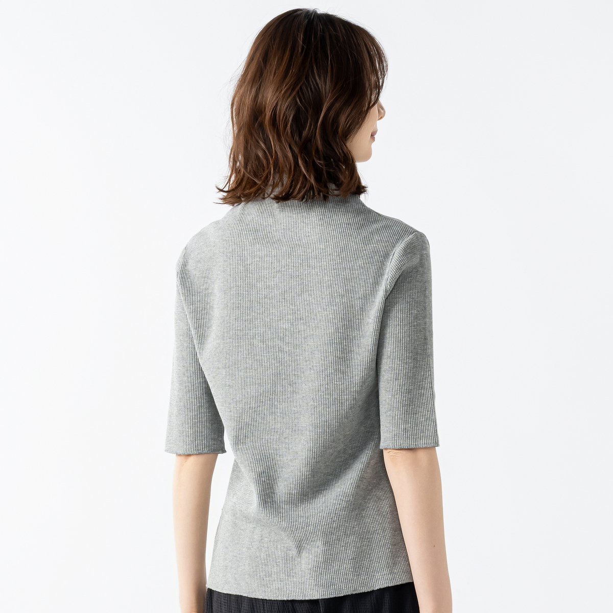 高さがありながらゆとりを持たせた衿元で、アレンジも自在に。リラックスした着心地ながら、おしゃれにスタイリングできます