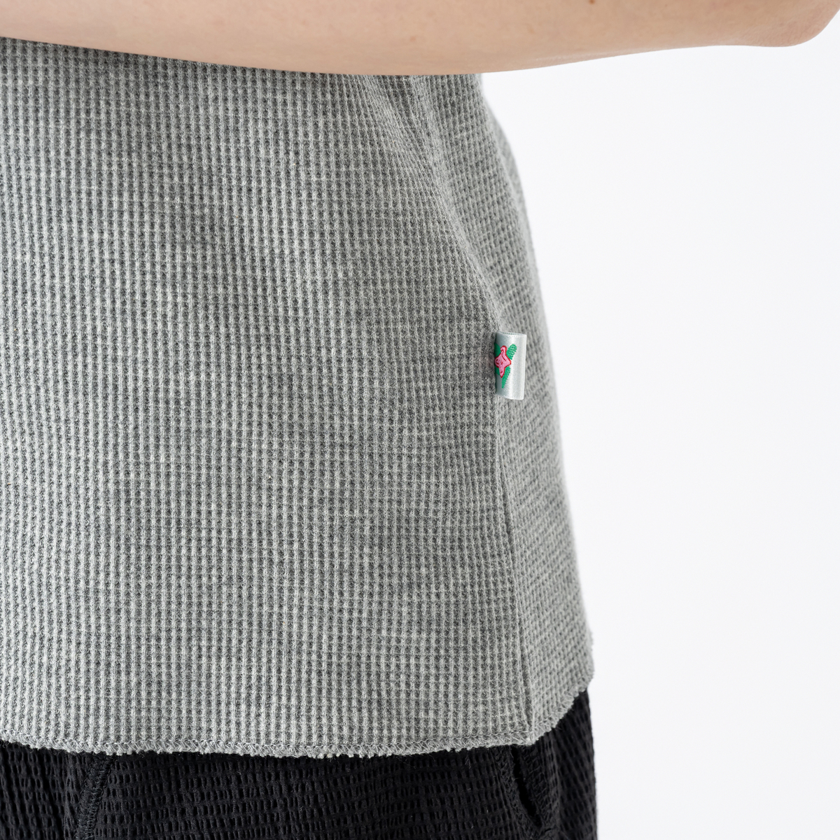 シンプルながらも立体感あるワッフル生地のプルオーバー。普段のワードロープに取り入れやすいアイテムです