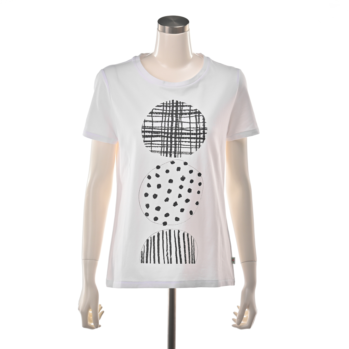[商品寸法(ヌード)cm] サイズ バスト 着丈 S: 84(74〜82) 58.5 M: 90(81〜89) 60.5 L: 96(88〜96) 61.5 LL: 102(95〜103) 62.5 3L: 110(102〜110) 63.5 サイズ 肩幅 袖丈 S: 35 16 M: 36 17 L: 37 18 LL: 38 19 3L: 39 20 [素材] 綿 92%、ポリウレタン 8% [お手入れ] 洗濯機洗い可 [注意事項] ※商品寸法の誤差は多少発生します。ご了承下さい ※洗濯後はすぐに脱水し、形を整えて干して下さい。長時間、水につけたままにしないで下さい ※濃色製品は着用中の摩擦により色移りすることがあります。また、雨や汗等で濡れた状態で着用すると色移りすることがあります。その際はお早めに洗濯をして下さい ※プリント部分を擦ったり、揉んだりしないで下さい ※プリント部分にアイロンを掛けないで下さい 【中国製】