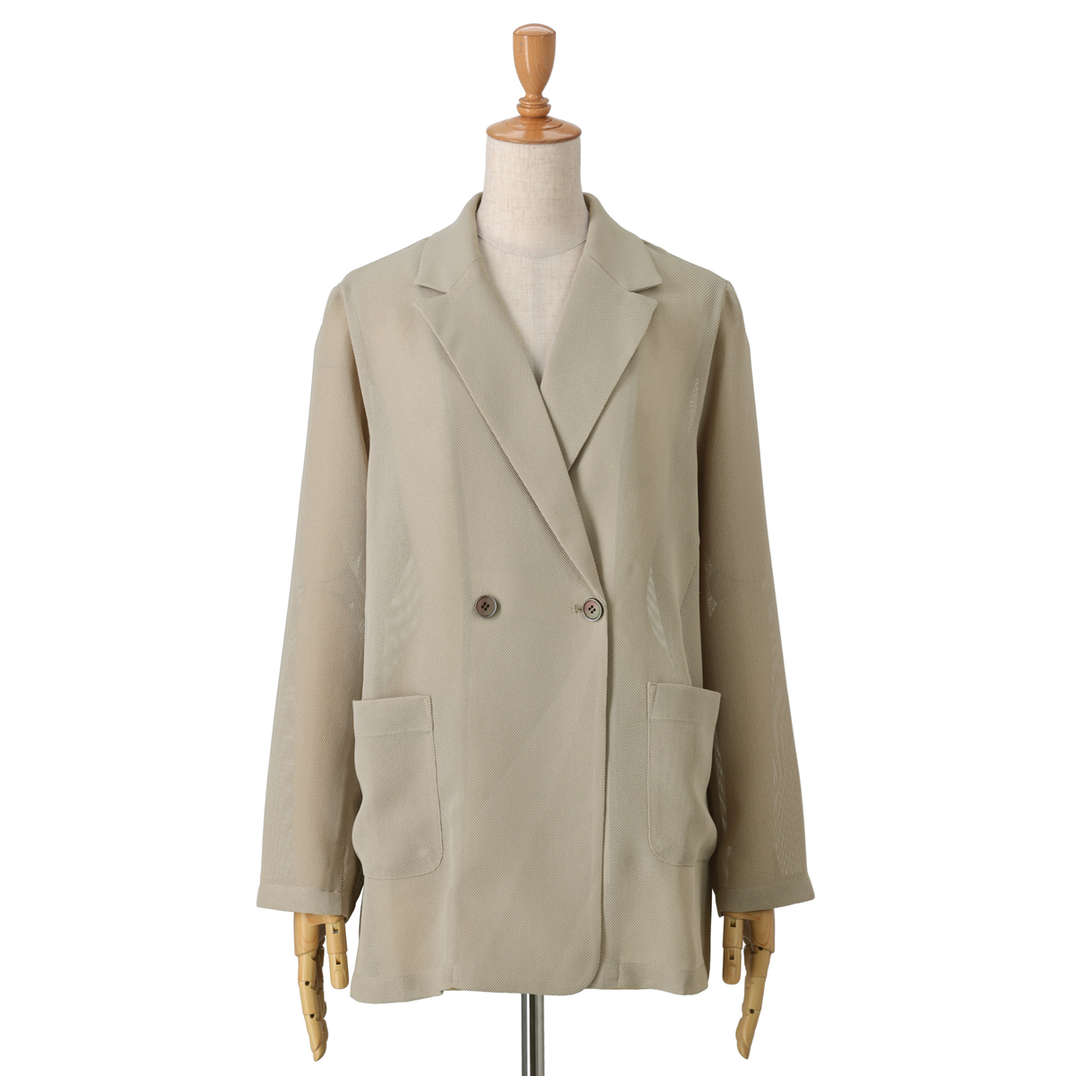 少し大きめのサイズ感で、程よくメンズライクなダブルジャケット。さっとカーディガン代わりに羽織ってもきちんと見えし、トレンド感のある着こなしが叶います