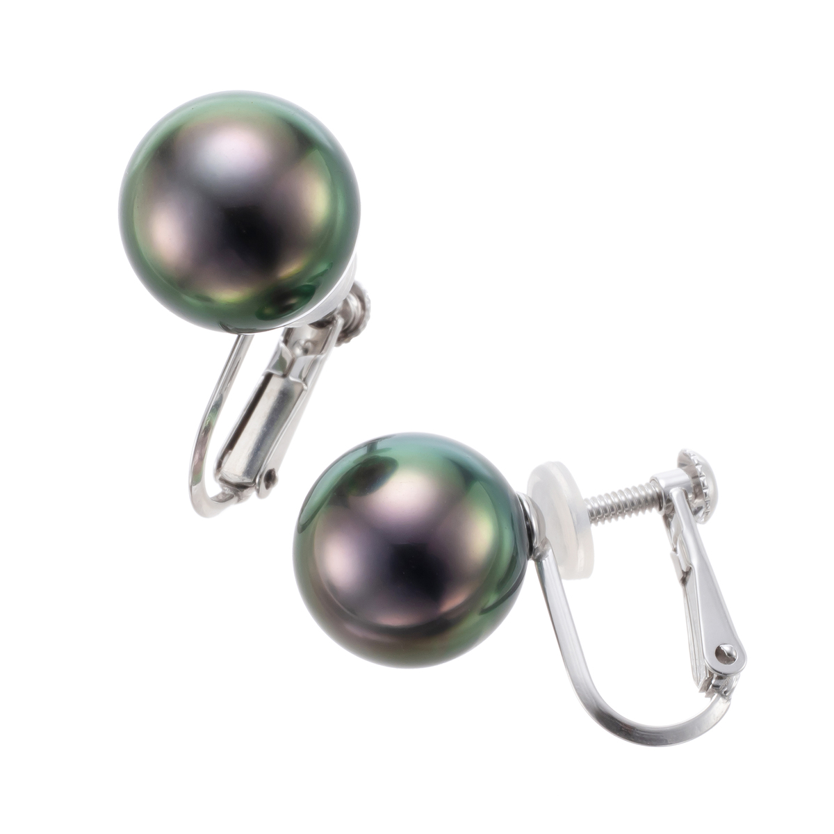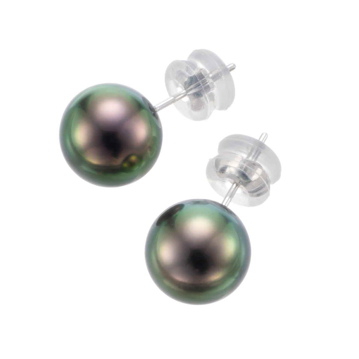 存在感のある黒蝶真珠を使ったイヤリングまたはピアスです。黒蝶真珠の中でも真珠科学研究所が「テリ最強」と認めたピーコックを使用。すっきりとしたスタッドタイプで耳元に上品な印象を与えます