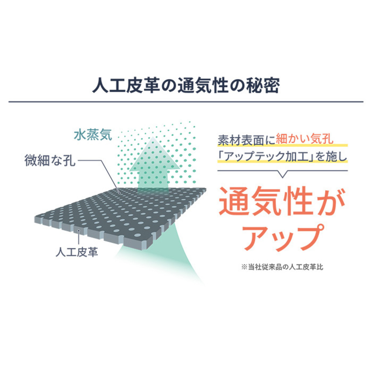 アッパーに人工皮革クラリーノ トリベラを採用。軽量で伸縮性・耐久性に優れ、履き始めから柔らかく、お手入れがラクなのもうれしいポイント。さらに表面に細かい気孔を設けることで通気性を持たせた"アップテック加工"を施しています