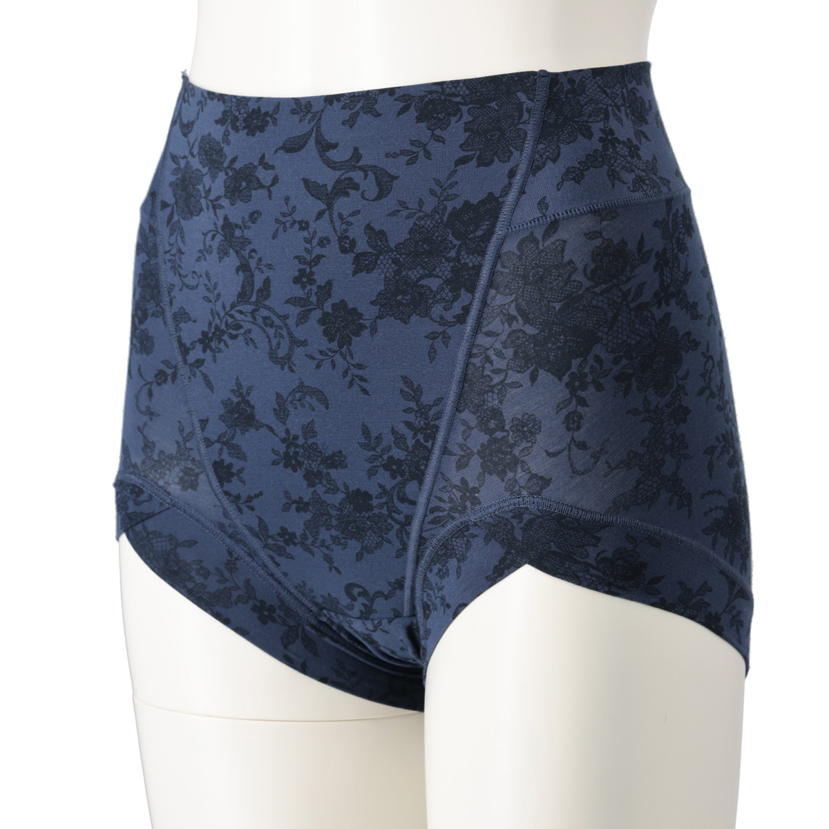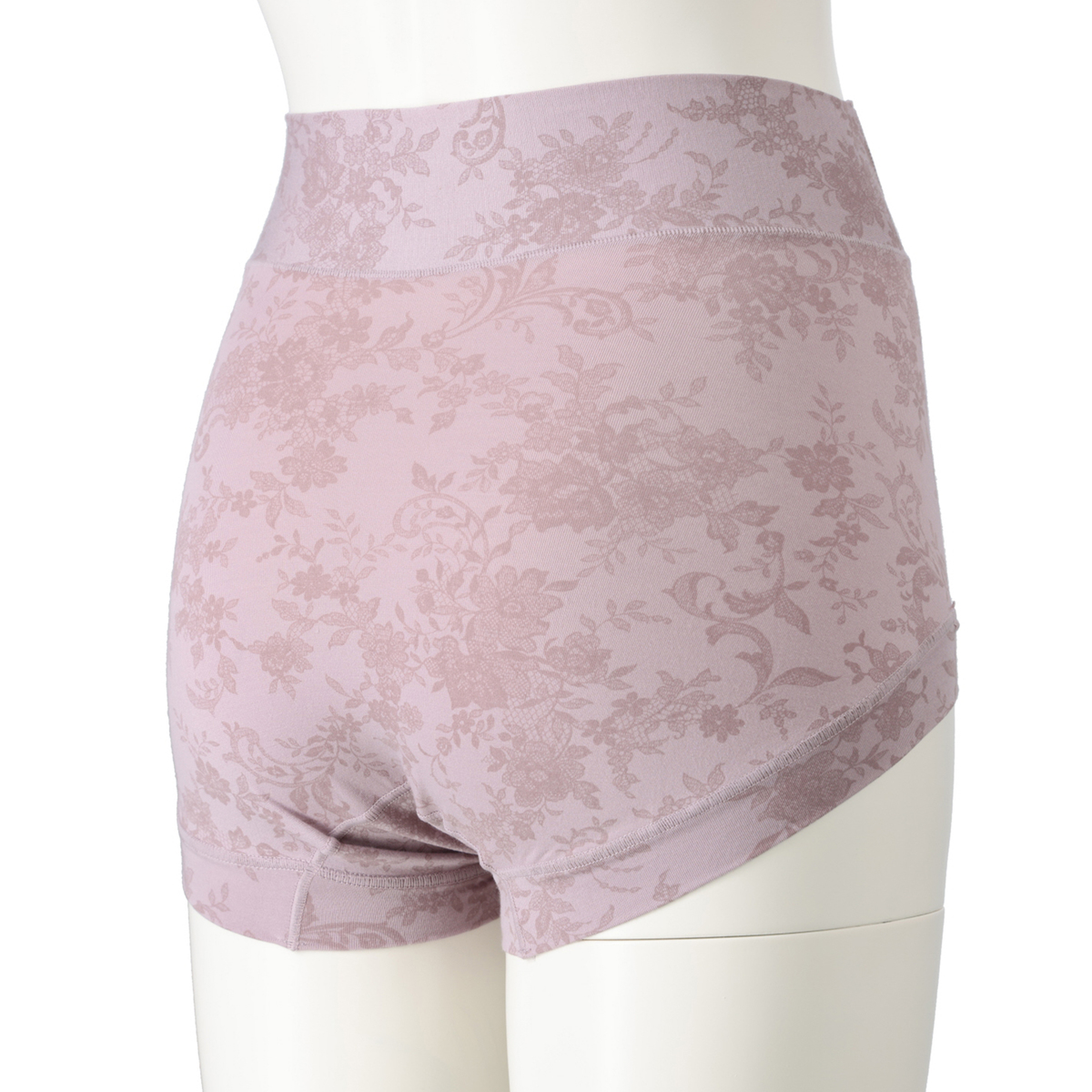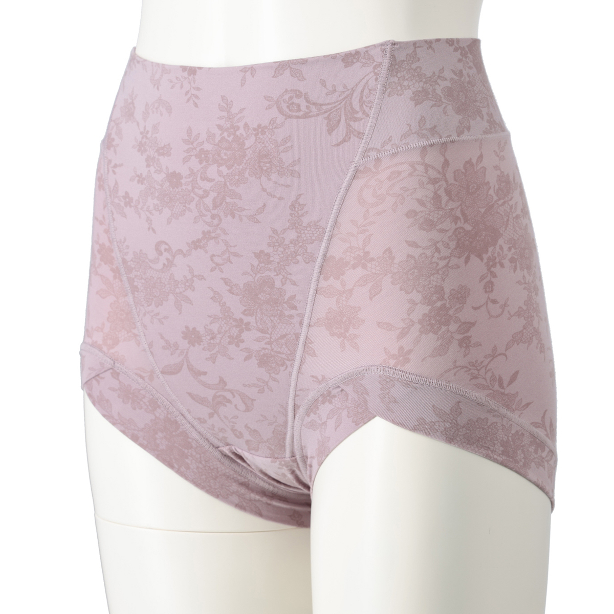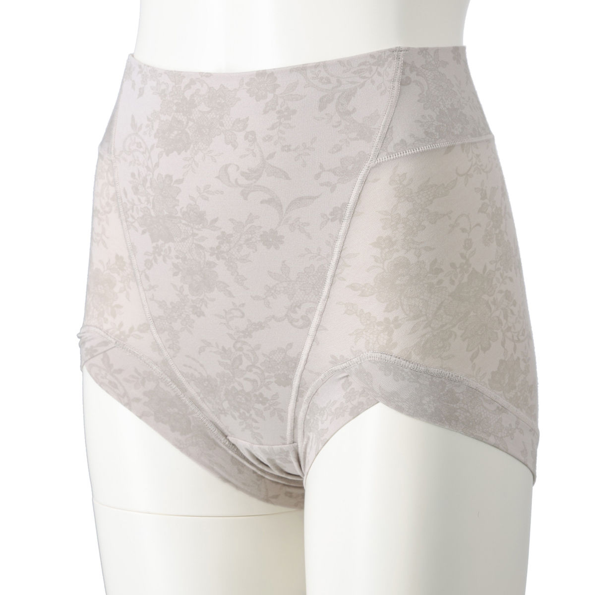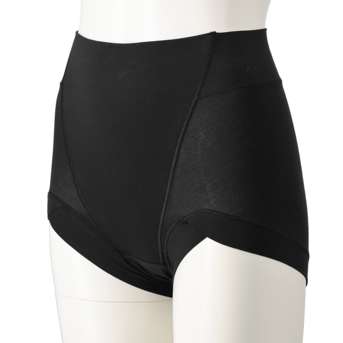 太ももに流れたヒップのお肉を包み込み、ラインを整える設計。ヒップ部分はナイロン綿ベア天竺の一枚仕立てで、動きに合わせて伸縮し丸みを保ちやすい仕様です。すっぽり包み込む形で心地よくフィットし、後ろ接ぎをなくして快適さも高めています
