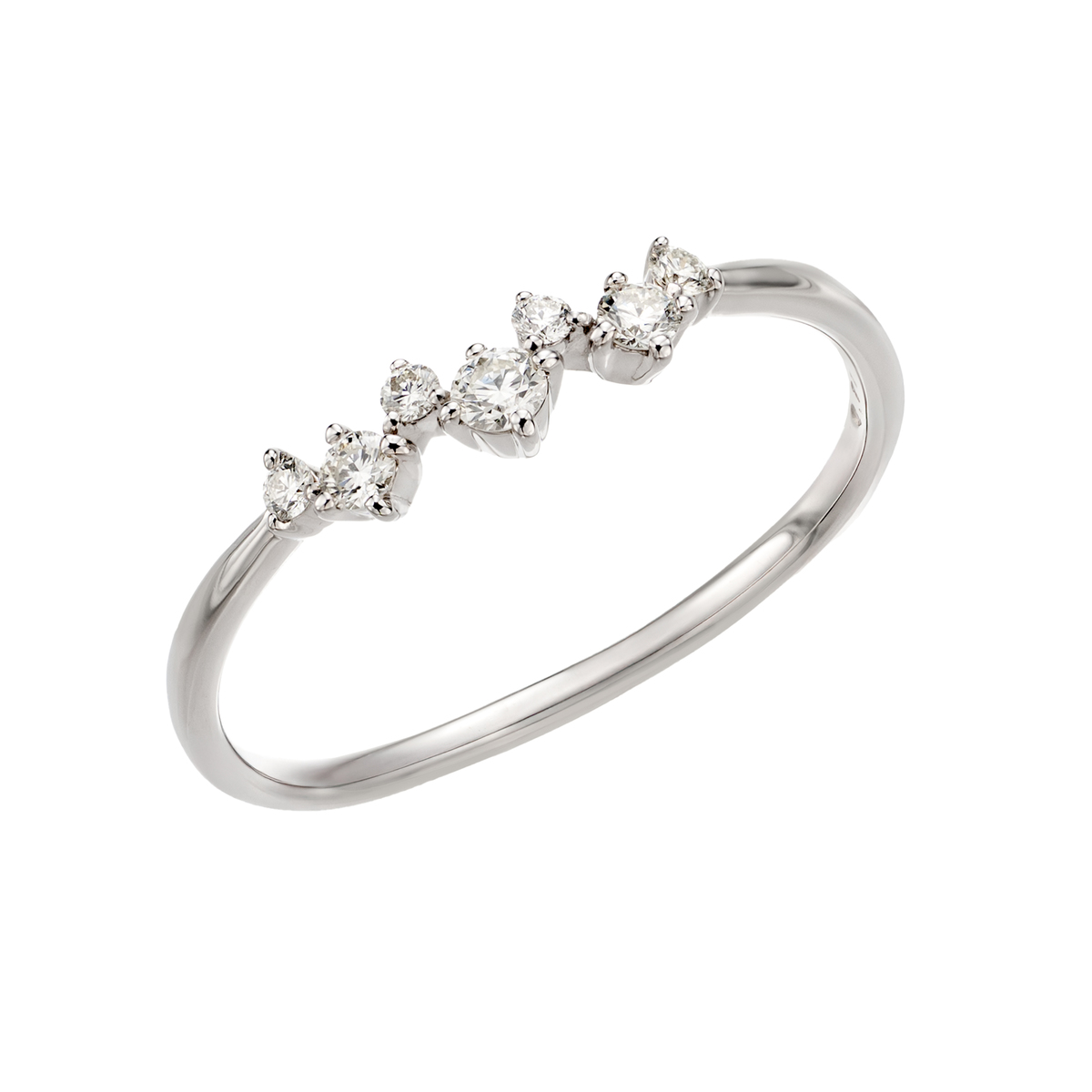 素材:[ダイヤモンド] ラウンドシェイプ 爪留め 7石 合計0.11ctUP 最大幅(約) 4.0mm 最小幅(約) 1.0mm 総重量(約) 1.4g [地金] プラチナ950 [付属品] ボツワナ産ギャランティカード ■サイズ直し対象外 ■受注発注商品のためデザイン・価値に影響のない範囲で仕様が変わる場合がございます ■素材の大きさ・形・色合い、製品のサイズは1点1点多少異なります 【日本製(ダイヤモンドはボツワナ産)】