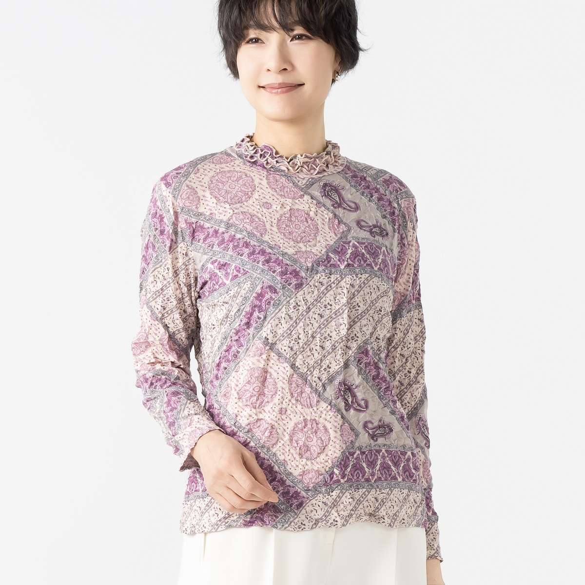 No. 753660 タカシマヤスタイルプリュ ランダムプリーツプルオーバー[プリント]