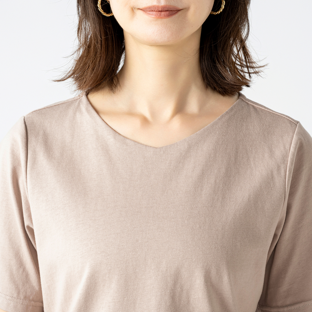 テーパードパンツやきれいめ素材のパンツと合わせて、Tシャツでもラフになりすぎないカジュアルスタイルに。一枚で着やすい設計なので、シンプルなコーディネートでもきれいに決まります