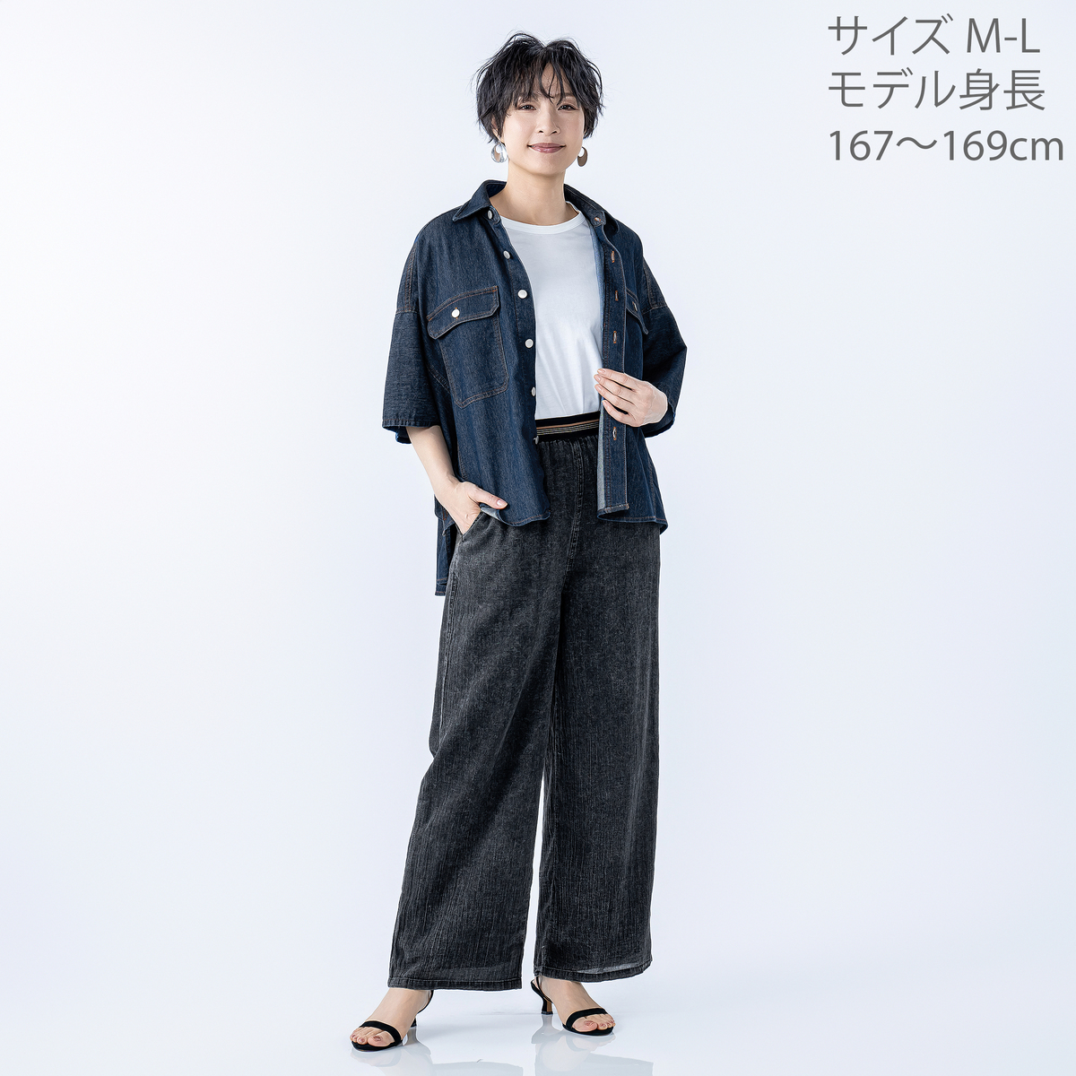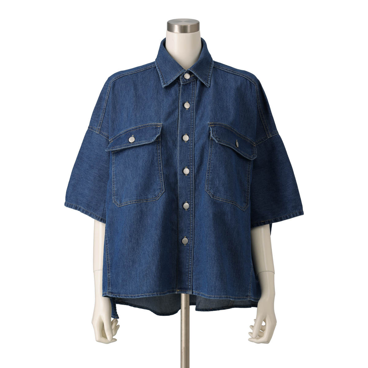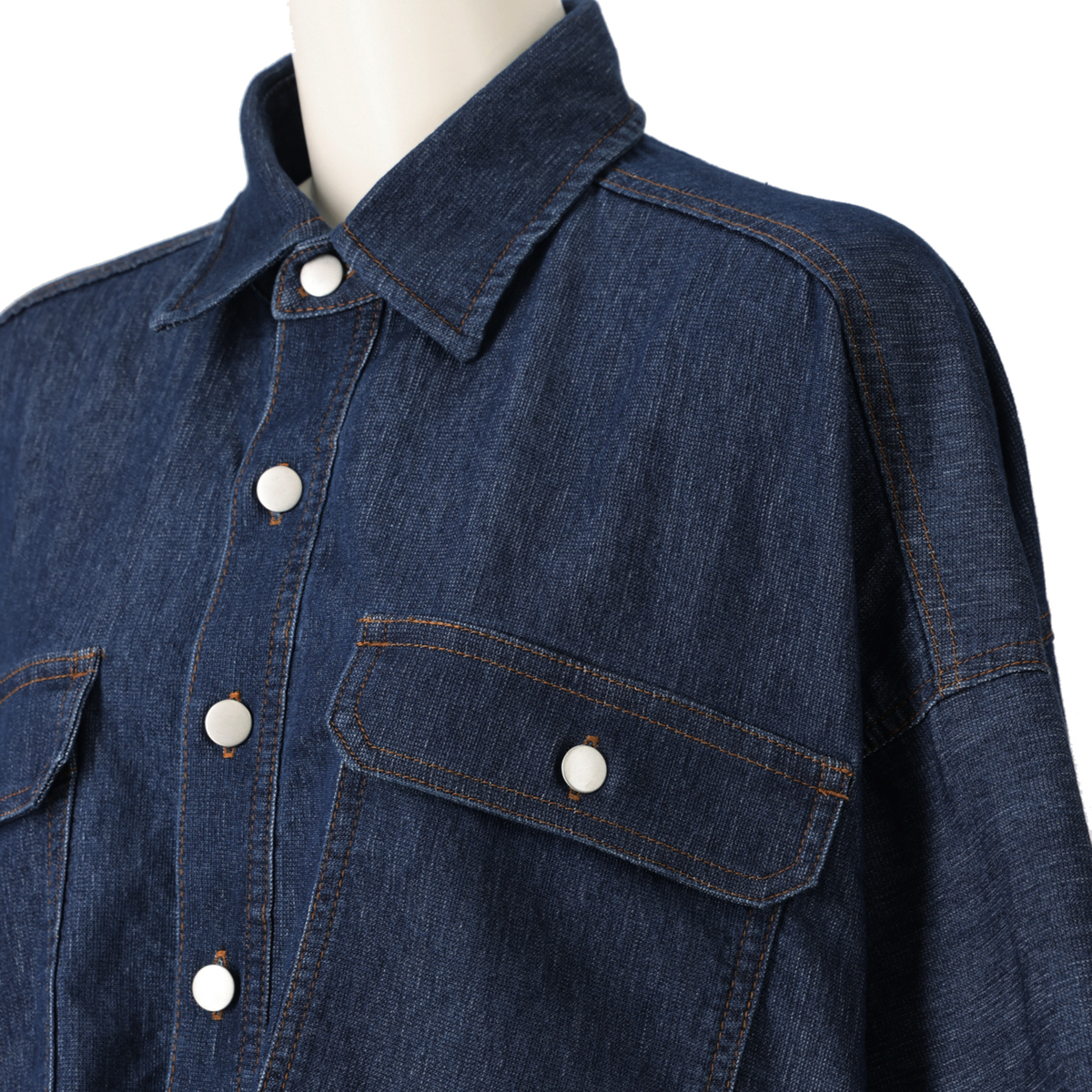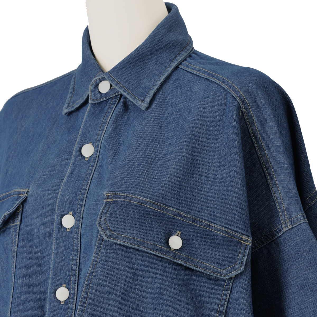 [商品寸法(ヌード)cm] サイズ バスト 着丈 M-L : 179(79〜94) 70 LL-3L: 186(93〜108) 71 サイズ 裄丈 M-L : 50 LL-3L: 51 [素材] 綿66% ポリエステル33% ポリウレタン1% [お手入れ] 洗濯機洗い可 [注意事項] ※商品寸法の誤差は多少発生します。ご了承下さい ※デニム素材のため色落ち等がございます。単独でのお洗濯をお願いします。また、淡色のお洋服やインナーとの組み合わせや、小物などに色映移りする場合がありますのでご注意をお願いします ※汗や摩擦により、色落ちしたり他に色移りすることがあります。洗濯により、若干の色落ちがあります。他の物と分けて単独洗いをしてください ※蛍光増白剤の入っている洗剤を使用しないでください ※アイロンは当て布を使用して掛けてください ※釦にはアイロン禁止 ※この製品は素材・染料の性質上、洗濯や着用中の摩擦、汗、雨等で色落ち、色移りすることがあります ※白、淡色系との組み合わせはお避け下さい ※摩擦により淡い色のベルトやバッグ、車のシート、ソファー等に色移りすることがありますのでご注意下さい ※他のものと一緒に洗わないで下さい ※濡れたままの放置、他のものとの重ね置きはしないで下さい ※紫外線や湿度の影響により、黄変(黄色に変色)することがありますが、水洗いにより目立たなくなります ※高温高湿の場所は避け、長時間同じ場所に保管しないでください 【中国製】
