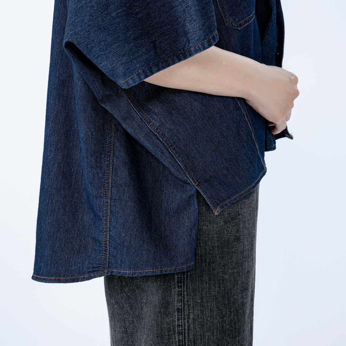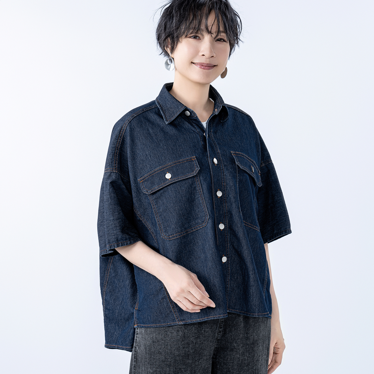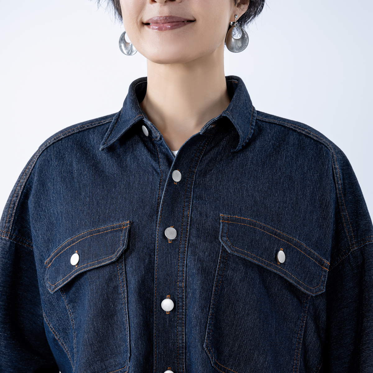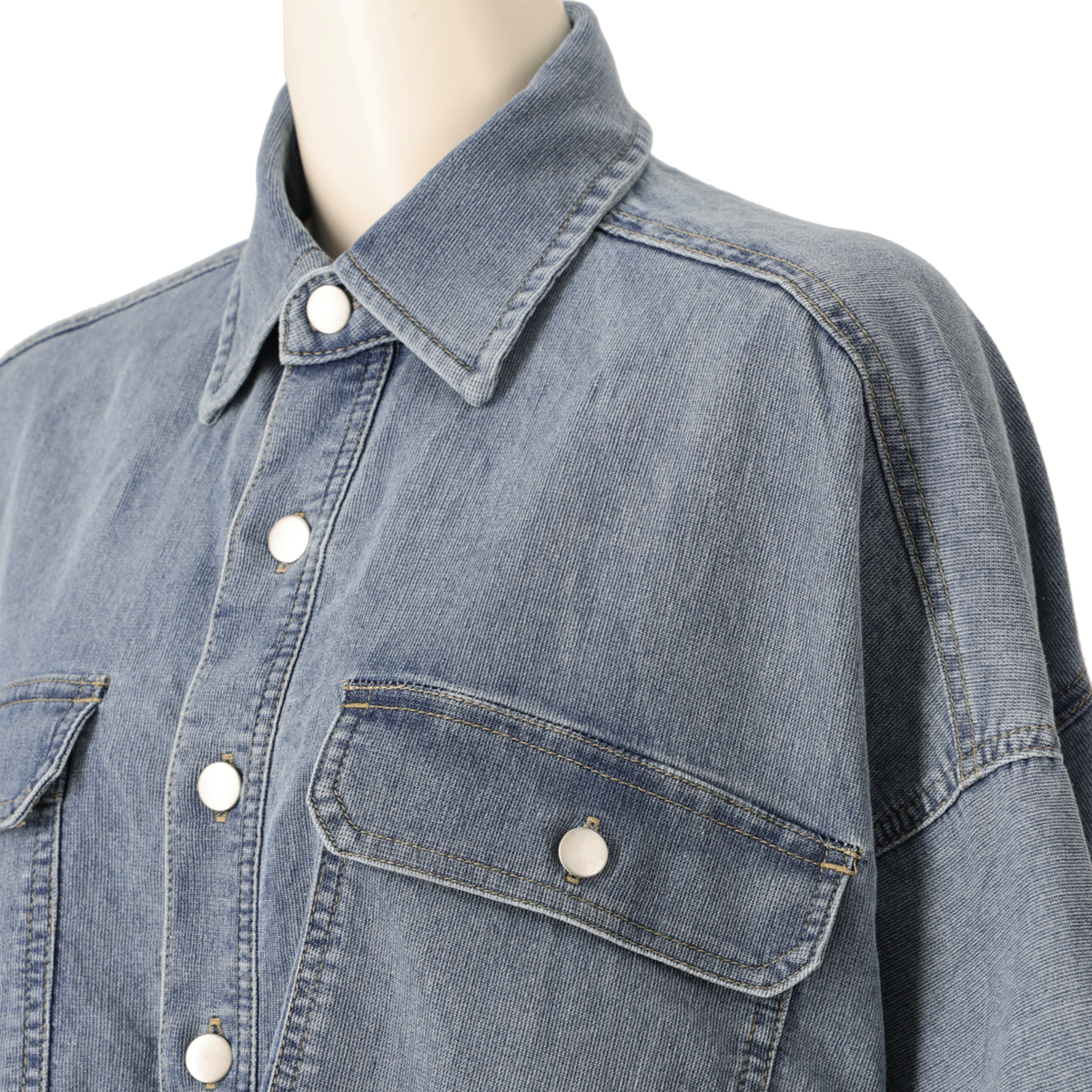 軽やかに着こなせるデニムシャツジャケット。前立てや切替え線、ポケットにはダブルステッチを施し、ヴィンテージシャツのような雰囲気に仕上げました