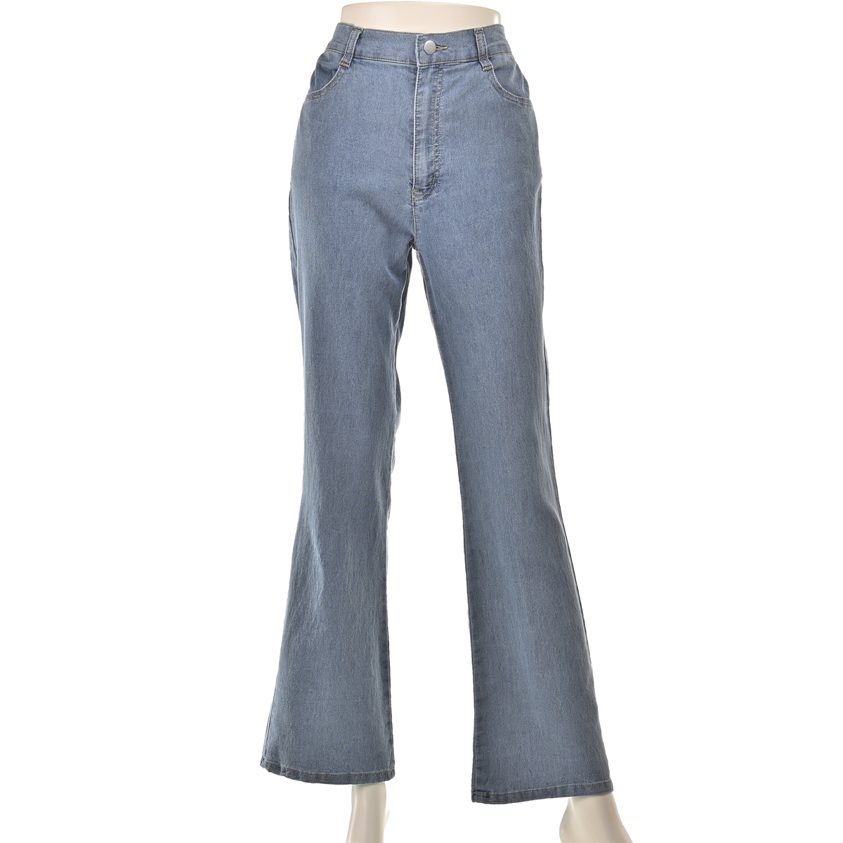 ストレートに近いナチュラルフレアシルエットのデニムパンツ。脚のラインを拾い過ぎず、まっすぐ脚長に見せてくれます