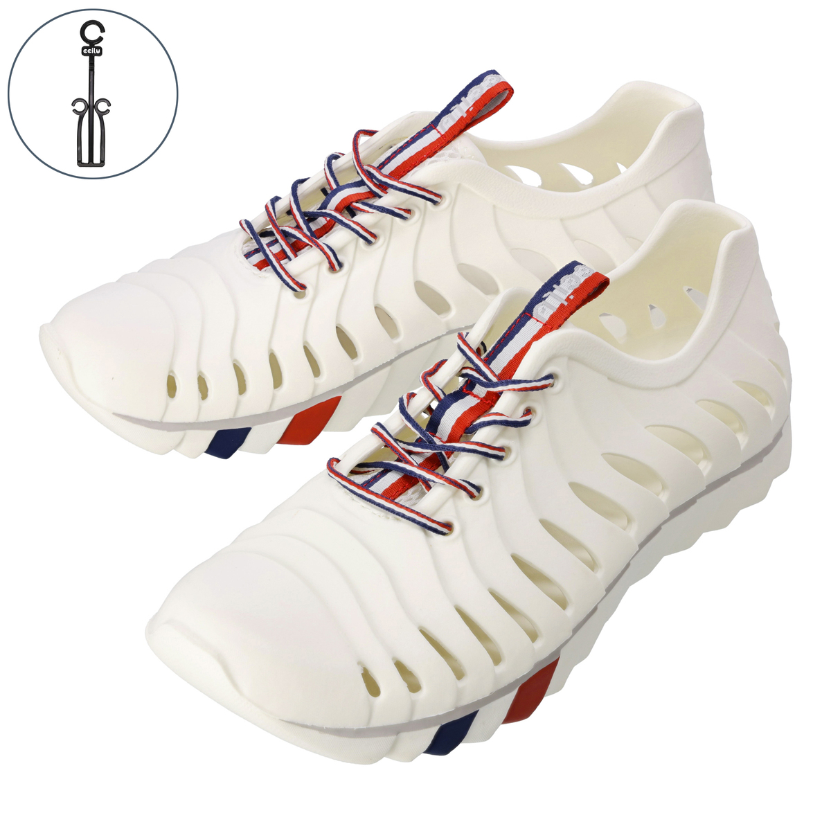 [重量(約)] 160g(24cm 片方) [ソール厚さ(約)] 2.5cm [ヒール高さ(約)] 2cm [ワイズ] 4E相当 [材質] 合成樹脂、ポリエステル [付属品] ハンガー [注意事項] ※エスカレータ・自動ドア・回転ドアの設備に巻き込まれる恐れがあります。十分ご注意ください ※滑りやすい所での使用はお控えください。また靴底の意匠がすり減ると滑りやすくなる場合があります。十分に注意ください ※火のそば・車中・直射日光が当たる場所・高温となる場所に放置すると変形・変色する場合があります。風通しの良い場所に保管してください ※天然素材・起毛素材・布を使用している製品は、汗・雨摩擦により色が落ちる恐れがあります ※プリントやヴェルヴェット加工を施している製品は、摩擦や水洗いを繰り返すと加工が薄くなったり、剥げ落ちる原因となります。また、汗や水など濡れた状態で放置すると、色移り・色落ちする原因となります ※製品に使用している素材の一部は、使用回数に関わらず経年劣化を生じ、破損する場合があります ※かぶれ・かゆみなど、足に異常が生じた場合は、ご使用をやめてください 【中国製】