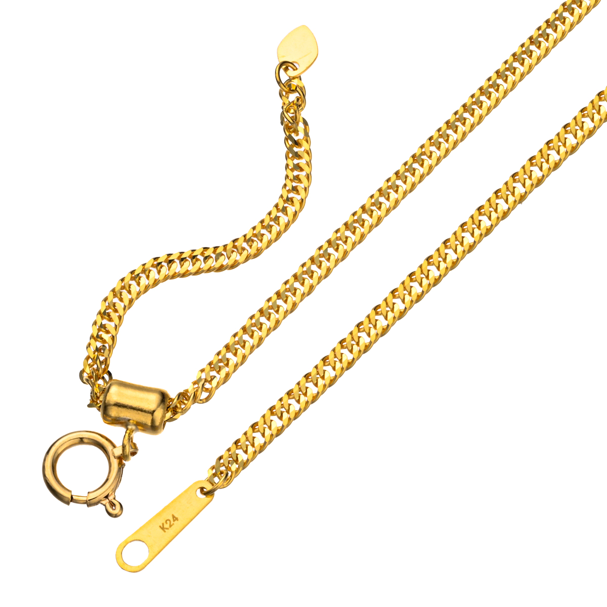 [地金]24Kゴールド 総重量(約) 11.3g 長さ(約) 80.0cm 幅(約) 2.0mm チェーンの形状 キヘイ 留具の形状 引き輪 アジャスターの有無 有(スライド式) 留め具の受け側 最大幅×高さ 2.5×2.6mm ■素材の大きさ・形・色合い、製品のサイズは1点1点多少異なります 【日本製】