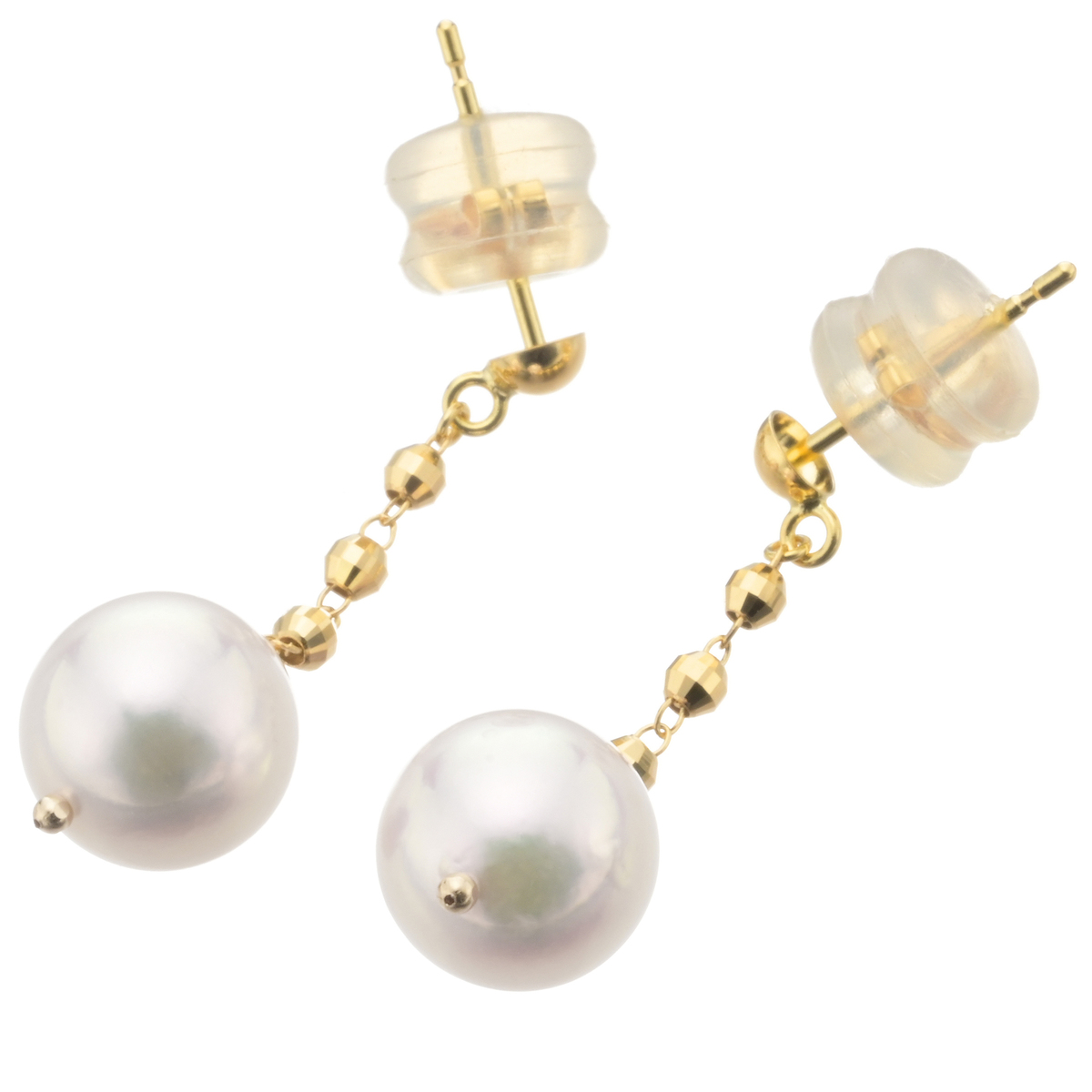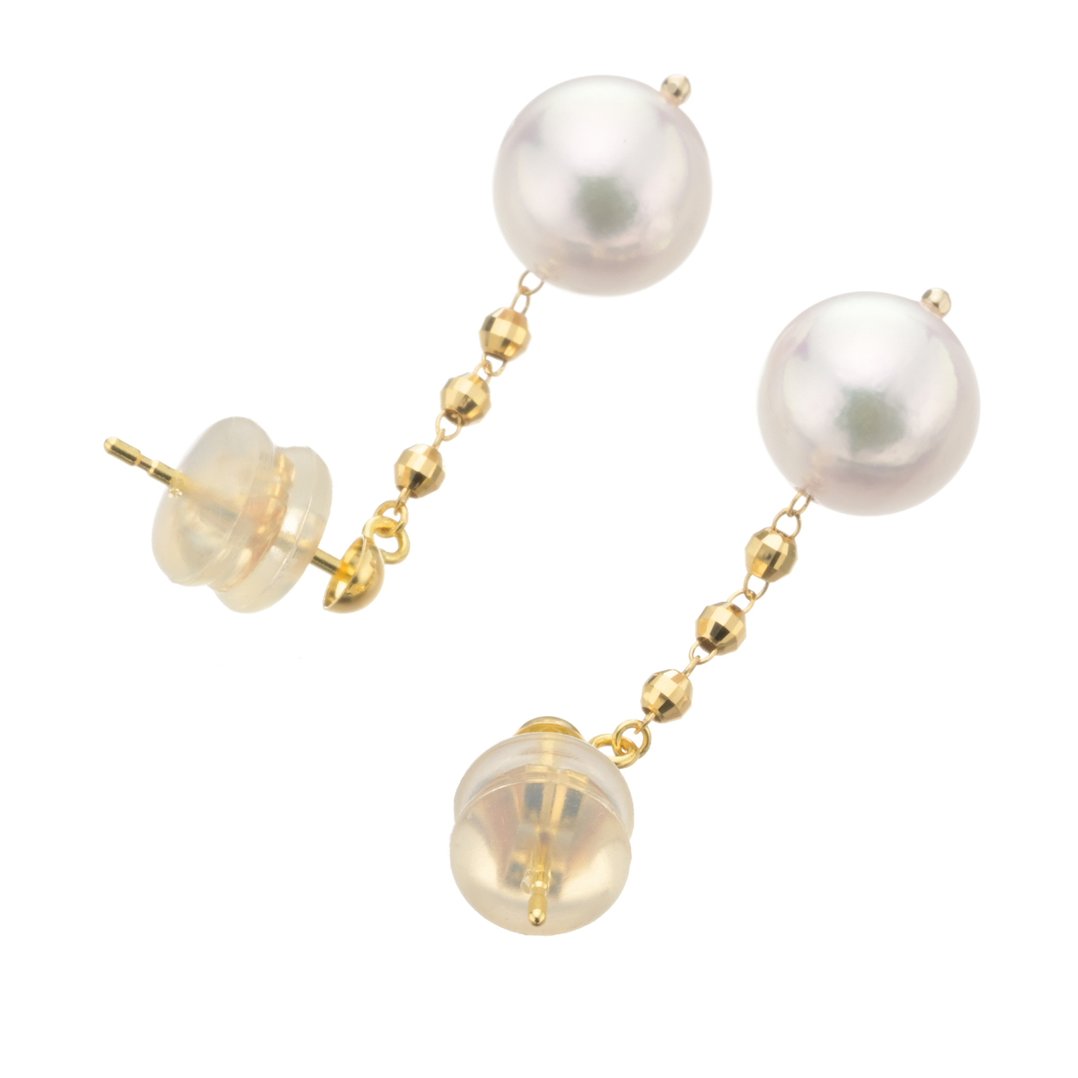テリの美しいアコヤ真珠を使用したピアス。煌めくミラーボールと美しいパールが耳元で華やかに揺れ動きます