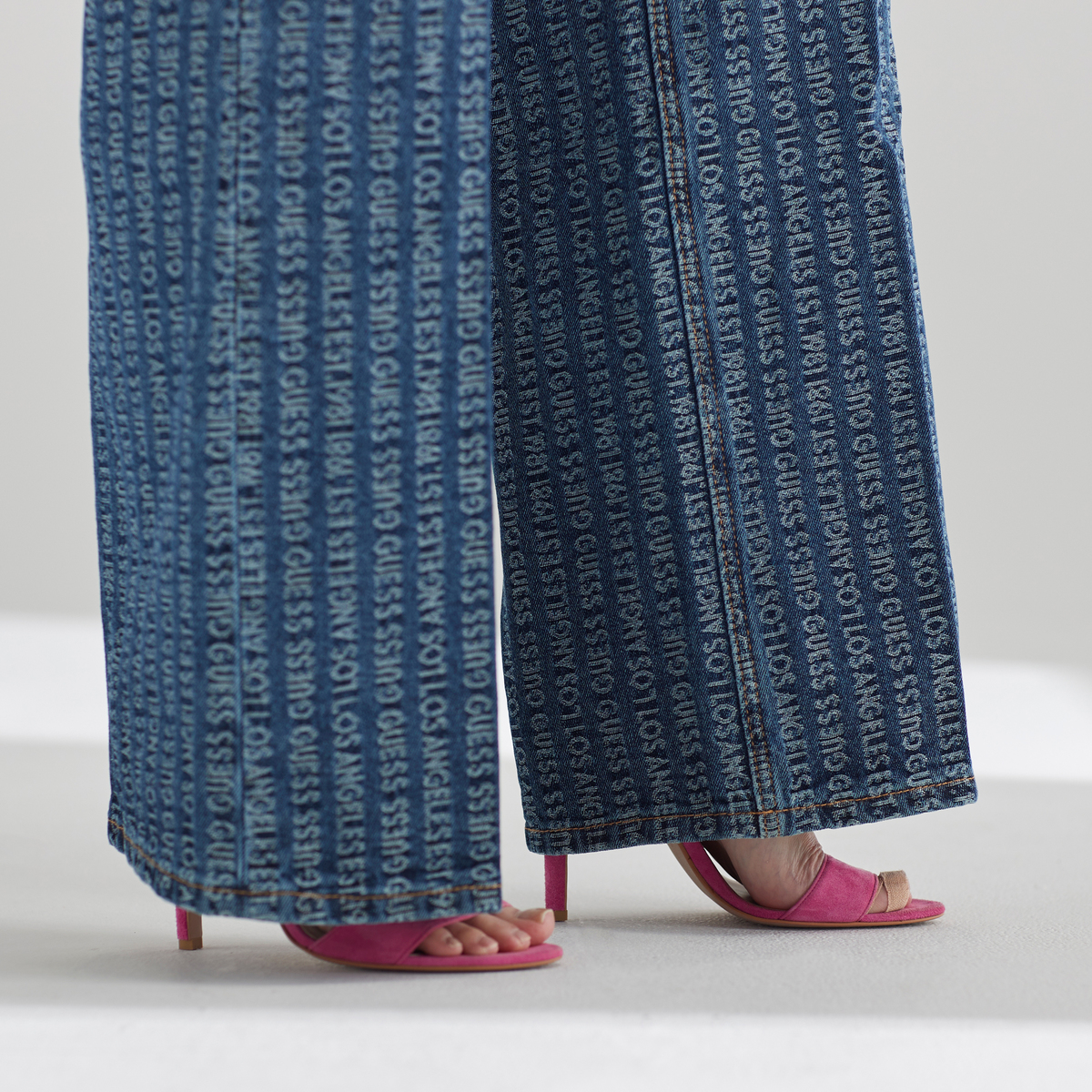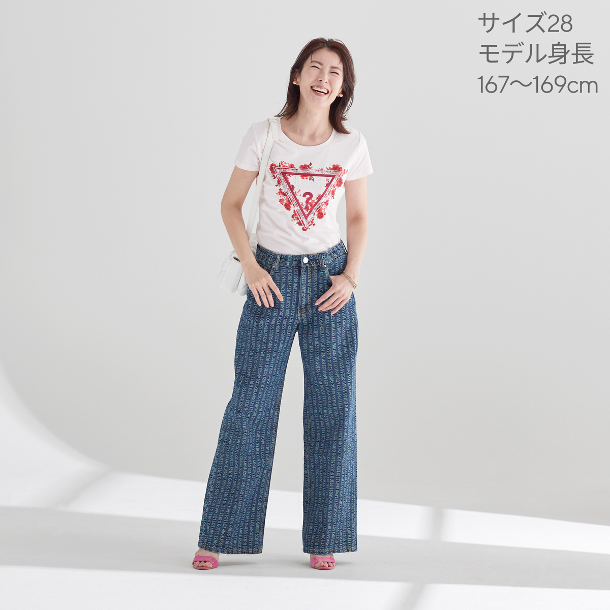 裾に向かってゆったりと広がるワイドレッグシルエットが特徴のデニムパンツ。ナチュラルウエストに美しく沿うハイライズ仕様です。カジュアルながらも上品な印象を演出します