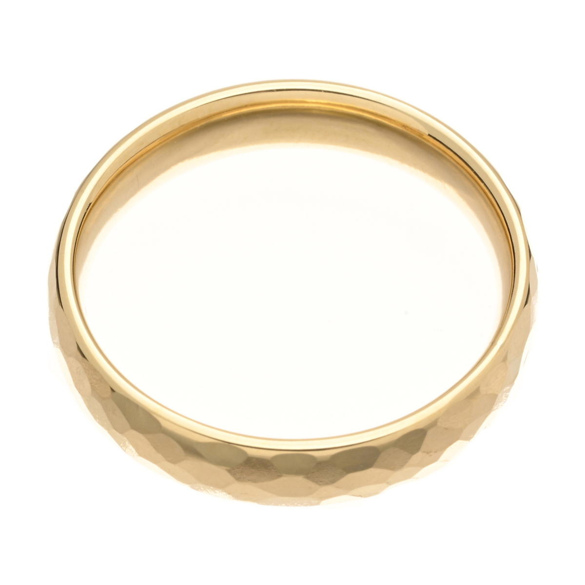 18Kイエローゴールドでお作りしたデザインリング。カットの入った面が様々な角度から光を受け止めて煌めき、お手元を華やかに演出。シンプルなので幅広いシーンでお使い頂けます