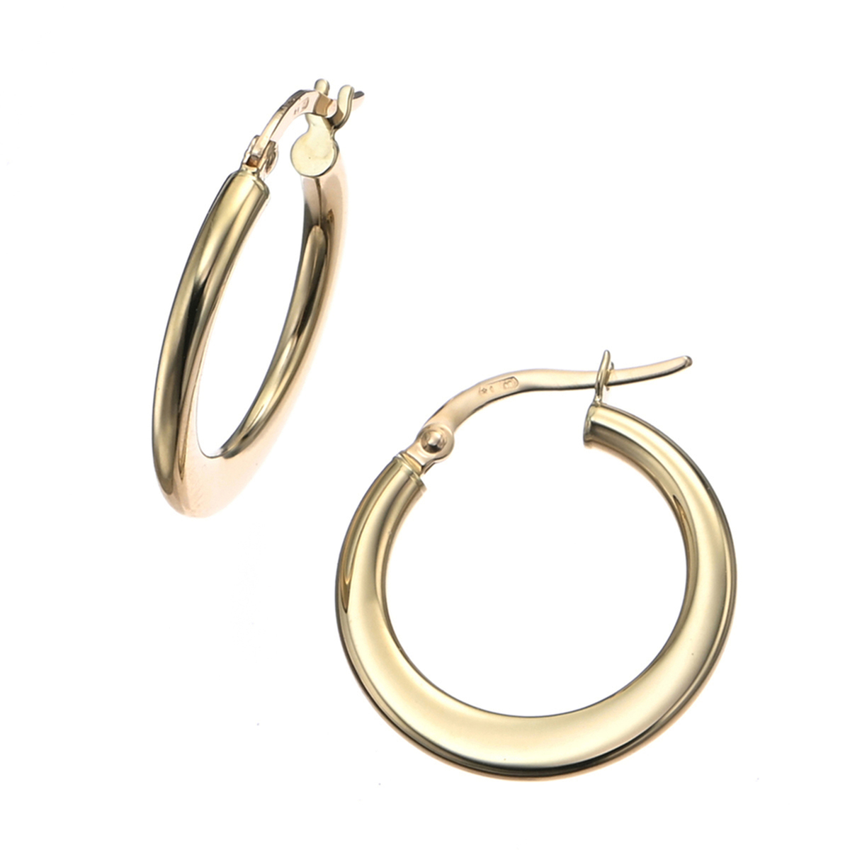 美しく磨かれた18Kイエローゴールドが煌めくイタリア製のフープピアスです。中空のお作りで軽やかな着け心地。耳元を華やかに演出します