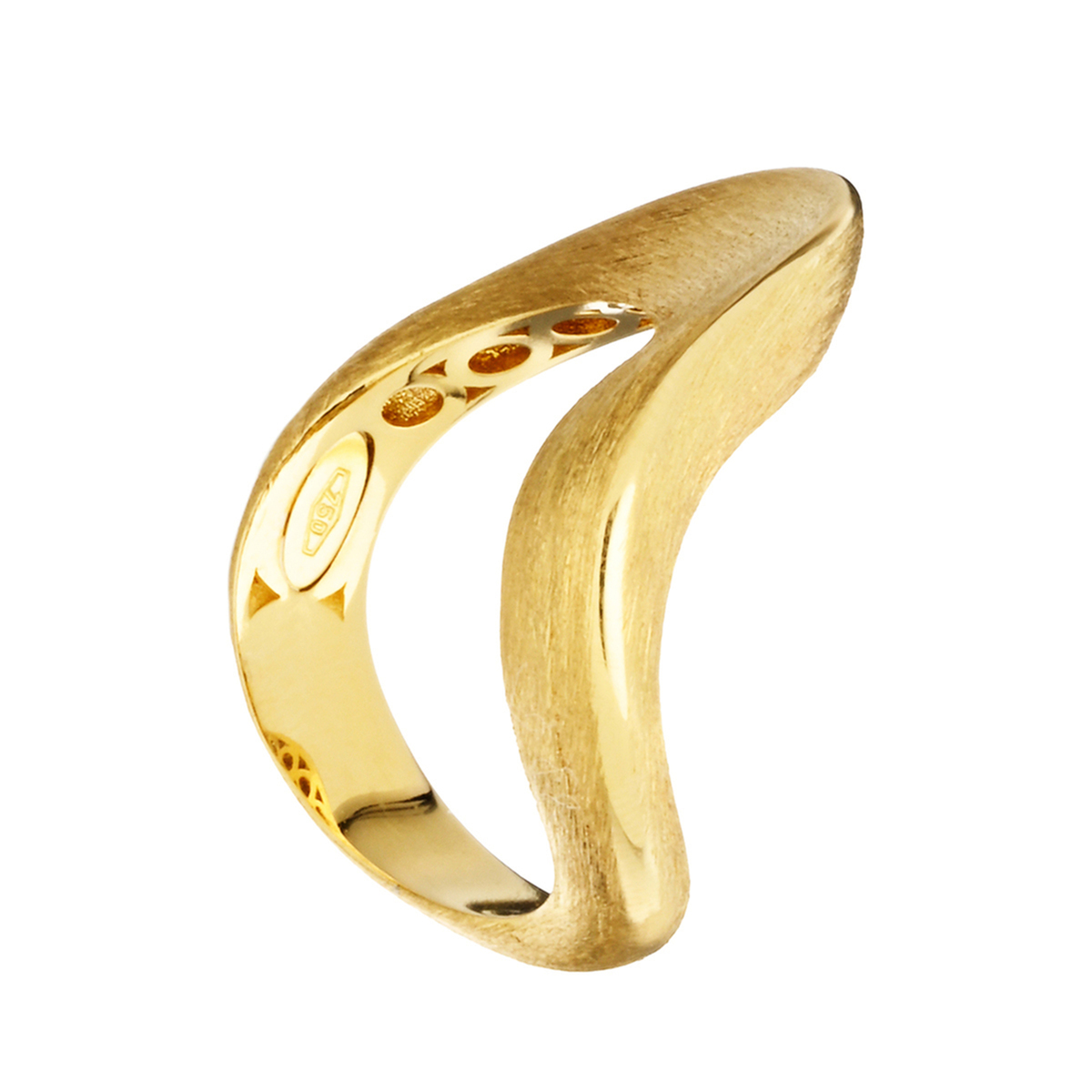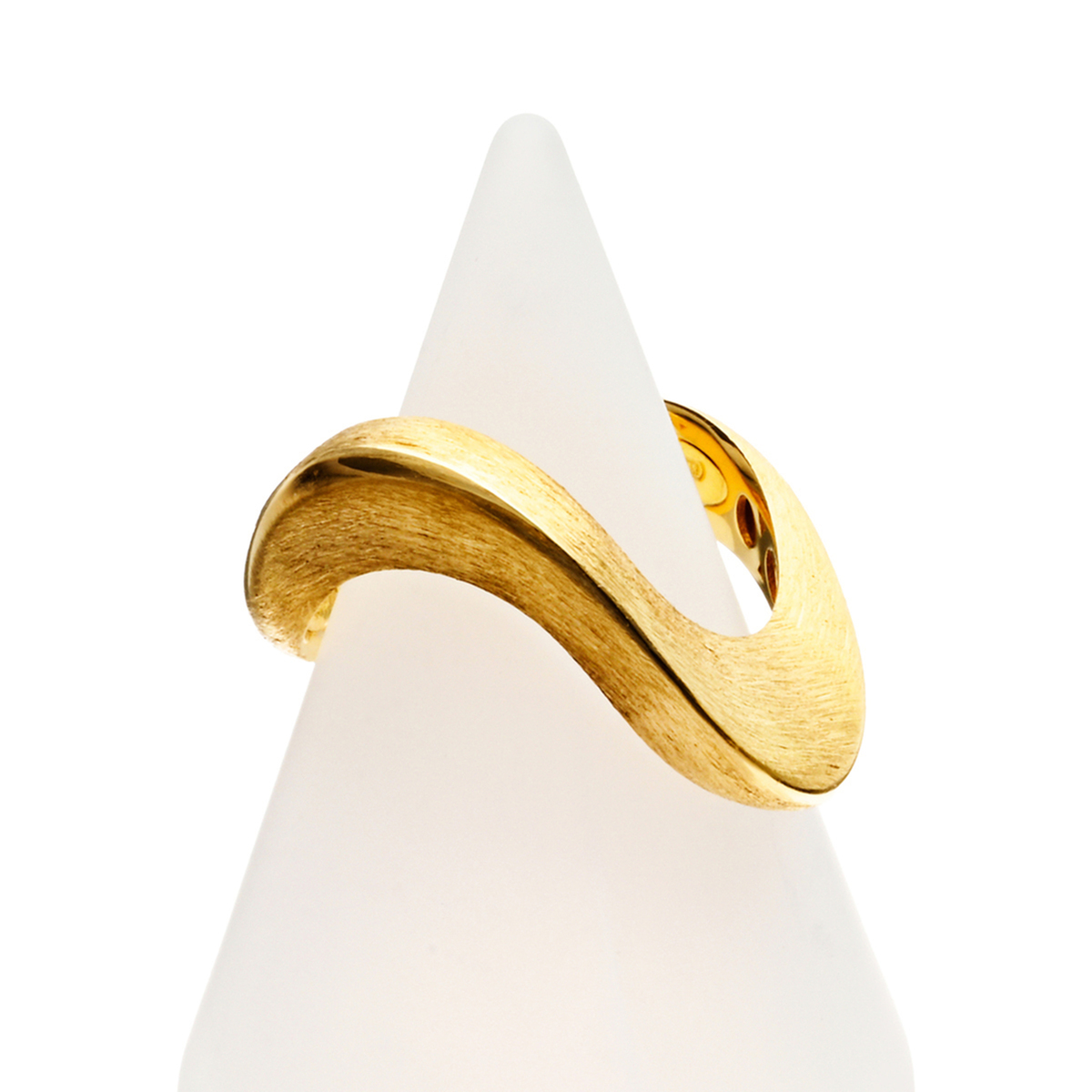 イタリアならではのデザイン性と技術力が結集した、遊び心のあるリングです。波打つラインが美しく、サテンのような仕上げの中にある鏡面のラインが、アクセントになっています