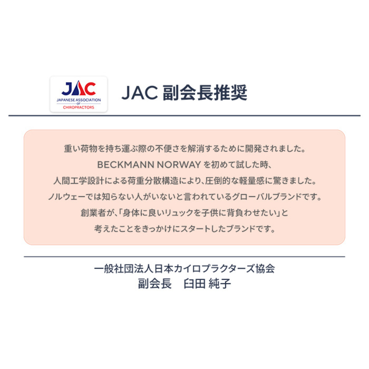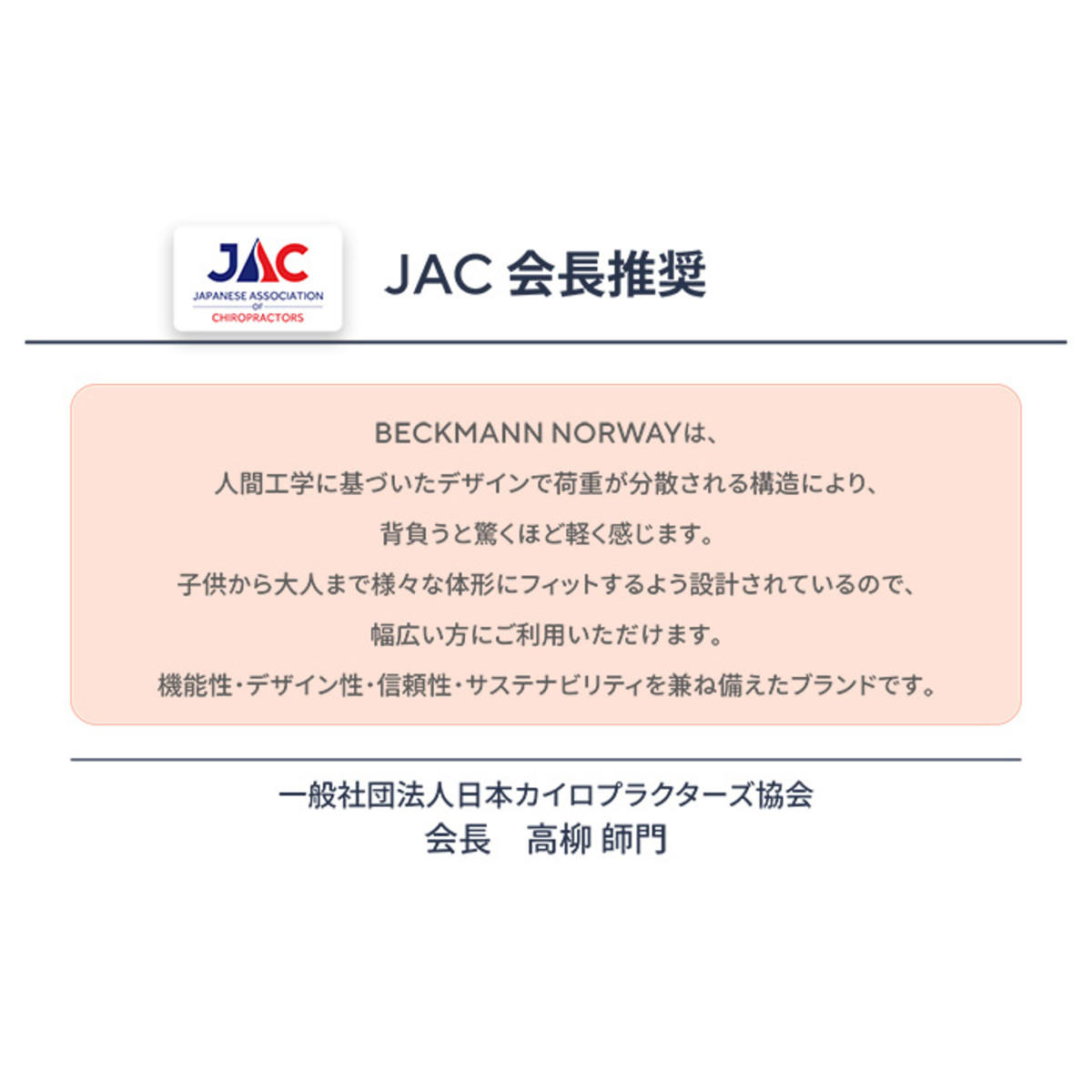 北欧ノルウェーの国民的リュックブランド"BECKMANN NORWAY"のリュック。重さを分散させる独自の工夫により、実際の重量よりも軽く感じる快適な背負い心地を実現しました