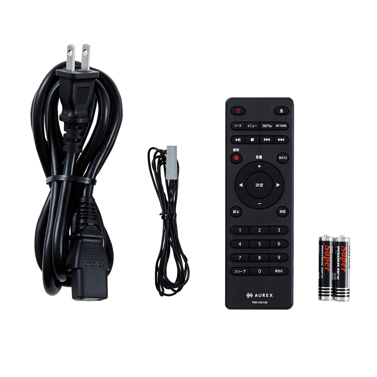 [商品内容] ・本体 ・電源コード ・リモコン ・単4形乾電池(リモコン用/モニター用)×2 ・FM簡易アンテナ [サイズ] 幅40×高さ13.2×奥行23.95cm(突起物含まず) 幅40×高さ14.3×奥行25.5cm(突起物含む) [重量] 約4500g [コード長さ] 約150cm [消費電力] 30W 入力端子 外部入力 φ3.5 mm ステレオミニジャック ヘッドホン出力 φ3.5 mm ステレオミニジャック USB(サービス用)USB1.1、USB2.0、DC5 V 0.5 A [使用方法] ・電源を入れる:本体の電源ボタンまたはリモコンの電源ボタンを押す ・音量を調節する:本体のジョグダイヤルを左右に回すまたはリモコンの+ーボタンを押す ・音を消す(リモコンのみ):リモコンの消音ボタンを押す ・電源を切る:本体の電源ボタンまたはリモコンの電源ボタンを押す [お手入れ] ※お手入れのときは、電源を切って下さい ・柔らかい布でよごれを軽く拭き取って下さい ・よごれがひどいときは、水でうすめた中性洗剤に浸した布をよく絞って拭き取り、乾いた布で仕上げて下さい ■取り扱い説明を充分にご確認の上、ご使用下さい 【中国製】 [注意事項] <もし異常が起こったら> ※異常・故障時には、すぐに使用を中止し、電源コードを抜く ・煙が出たり、異常なにおいや音がする ・電源が入らない ・音声が出ないことがある ・内部に水や異物が入った ・電源コードが異常に熱い ・電源コードが傷んでいる ・USBケーブルが傷んでいる ・本体に変形や破損した部分がある <電源コード・電源プラグについて> ※電源プラグは交流100Vコンセントに根元まで確実に差し込む ※本機の電源を切っても、内部の電源は完全にきれていないので、万一の事故や故障に備えるために、電源プラグはよく見えて容易に手が届く位置にあるコンセントに接続する ※電源プラグの刃と刃の取り付け面にゴミやホコリがついている場合は、電源プラグを抜き、ゴミやホコリをとる ※電源コードを取り扱うときは、次のことを守る ・傷をつけない ・延長するなど加工しない ・加熱しない ・引っ張らない ・重いものを載せない ・はさまない ・無理に曲げない ・ねじらない ・束ねない ※電源プラグをコンセントから引き抜くときは、電源プラグを持って引き抜く ※ぬれた手で電源プラグを抜き差ししない ※長時間使わないときやお手入れのときは、電源プラグをコンセントから抜く ※電源コードは付属のもの以外を使用しない ※付属の電源コードを他の機器に使用しない <使用について> ※持ち運ぶときは、FMアンテナをたたみ、電源プラグをコンセントから抜く ※落としたり、強い衝撃を与えて本体を破損したときは、すぐに電源を切り、電源プラグをコンセントから抜く ※分解・修理・改造はしない ※異物を入れない ※雷が鳴り出したら、アンテナ・電源コードに触れない ※通風孔をふさがない ※壁に押しつけない(背面10cm、左右側面5cm以上の間隔をあける) ※押し入れや本箱など風通しの悪い所に押し込まない ※テーブルクロス・カーテンなどを掛けしない ※じゅうたんや布団の上に置かない ※あお向け・横倒し・逆さまにしない ※花瓶など液体の入ったものを本機の上に置かない ※CD挿入部に手を入れない ※円形ディスク以外は使用しない ※CDピックアップをのぞき込まない ※本機の上にのったり、重いものを置いたりしない ※ヘッドホンの音量を上げすぎない ※長時間、音が歪んだ状態で使わない <設置について> ※次のような場所には置かない、使用しない ・雨天時の屋外や浴室など、水がかかったり、湿気の多い場所 ・雨、きりなどが直接入り込む場所 ・火のそば、暖房機器のそばなどの高温な場所 ・直射日光の当たる場所、炎天下の車内 ・ホコリ、油煙の多い場所 ・振動の強い場所 ・腐食性ガスの発生する場所 ・極端に高温、低温、温度変化の激しい場所 ・ぐらつく台の上や傾いた所など、不安定な場所