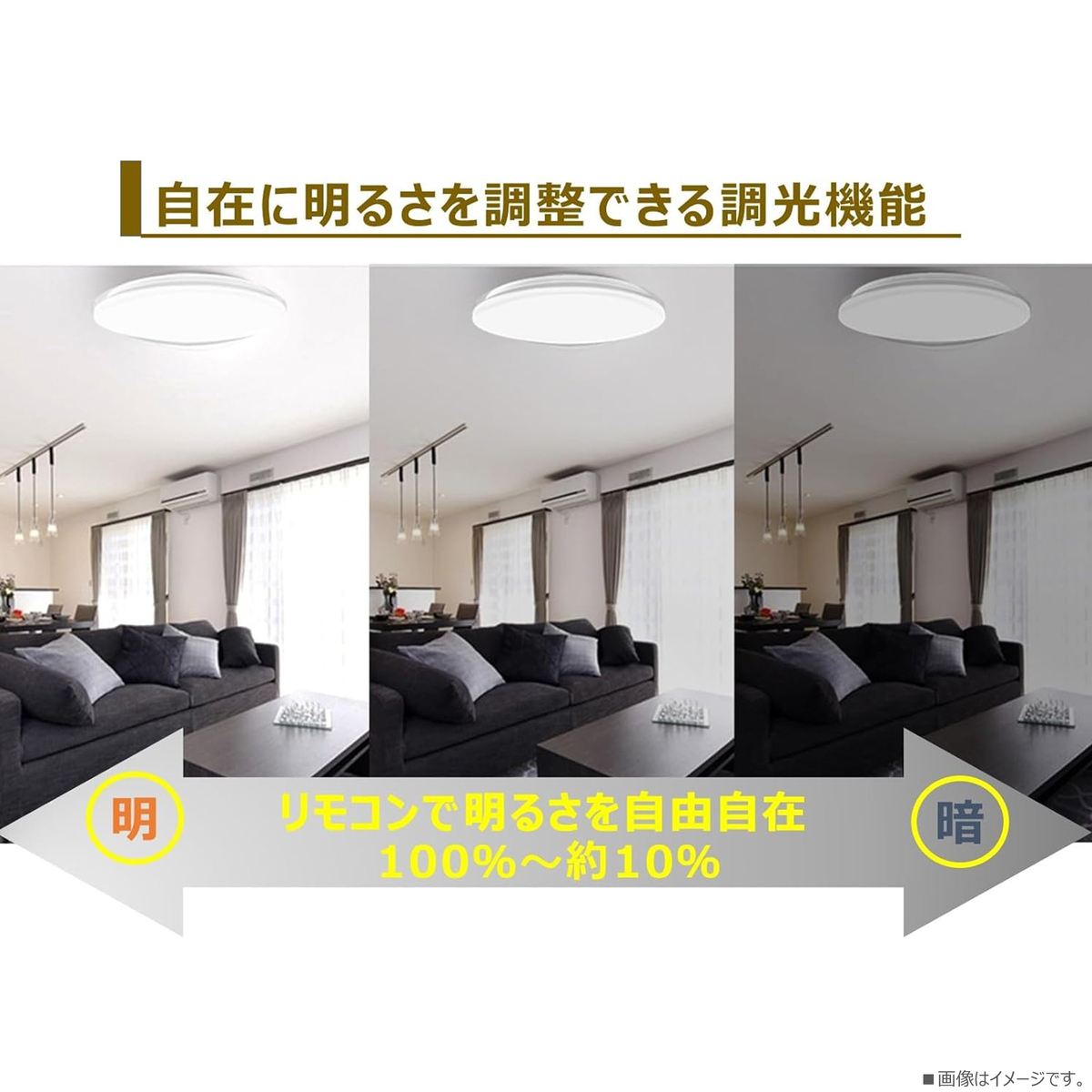 リモコンで明るさを自在に調節(100%〜約10%)できる調光機能を備えたLEDシーリングライト。シーンに合わせてお好みの設定ができます