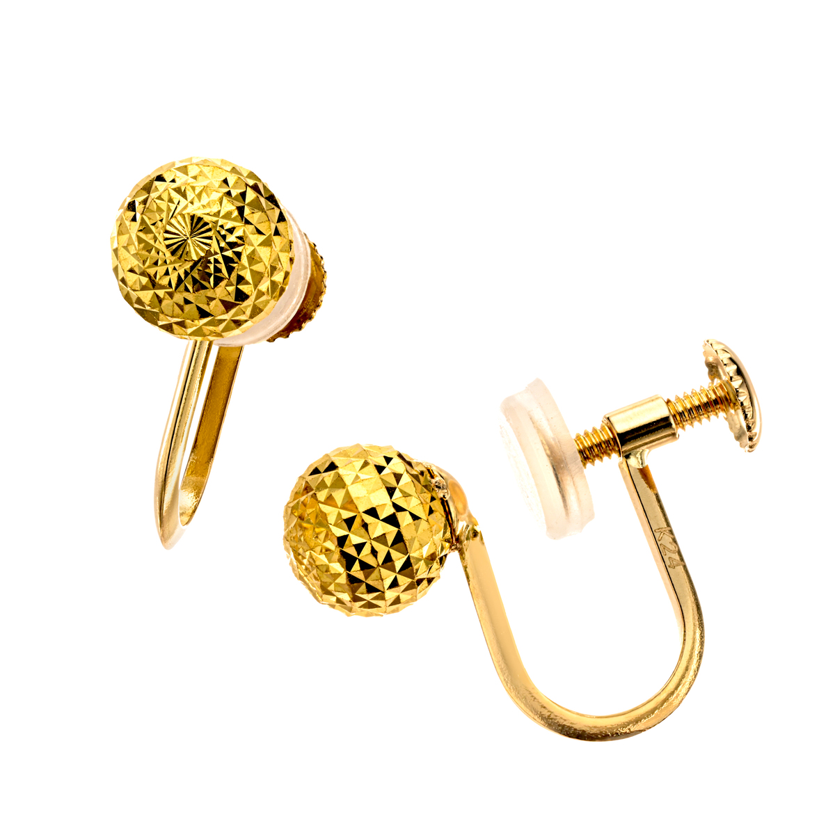 純金のカットボールをあしらったイヤリングまたはピアス。美しい純金の煌きが、耳元で存在感を放ちます