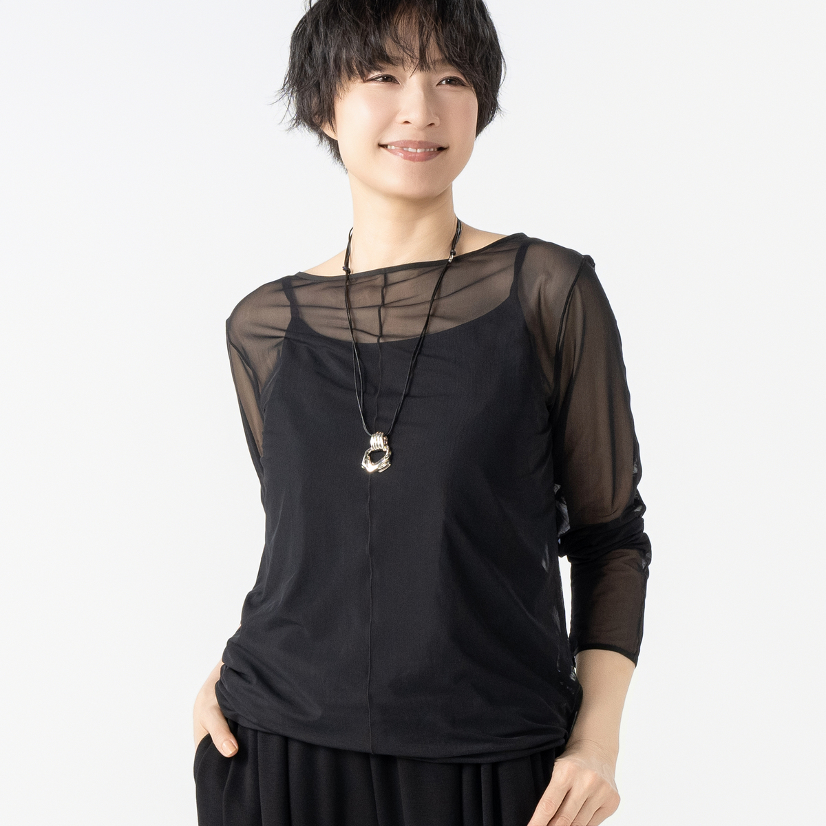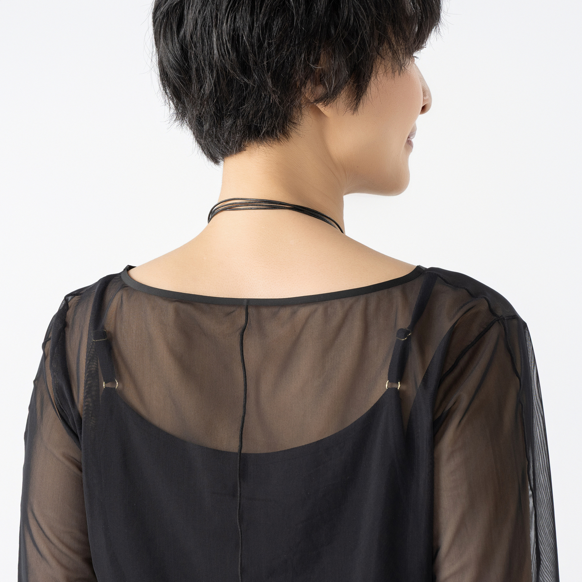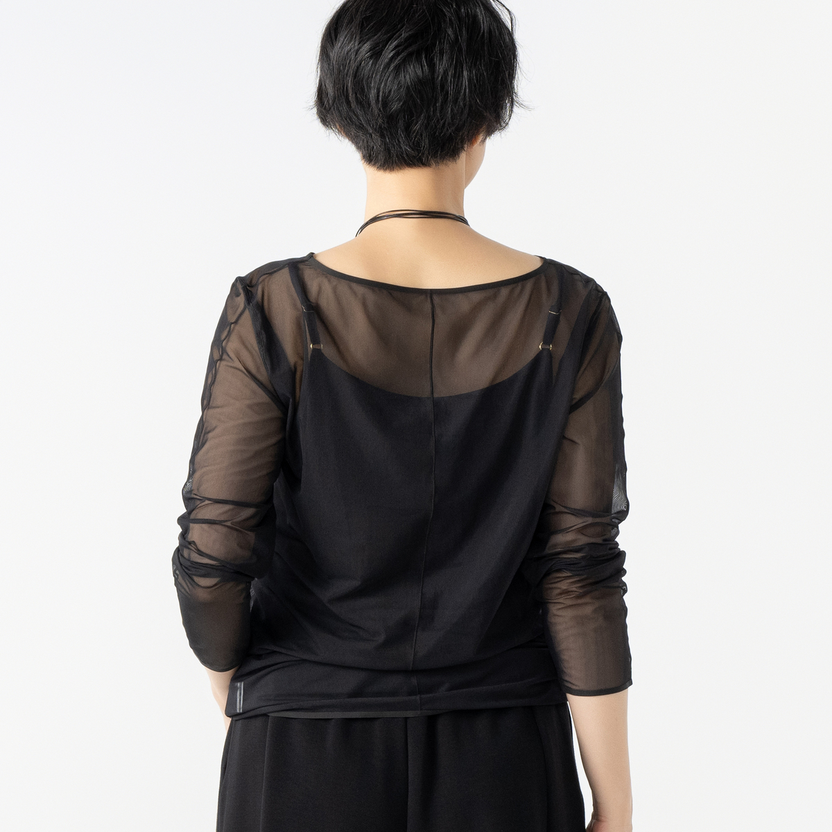 ANNE COQUINE定番のインナー付きチュールトップス。様々なコーデに活躍するシンプルなデザインです